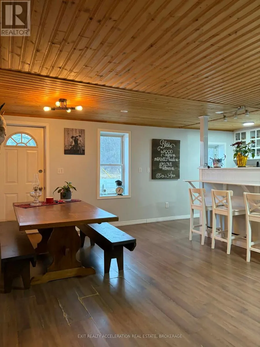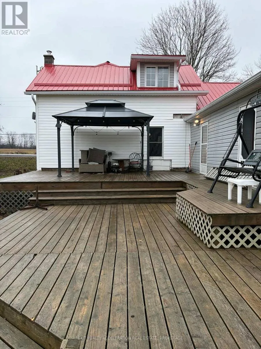 Cross Streets: Centreville Road. ** Directions: North on Highway 41 from Napanee. Welcome to this charming 1.5 storey farmhouse set on just over 2 acres of picturesque countryside. Offering a perfect blend of rural character and everyday comfort, this inviting property is ideal for those seeking space, privacy, and a connection to nature. The home features a thoughtfully designed layout with a main floor primary bedroom complete with a walk-in closet and direct access to the outdoor deck and gazebo-perfect for enjoying your morning coffee or unwinding in the evening. A bright and spacious eat-in kitchen serves as the heart of the home, filled with natural light and plenty of room for gathering. The cozy wood stove adds warmth and character, creating a welcoming atmosphere throughout the cooler months. Upstairs, you'll find three additional bedrooms, providing ample space for family, guests, or a home office. With two full bathrooms, the home offers both comfort and convenience for everyday living.Outside, the property truly shines. The detached garage, small barn, pond, and paddock areas offer flexibility for a variety of rural lifestyle uses. Whether you're dreaming of a peaceful country retreat, space for hobbies, or simply room to roam, this property delivers. There's plenty of opportunity to enjoy gardening, raise chickens, or create your own outdoor oasis. A rare opportunity to enjoy country living with versatile outdoor space-this charming farmhouse is ready to welcome its next chapter. (id:27476)