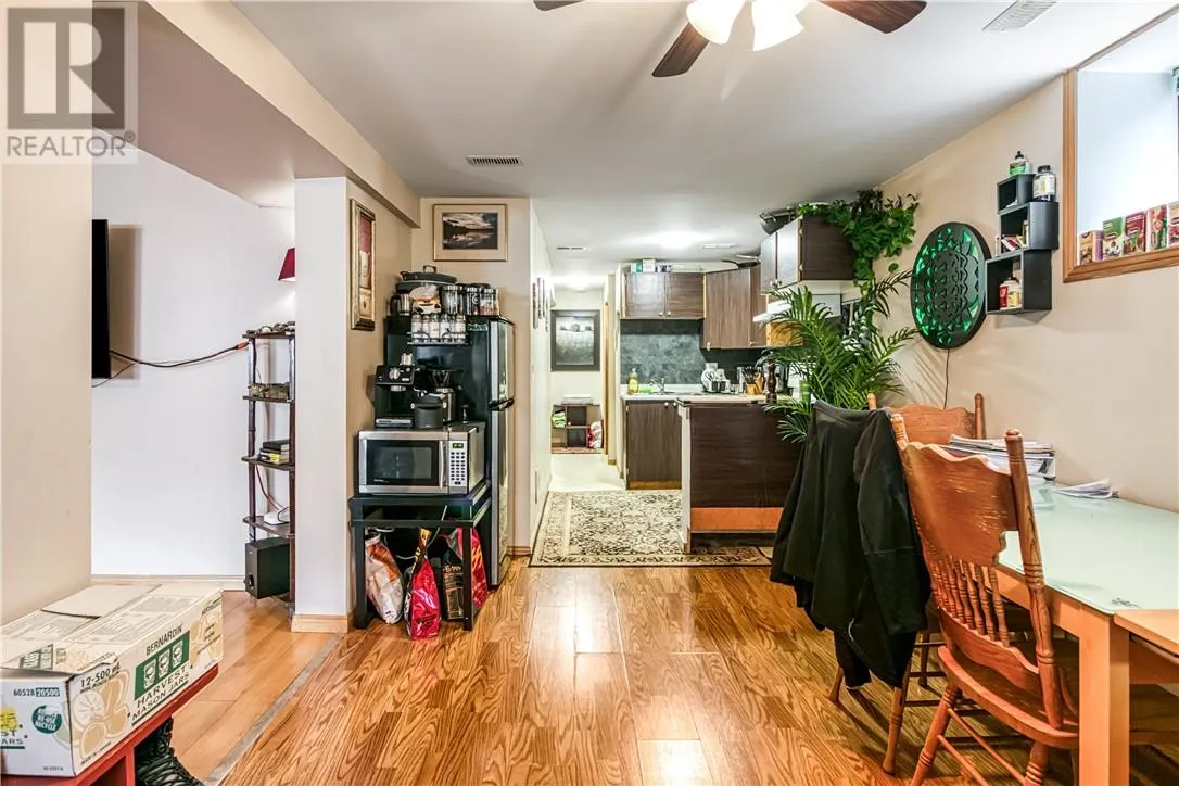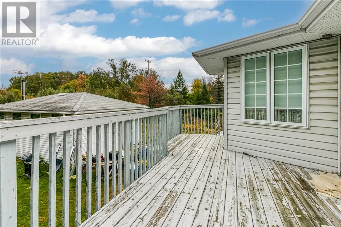 Val Caron bungalow with a walk out basement. This 1273 sq ft, 3+2 bedroom, 2.5 bath has 2 separate self contained units with full laundry hook ups. The main level boasts a spacious entrance, hardwood floors, loads of oak cabinets with eastern exposure with a deck for a your morning coffee. 3 spacious bedrooms, a full bath and 2 pc ensuite bath, lower level den or storage with access to the furnace area. The lower level could be re-accessed as a single family dwelling, even just the recreation room reclaimed for the main unit and lower level may be utilized as a home business with separate entrance (see floor plans). 20' x 30' detached heated garage with wood burning WETT certified stove. All situated on a 100' x 210' lot with a vegetable garden & plenty of parking for all the toys. (id:27476)