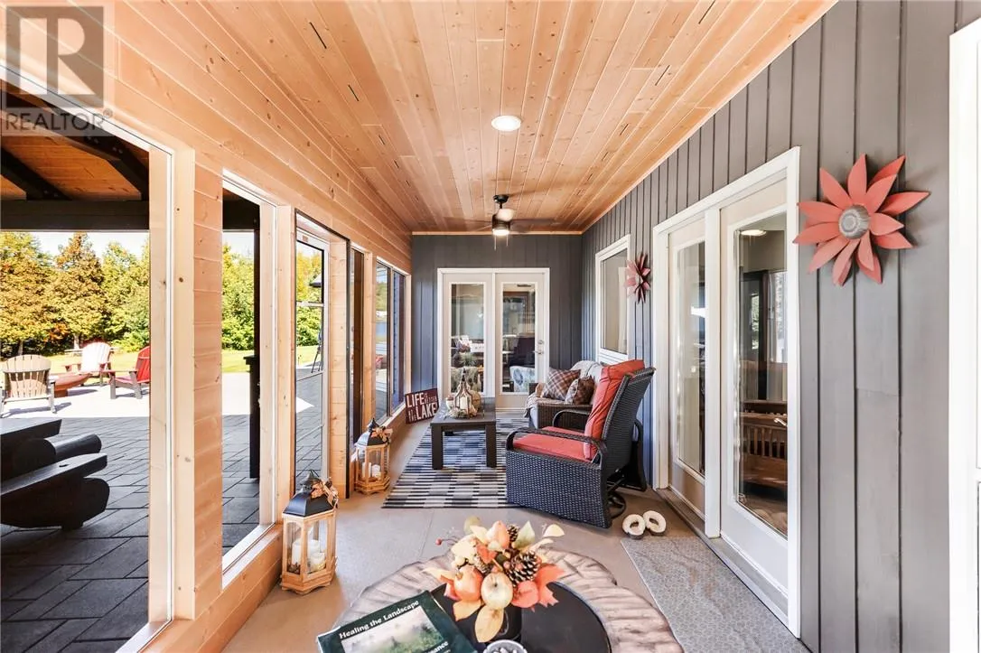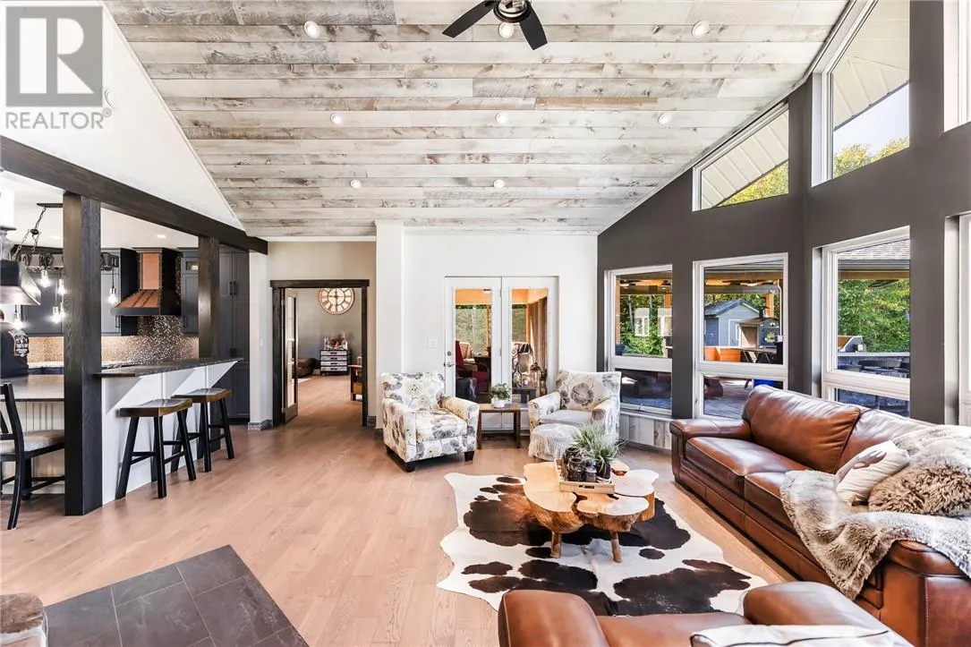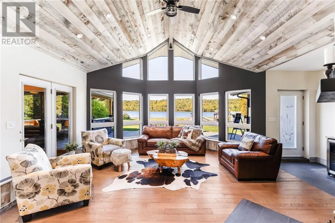 This is the unicorn youâve been waiting forâ6.8 acres with nearly 300 feet of water frontage on what every Long Laker knows as Sudburyâs best lake. A once-in-a-lifetime opportunity, this property offers the privacy and tranquility youâve been dreaming of. Most of the acreage remains natural and untouched, while the waterfront area has been thoughtfully developed with a sprawling landscaped lawn. Thereâs more than enough space for all activities. The 2500 sq ft slab on grade bungalow has comfortable in-floor heating throughout, with 3 spacious bedrooms, and 2 full bathrooms. The en-suite off the primary bedroom is an absolute spa get away. The great room has the most stunning views of the lake with 14 foot cathedral ceilings highlighted by the stone wood fireplace. There is a wet bar off the living room for convenient entertaining. The kitchen is stunning with a granite island built for large gatherings. The family room has vaulted ceilings and offers a second recreational space or TV room. It leads to your 3 season porch. The lakeside has some great features including a custom fire pit sitting area and the covered outdoor kitchen with cabinets, prep area, sink and granite countertops. At the lake you have another deck with a gazebo and no waterfront home is complete without the wood burning sauna and outdoor shower. The waterfront offers the most beautiful shallow sand that you can walk out for hundreds of feet. The original garage has been converted to a Bunkie for the kids and guests. With two bedrooms and a space for a bathroom. The brand-new 60x40 completely finished garage provides endless possibilities. With a state-of-the-art boiler system creating the perfect in-floor heat. Whether it's for your vehicles or toys, this addition makes the property as practical as it is beautiful. The whole property back-up generator offer country living peace of mind. This unique combination of space, privacy, and pristine lakefront living is unmatched. (id:27476)