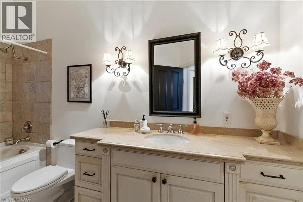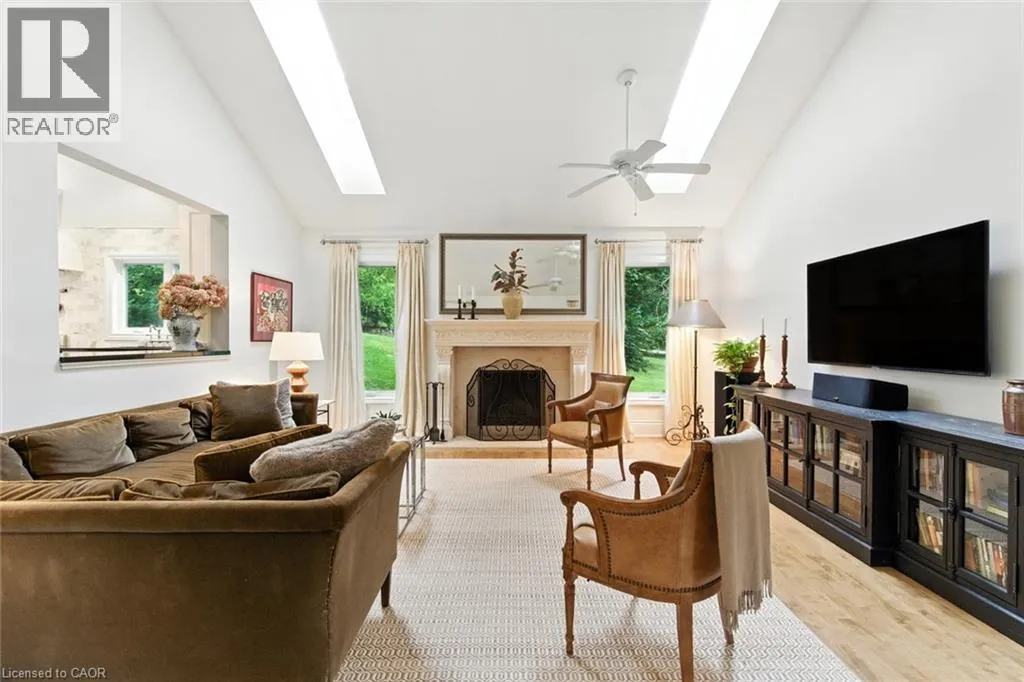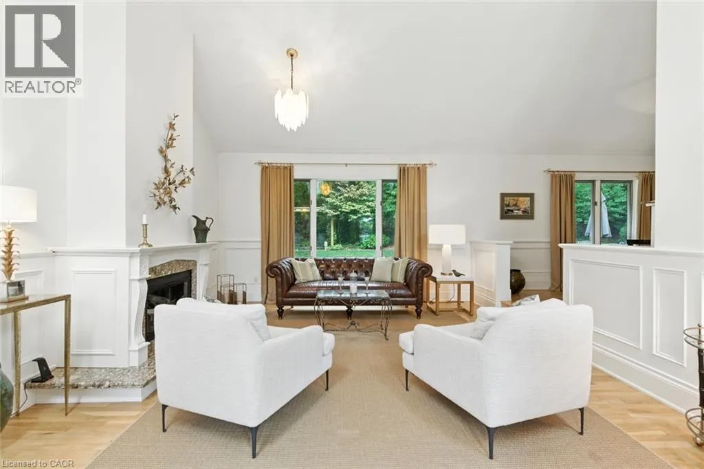 HWY 8 TO HILLCREST AVE TO MAPLE AVE Welcome to 65 Maple Avenueâwhere timeless elegance meets modern comfort! Tucked away on a quiet cul-de-sac in the peaceful community of Greensville, this bungalow offers over 4,500 square feet of refined living space on an oversized lot with sweeping Escarpment views. Feel that sense of calm the minute you step inside the main level with large windows and vaulted ceilings providing a breath of fresh air. The seamless flow from the sunken living room to the chefâs kitchen to the bedroom wing of the home is the layout youâve always wanted. Thoughtful design choices coupled with functionality will please even the pickiest buyers. Luxury stainless steel appliances combined with beautifully appointed white cabinets and black granite countertops provide an inspiring environment to host family dinners and special get togethers. Unwind in the family room next to the wood burning fireplace and enjoy the perfect setting to catch up with family and friends. Youâll love the sunken living room with parallel windows completely drenching the room in sunlight. The large primary suite features a four-piece ensuite, walk-in closet, double closet and vaulted ceilings with French doors leading to the back patio. An additional two bedrooms and a full bath complete the main level. The large basement is perfect for entertaining or a teenage retreat featuring a large rec room, office space, three-piece bathroom and a large workshop with direct access to the garage. The backyard provides a private and peaceful area surrounded by mature trees and professional landscaping. Homes like these donât come around too often. Donât be TOO LATE*! *REG TM. RSA. (id:27476)