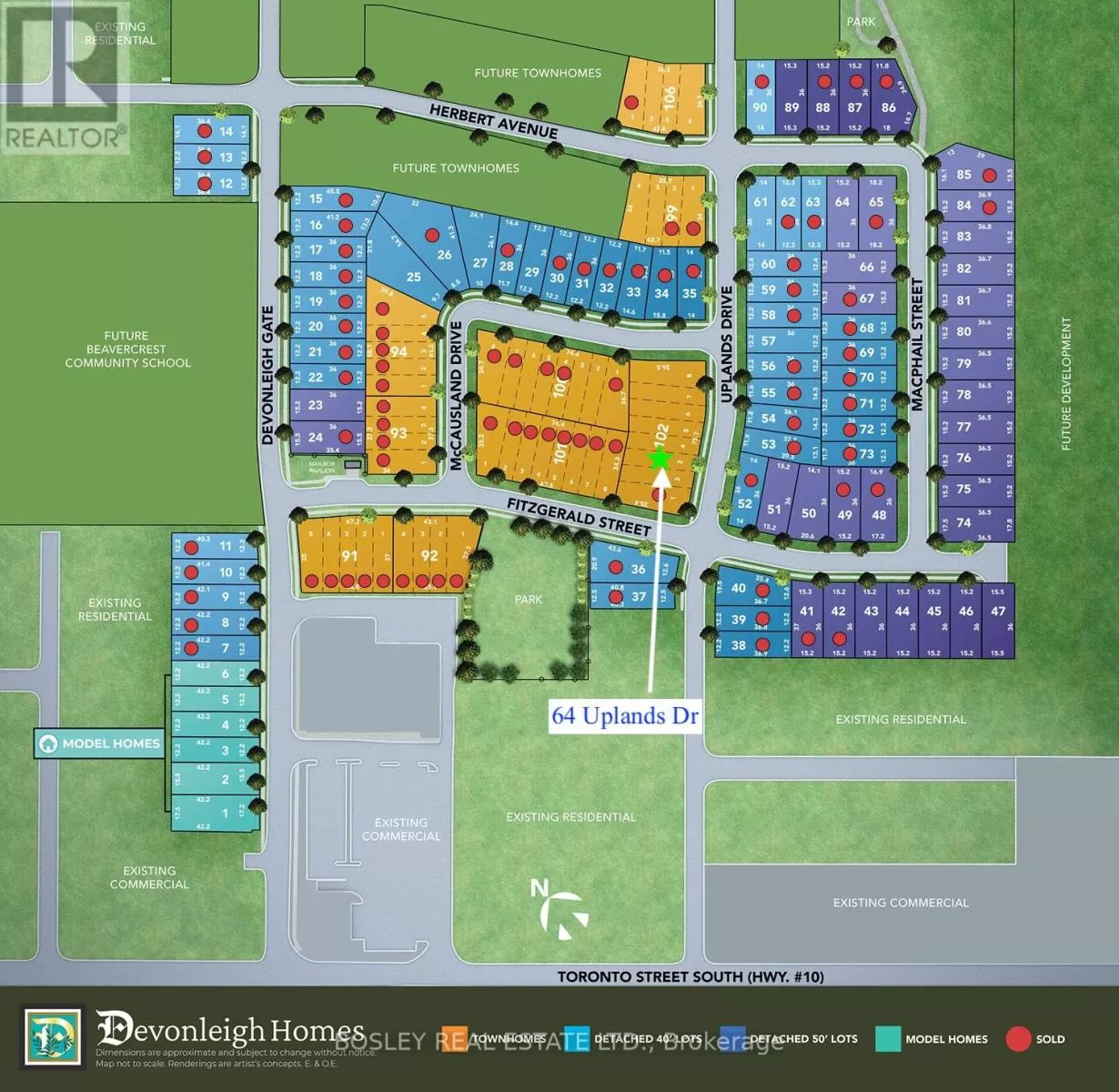 Cross Streets: Hwy 10 & Devonleigh Gate. ** Directions: Highway 10 to Devonleigh Gate South on Fitzgerald st. For a limited time - This unique and brand new freehold townhome build still allows you to select your own finishes/upgrades and take possession within 4 months. Built by the trusted team at Devonleigh Homes, the thoughtfully designed 3 bed, 2.5 bath layout is ideal for first-time buyers and young families looking to lay down roots in an affordable, high-end neighbourhood just 90 mins north of the GTA. The main floor features a bright, open-concept kitchen/living/dining space, 2pc powder room, and inside entry to an oversized 1.5-car garage, a rare find in a townhome! Upstairs, enjoy a spacious primary suite with 3pc ensuite and walk-in closet, plus two additional bedrooms with double closets, a 4pc main bath, and a double linen closet for bonus storage. The 25x115ft deep lot offers a great-sized backyard with direct access from your garage! The large unfinished basement provides flexible space for a future rec room or ample storage. Act now and choose your finishes! For a limited time, you can still select your upgrades and interior selections to personalize the space to your taste. This growing community is surrounded by convenience: a brand-new public school next door, grocery store, and new hospital just minutes away. Explore scenic walking trails around the nearby stormwater pond and future forested paths. This property is just 90 minutes to Brampton or Kitchener/Waterloo, 60 to Orangeville, 40 to Collingwood and surrounded by the outdoor beauty of the Beaver Valley region. Note** Property Under construction. Photos, 3D Tour, and floorplans are for illustration purposes only. Same model to be built, layout is consistent, but finishes, upgrades, colours, and some room measurements may vary slightly. Estimated taxes approx. $3,000/yr. (id:27476)