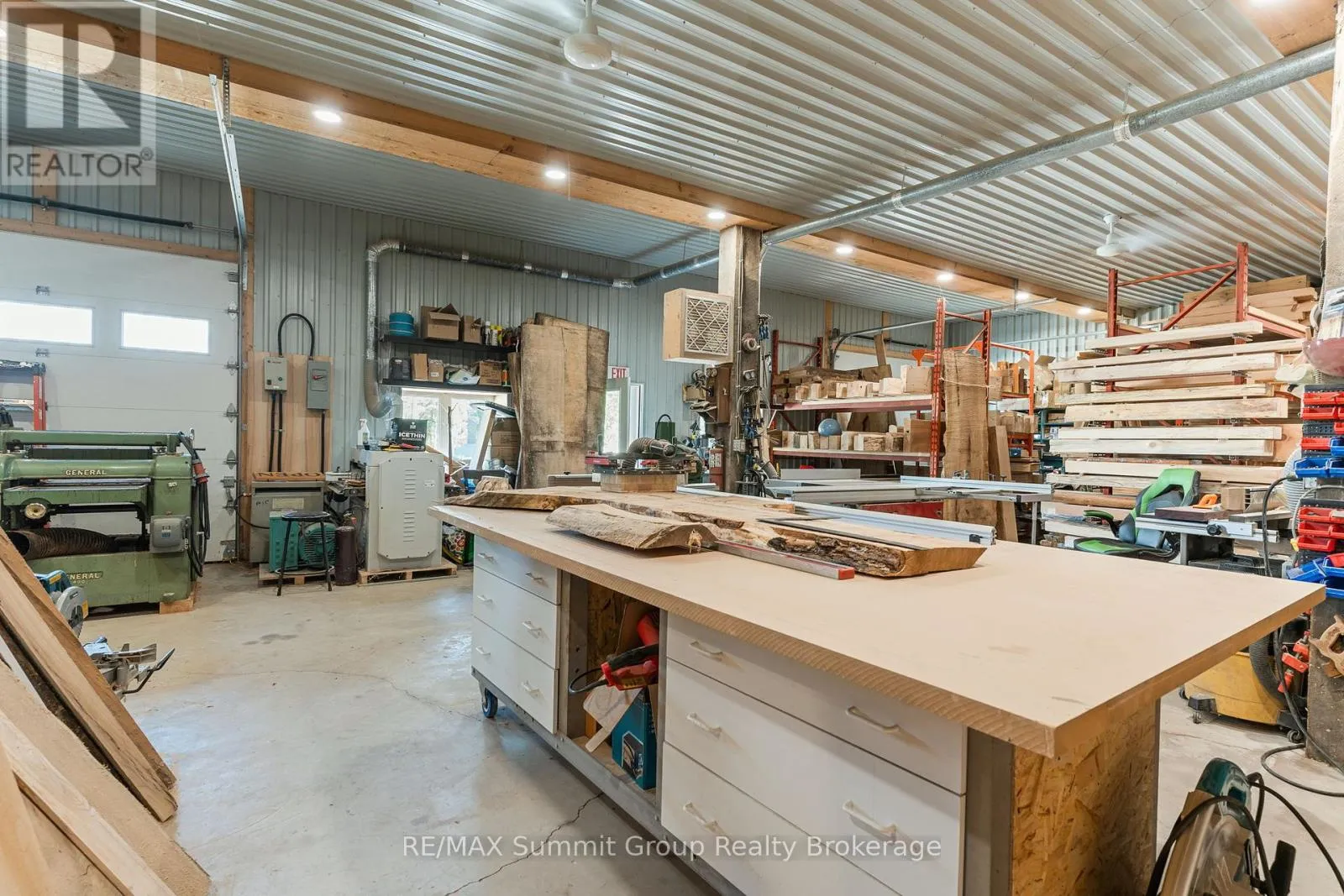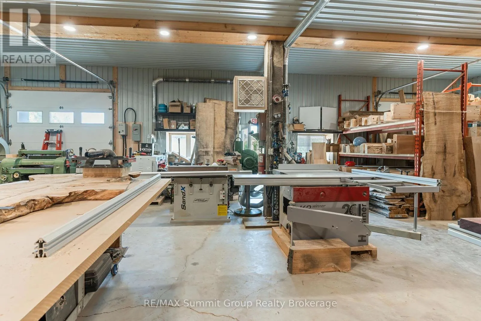 Cross Streets: Wellington St & Mill Bridge Rd. ** Directions: From Grey Rd 2 in Feversham, go east on Wellington Street to property on right/south side. Sitting on two separate lots and being sold together as one parcel, this C2-zoned property in the heart of Feversham is set up for a variety of uses. Whether you're looking for a workshop to run your business, storage space, or a new venture like a microbrewery, this property is ready to work for you. The main building 51' x 37' has a ceiling height of 11', propane heat, two manual roll-up doors 9'6" high x 9' wide, and a 2-piece washroom. Many updates over the past 10 years include steel siding, insulation, a concrete floor, and a metal roof. Interior renovations were done approximately 7 years ago. A Quonset-style coverall building 30' x 18' offers additional storage with a cement floor, a loading dock, and 40 amp service from the main building. An additional uninsulated storage building 37' x 15' adds even more space for equipment, tools, or inventory. All three buildings are in very good condition, and the location in this small, unique hamlet offers great visibility and accessibility. C2 zoning allows for a wide range of uses, including professional offices, retail, medical clinics, bulk fuel sales, service shop and more. (id:27476)
