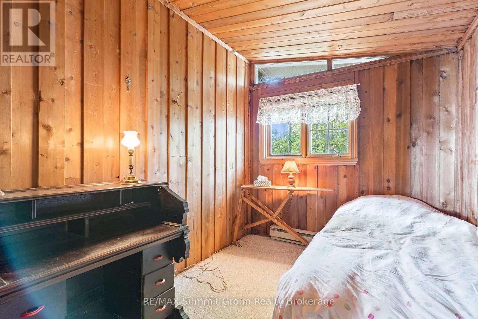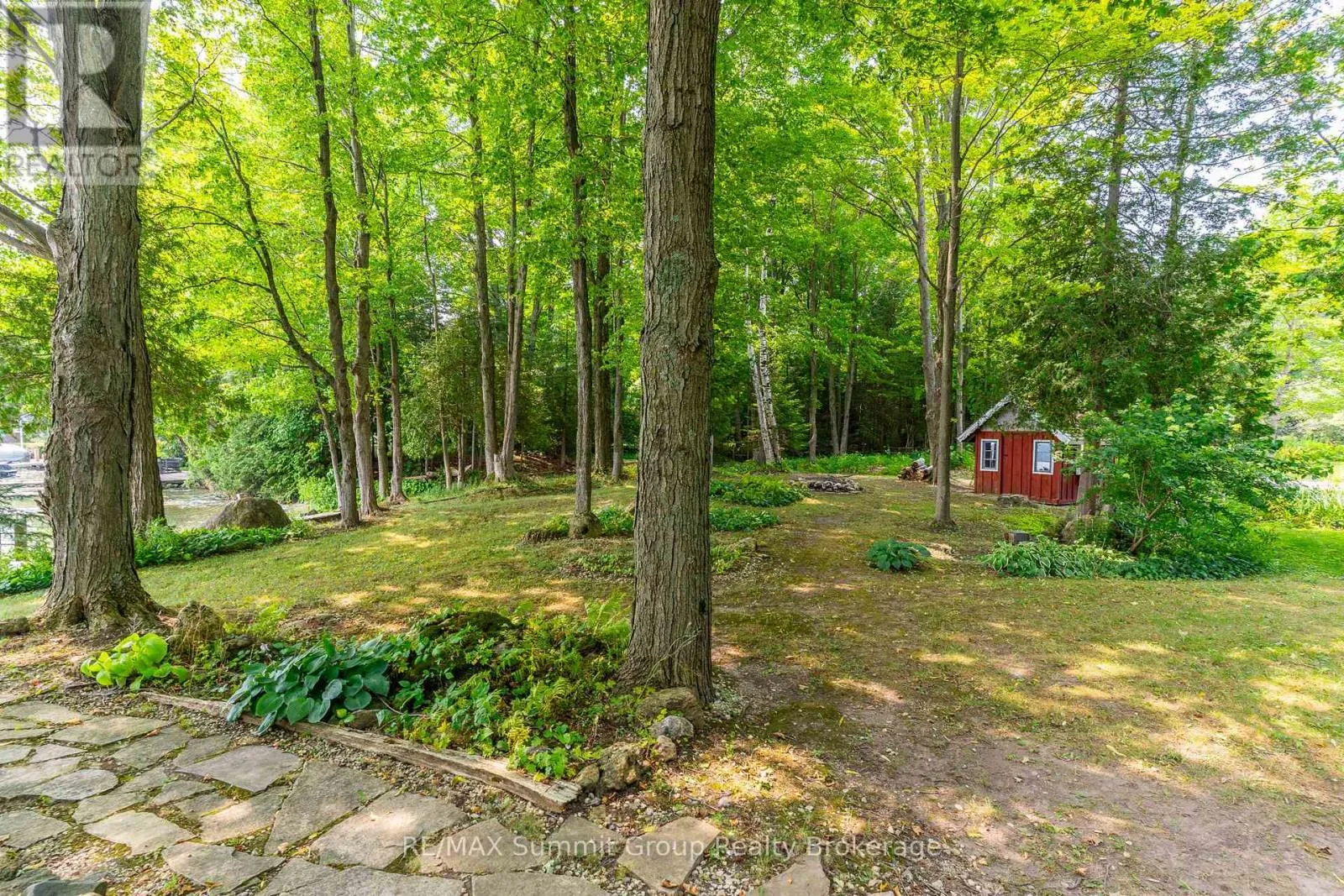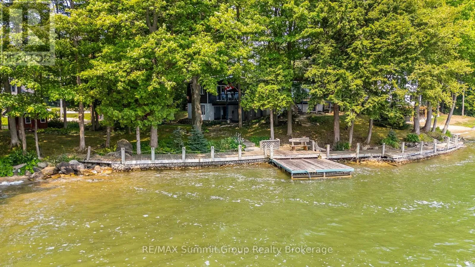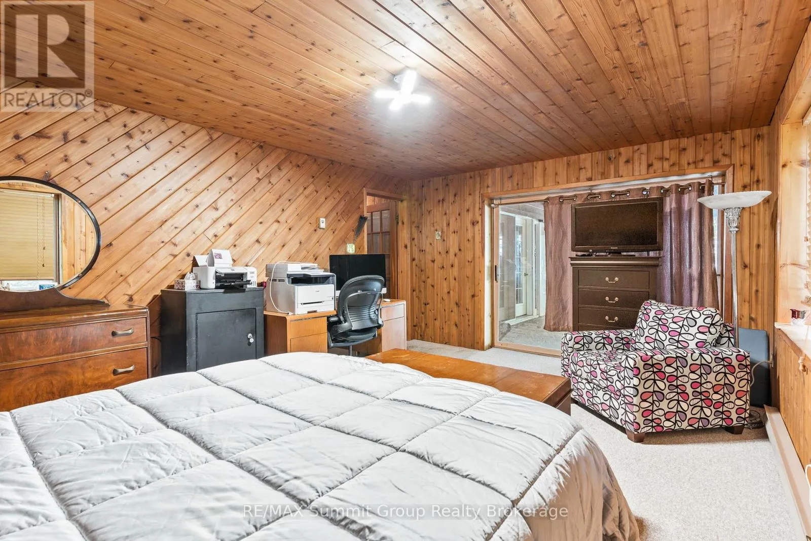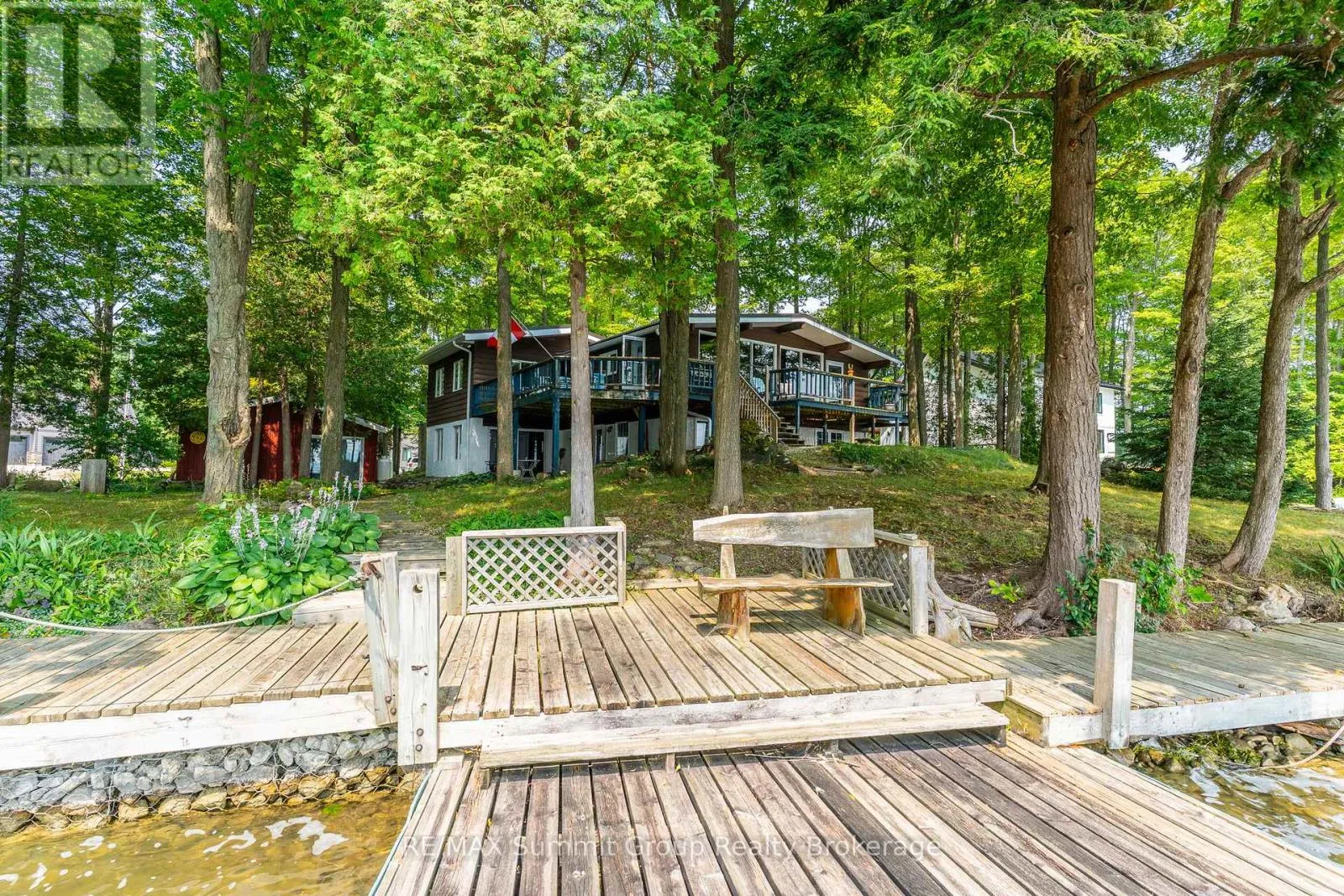 Cross Streets: Baragar Rd & Point Road. ** Directions: From Grey Rd 13 (Beaver Valley Rd) turn east onto 12th Concession B, then right/south onto Point Rd, then left/east onto Baragar Rd to property on the right/south. Where the shoreline stretches wide and the seasons play out at your front door, this Lake Eugenia property delivers space, privacy, and four-season fun. At least 180 feet of south-facing shoreline sets the stage for year-round living or your future build. Once an original double lot, this 0.639-acre property is mostly treed and natural, with a forest floor that blends seamlessly into the shoreline. A full-length walkway stretches across the water's edge, set over a stone wall, leading to a dock for deeper-water access. At the west end, a sandy beach with a gentle, shallow entry is perfect for children or relaxed wading. The Viceroy-style bungalow, built in 1968 with a later-added basement, offers a total of five bedrooms and two bathrooms. The main floor features three bedrooms and a five-piece bath, along with a galley kitchen that opens to the dining and living rooms. Expansive windows frame the lake views, and multiple walkouts lead to a wraparound deck, perfect for morning coffee, summer meals, or simply soaking in the scenery. The walkout lower level includes two additional bedrooms, a three-piece bath, and a laundry area, plus a spacious rec room warmed by a propane fireplace with direct access to the outdoors. The main heat source is electric baseboard throughout, and the septic system was replaced in 2021 and a Hy-Grade metal roof in 2006. A detached, uninsulated, oversized double-car garage provides space for vehicles and gear. This property is ideal for those seeking a premium lot with an affordable cottage to enjoy as-is, or for anyone planning to build a custom waterfront retreat now or in the future. Whether your days are spent swimming, paddling, or fishing from your dock, skiing at nearby Beaver Valley Ski Club, or hiking the Bruce Trail, this location offers four seasons of recreation and the rare privacy that comes with such generous frontage on Lake Eugenia. (id:27476)