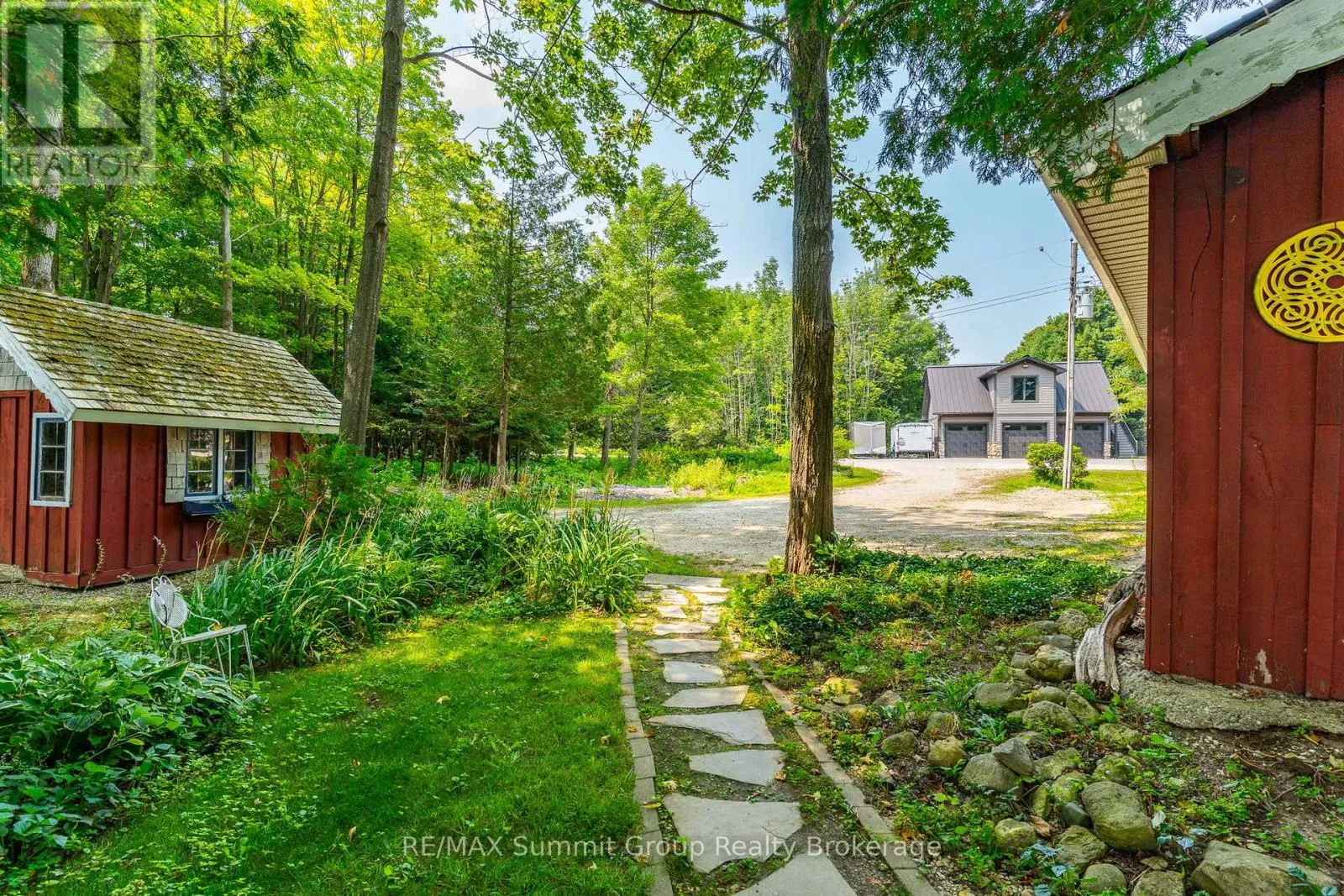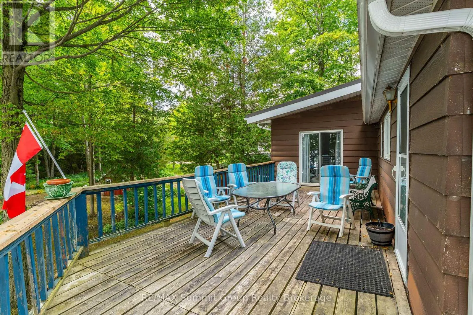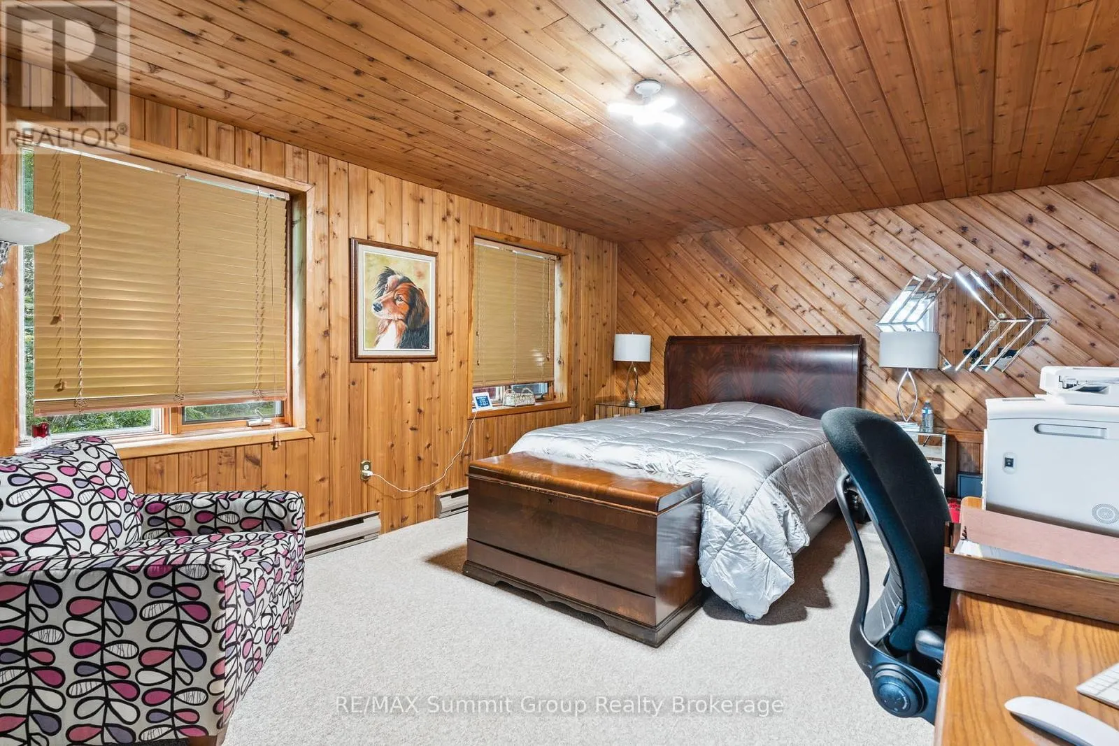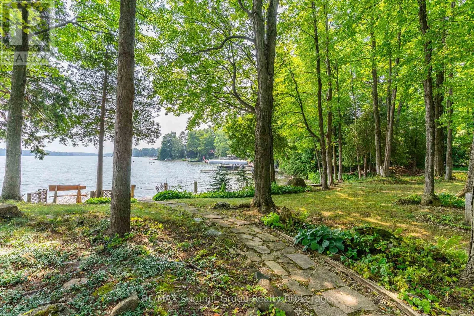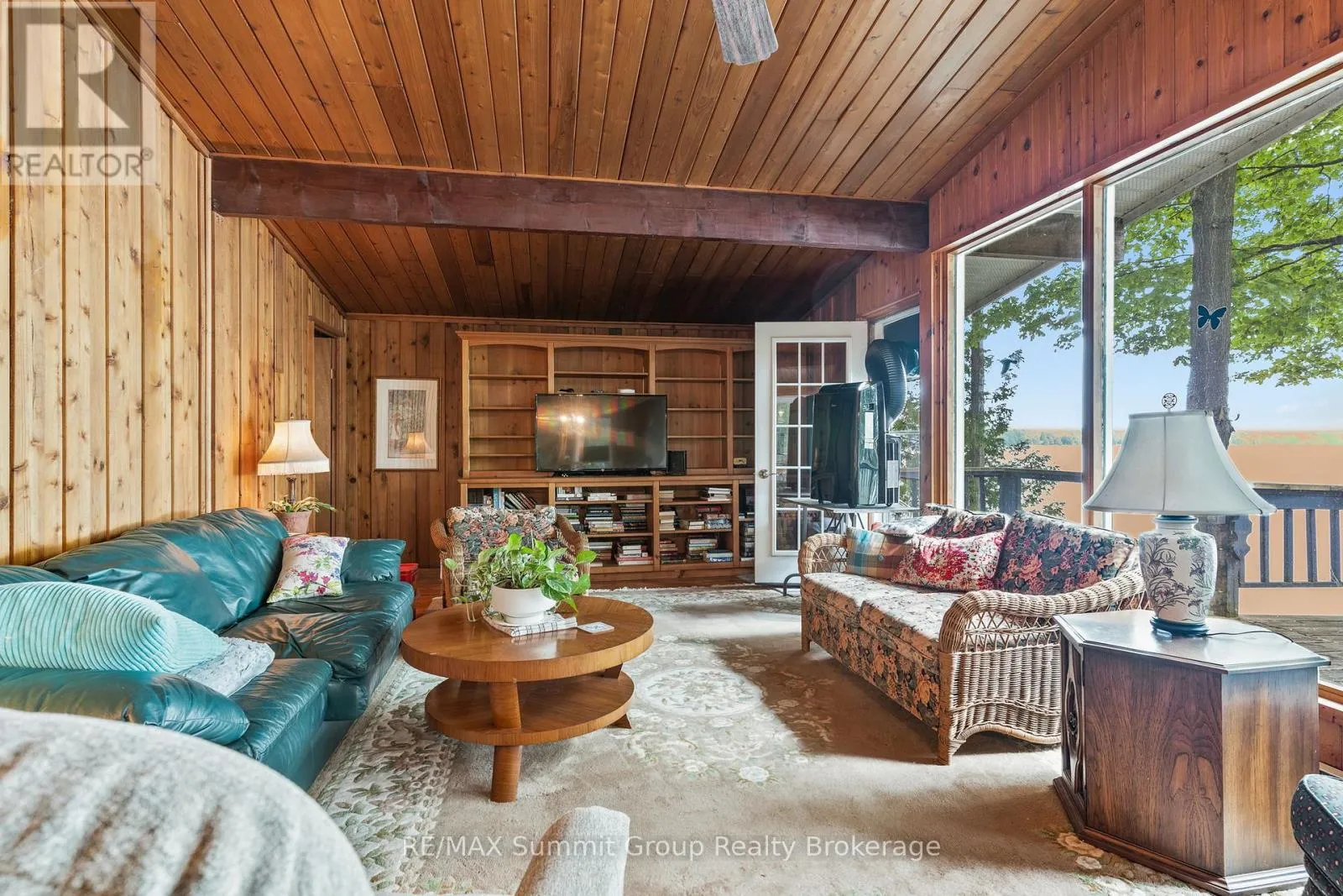Cross Streets: Baragar Rd & Point Road. ** Directions: From Grey Rd 13 (Beaver Valley Rd) turn east onto 12th Concession B, then right/south onto Point Rd, then left/east onto Baragar Rd to property on the right/south. Where the shoreline stretches wide and the seasons play out at your front door, this Lake Eugenia property delivers space, privacy, and four-season fun. At least 180 feet of south-facing shoreline sets the stage for year-round living or your future build. Once an original double lot, this 0.639-acre property is mostly treed and natural, with a forest floor that blends seamlessly into the shoreline. A full-length walkway stretches across the water's edge, set over a stone wall, leading to a dock for deeper-water access. At the west end, a sandy beach with a gentle, shallow entry is perfect for children or relaxed wading. The Viceroy-style bungalow, built in 1968 with a later-added basement, offers a total of five bedrooms and two bathrooms. The main floor features three bedrooms and a five-piece bath, along with a galley kitchen that opens to the dining and living rooms. Expansive windows frame the lake views, and multiple walkouts lead to a wraparound deck, perfect for morning coffee, summer meals, or simply soaking in the scenery. The walkout lower level includes two additional bedrooms, a three-piece bath, and a laundry area, plus a spacious rec room warmed by a propane fireplace with direct access to the outdoors. The main heat source is electric baseboard throughout, and the septic system was replaced in 2021 and a Hy-Grade metal roof in 2006. A detached, uninsulated, oversized double-car garage provides space for vehicles and gear. This property is ideal for those seeking a premium lot with an affordable cottage to enjoy as-is, or for anyone planning to build a custom waterfront retreat now or in the future. Whether your days are spent swimming, paddling, or fishing from your dock, skiing at nearby Beaver Valley Ski Club, or hiking the Bruce Trail, this location offers four seasons of recreation and the rare privacy that comes with such generous frontage on Lake Eugenia. (id:27476)
