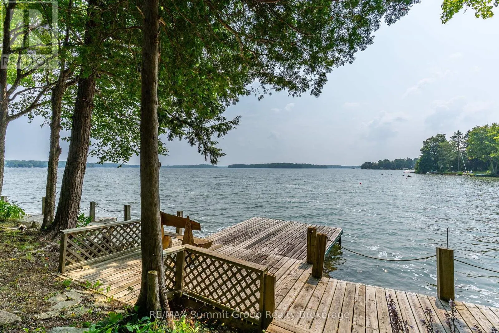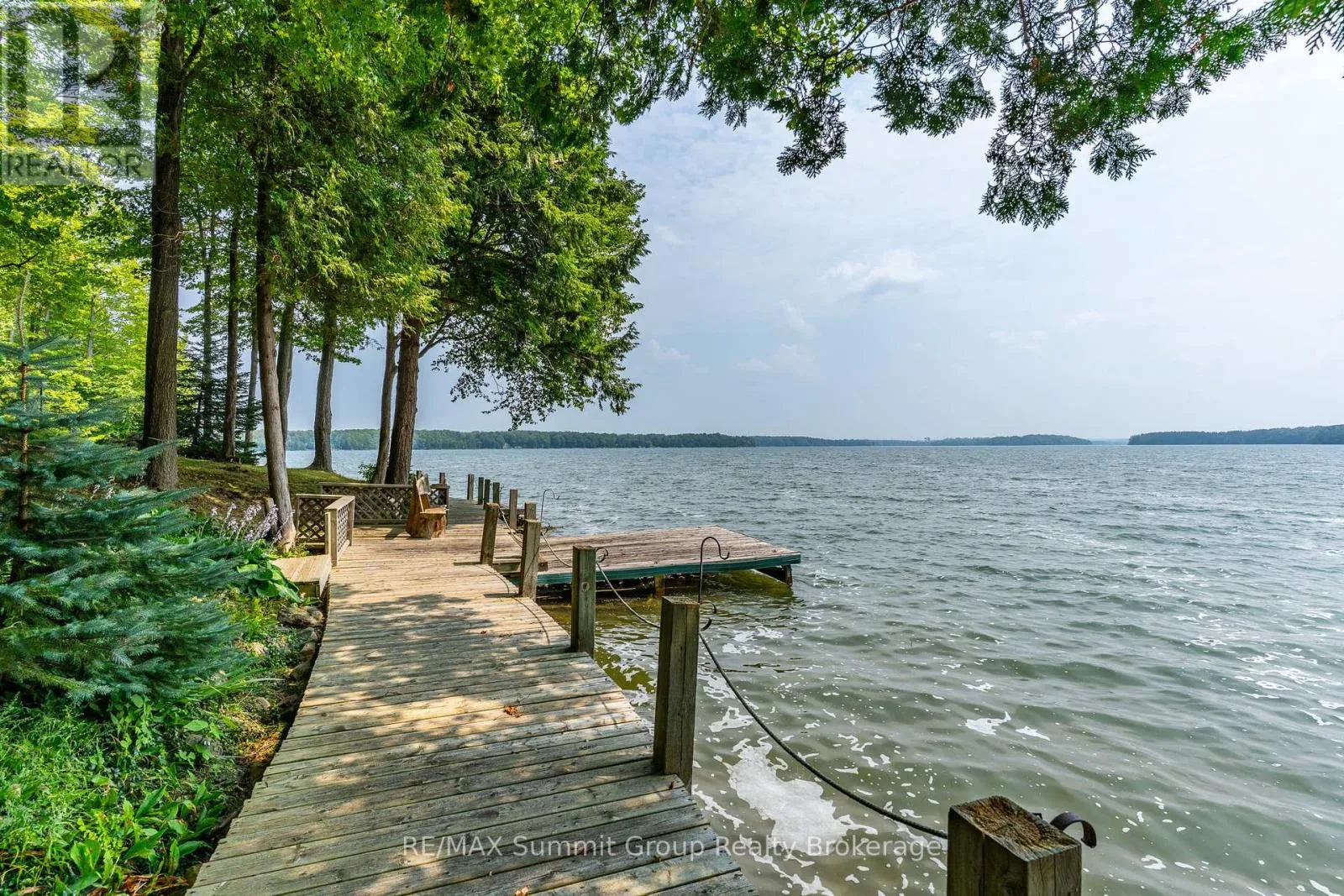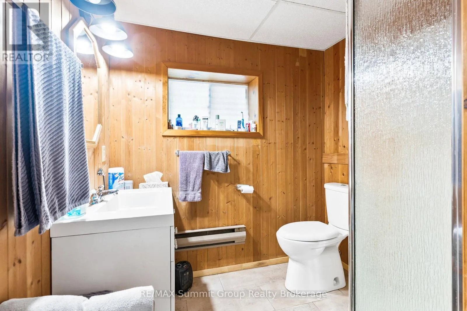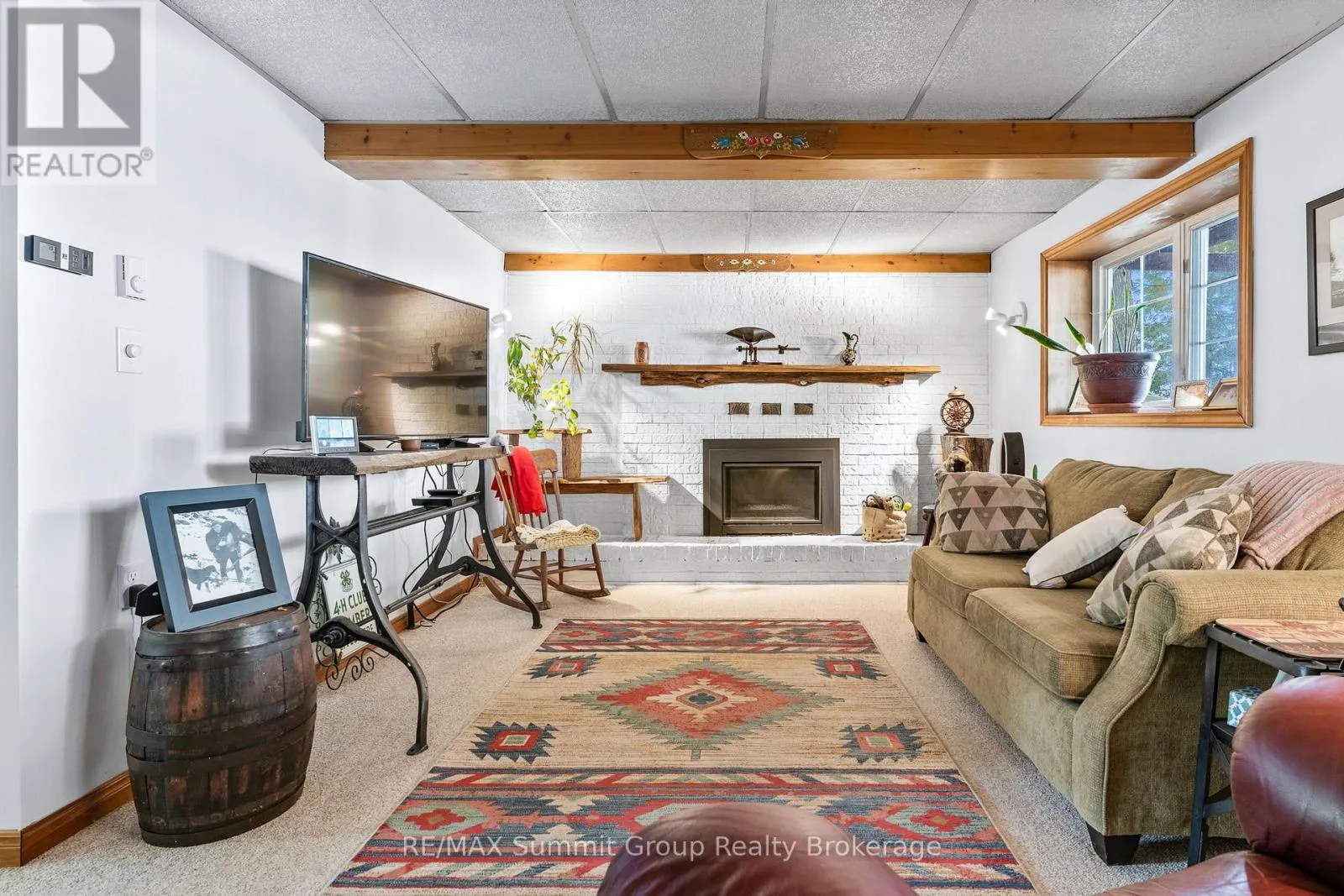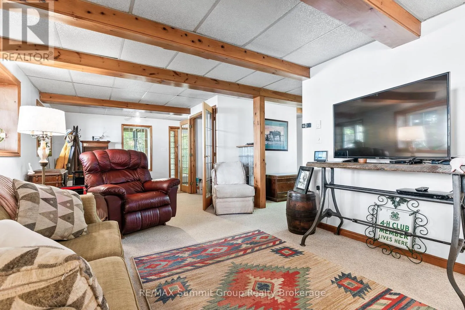 Cross Streets: Baragar Rd & Point Road. ** Directions: From Grey Rd 13 (Beaver Valley Rd) turn east onto 12th Concession B, then right/south onto Point Rd, then left/east onto Baragar Rd to property on the right/south. Where the shoreline stretches wide and the seasons play out at your front door, this Lake Eugenia property delivers space, privacy, and four-season fun. At least 180 feet of south-facing shoreline sets the stage for year-round living or your future build. Once an original double lot, this 0.639-acre property is mostly treed and natural, with a forest floor that blends seamlessly into the shoreline. A full-length walkway stretches across the water's edge, set over a stone wall, leading to a dock for deeper-water access. At the west end, a sandy beach with a gentle, shallow entry is perfect for children or relaxed wading. The Viceroy-style bungalow, built in 1968 with a later-added basement, offers a total of five bedrooms and two bathrooms. The main floor features three bedrooms and a five-piece bath, along with a galley kitchen that opens to the dining and living rooms. Expansive windows frame the lake views, and multiple walkouts lead to a wraparound deck, perfect for morning coffee, summer meals, or simply soaking in the scenery. The walkout lower level includes two additional bedrooms, a three-piece bath, and a laundry area, plus a spacious rec room warmed by a propane fireplace with direct access to the outdoors. The main heat source is electric baseboard throughout, and the septic system was replaced in 2021 and a Hy-Grade metal roof in 2006. A detached, uninsulated, oversized double-car garage provides space for vehicles and gear. This property is ideal for those seeking a premium lot with an affordable cottage to enjoy as-is, or for anyone planning to build a custom waterfront retreat now or in the future. Whether your days are spent swimming, paddling, or fishing from your dock, skiing at nearby Beaver Valley Ski Club, or hiking the Bruce Trail, this location offers four seasons of recreation and the rare privacy that comes with such generous frontage on Lake Eugenia. (id:27476)