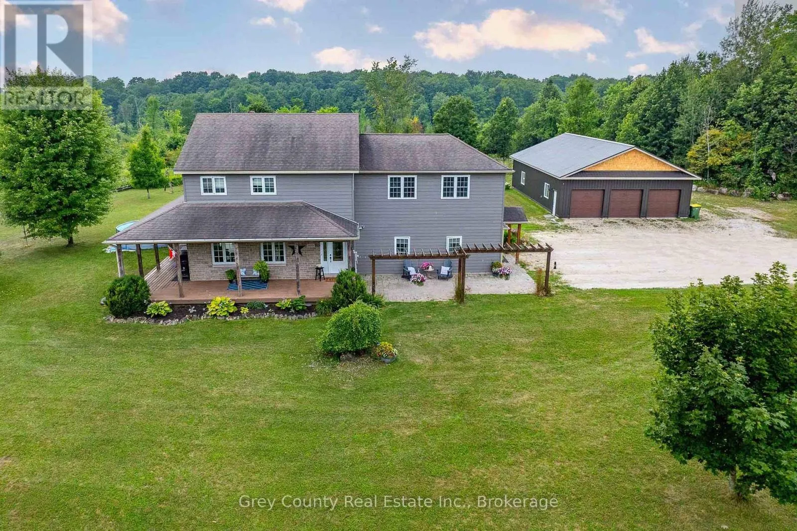 Cross Streets: Grey Rd 30 & 9th Line. ** Directions: From the lights in Markdale go east on Grey Rd 12, Right on Grey Rd 30, Left on 9th Line, follow to sign on Right. Welcome to your own piece of the country, this impressive property offers the space, privacy, and flexibility youve been searching for. Set on 12 beautiful acres, the main home features 5 bedrooms and a warm, inviting layout perfect for both family living and entertaining. Natural light pours through large windows, showcasing the surrounding countryside and creating a bright, airy atmosphere throughout. The spacious kitchen and dining area flow easily into comfortable living spaces, while generous bedrooms and updated bathrooms provide comfort for the whole family. rare highlight of this home is the attached yet completely private 2-bedroom in-law suite. With its own entrance, full kitchen, living area, and bath, this self-contained space is ideal for multi-generational living, guest accommodations, or even rental potential. Outdoors, youll find a detached 3-car garage offering plenty of room for vehicles, recreational toys, and storage with an attached workshop providing an ideal space for hobbies, woodworking, or small business use. The expansive property offers a blend of open areas and natural beauty, giving you endless possibilitiesgardening, recreation, trails, or simply relaxing in your own private retreat. Located just a short drive from town amenities and the Beaver Valley, this property offers the best of both worlds: the peace and quiet of rural living with convenient access to everything you need. Whether youre looking to accommodate extended family, work from home, or simply enjoy the space and freedom of country life, this home is ready to welcome you. (id:27476)