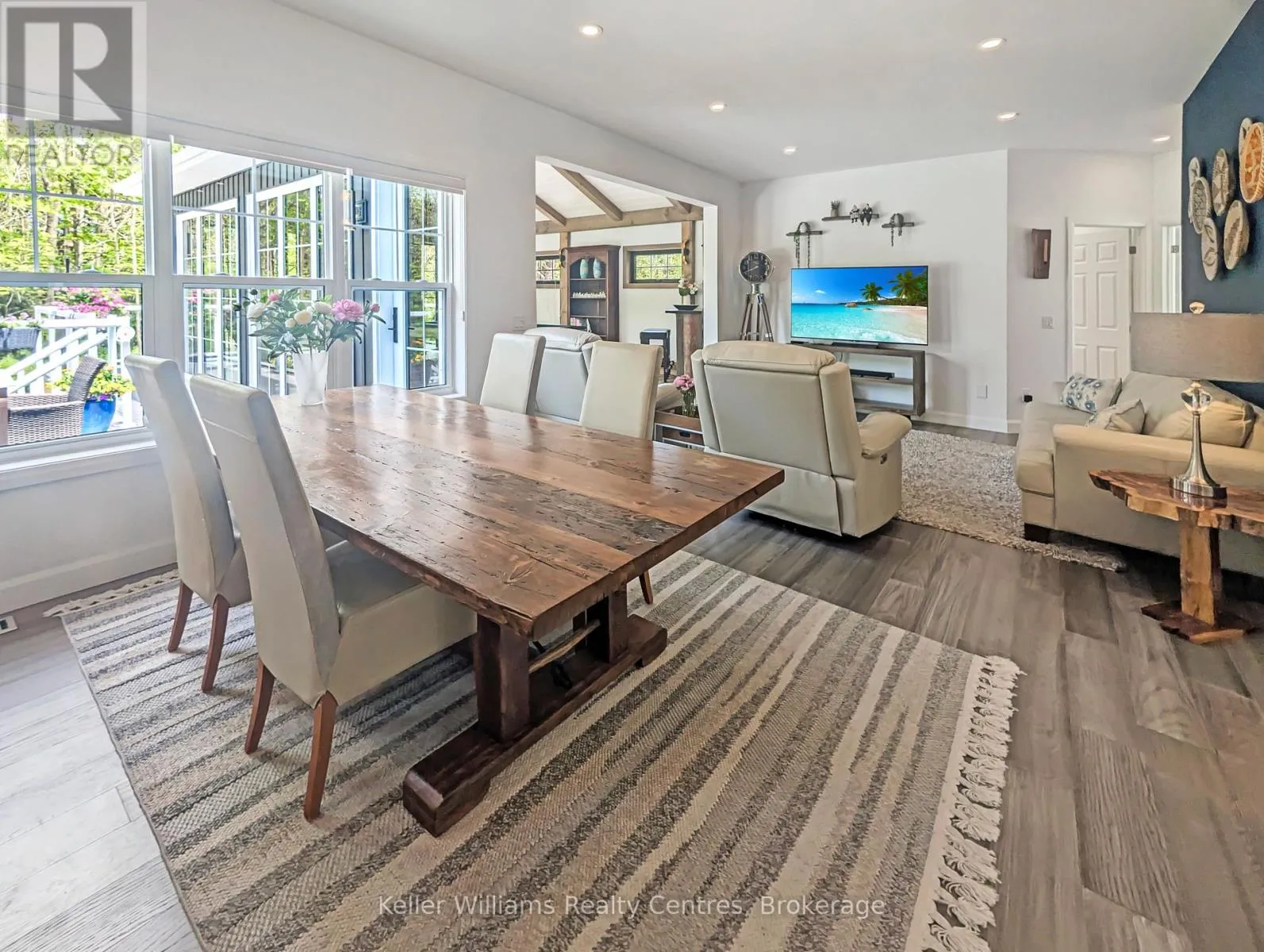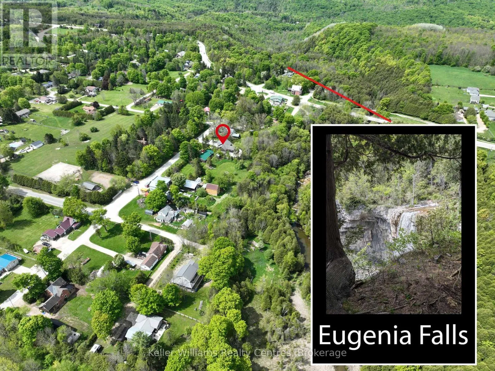Cross Streets: Evans Street. ** Directions: Coming from Grey Rd 13 turn onto Pellisier Street in Eugenia. House will be on your left. Located in the picturesque village of Eugenia, this beautifully crafted bungalow offers the perfect blend of comfort, function, and location. With three bedrooms and three bathrooms spread over two levels, the home is ideal for families, weekenders, or those seeking a peaceful year-round retreat in one of Grey County's most sought-after destinations. The main floor features two spacious bedrooms and two full bathrooms, including a bright, open-concept living space that invites both relaxation and entertaining. A cozy propane fireplace anchors the expansive open kitchen/ dining room which provides plenty of room to cook, gather, and enjoy meals together, perfect for hosting. Just off the kitchen/dining area is a stunning large living room with solid oak flooring which offers a beautiful space that can easily serve as a games area or home lounge. The walk-out basement, offers a third bedroom and another full bathroom perfect for guests or extended family. In-floor heating in both the basement and garage ensures year-round warmth and comfort. A large heated workshop with double doors in the basement provides the perfect space for tools, hobbies, or storage. There's also a cold storage room for preserving seasonal goods or wine. Outdoors, the home continues to impress. A concrete driveway and walkway add to the curb appeal and practicality, while the composite deck offers the ideal spot for outdoor dining or relaxing, complete with a propane barbecue hookup for easy grilling. From your doorstep, enjoy walking access to both Lake Eugenia and the stunning Eugenia Falls. With Beaver Valley just a short drive away, the area offers endless opportunities for hiking, skiing, and exploring. This is more than a home, its a lifestyle. Whether you're seeking a full-time residence or a tranquil weekend escape, this Eugenia bungalow delivers exceptional quality, comfort, and location in equal measure. (id:27476)