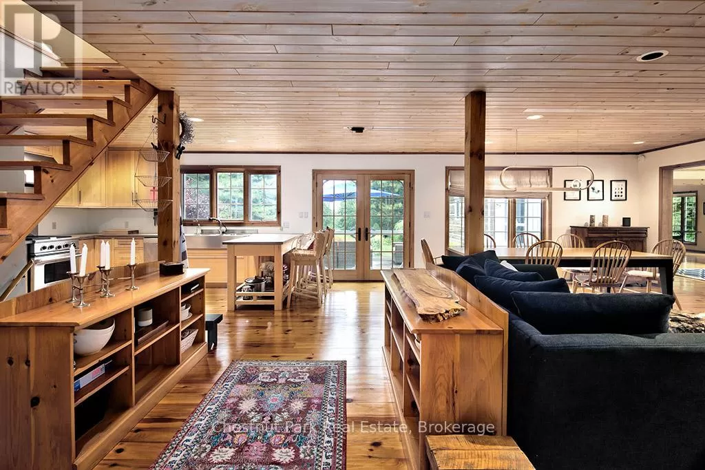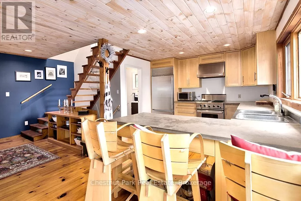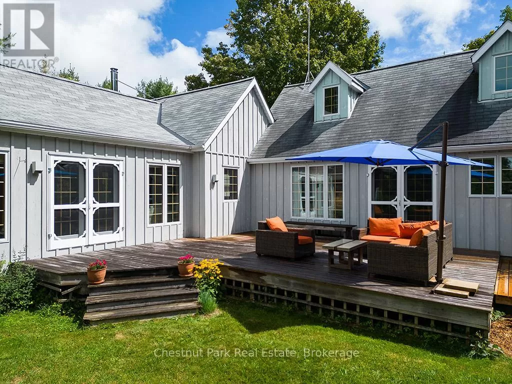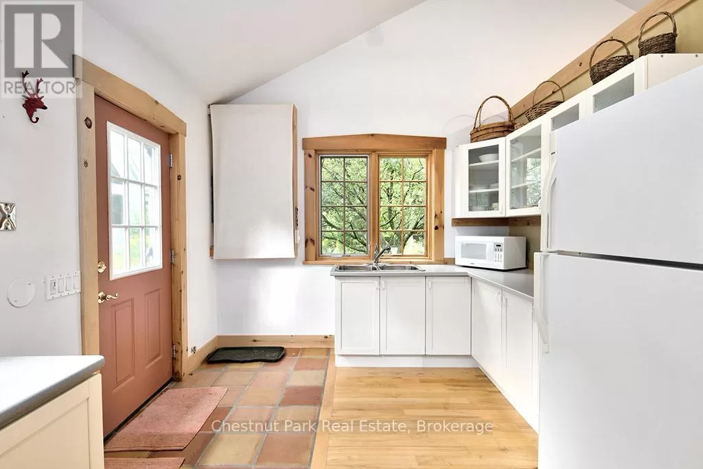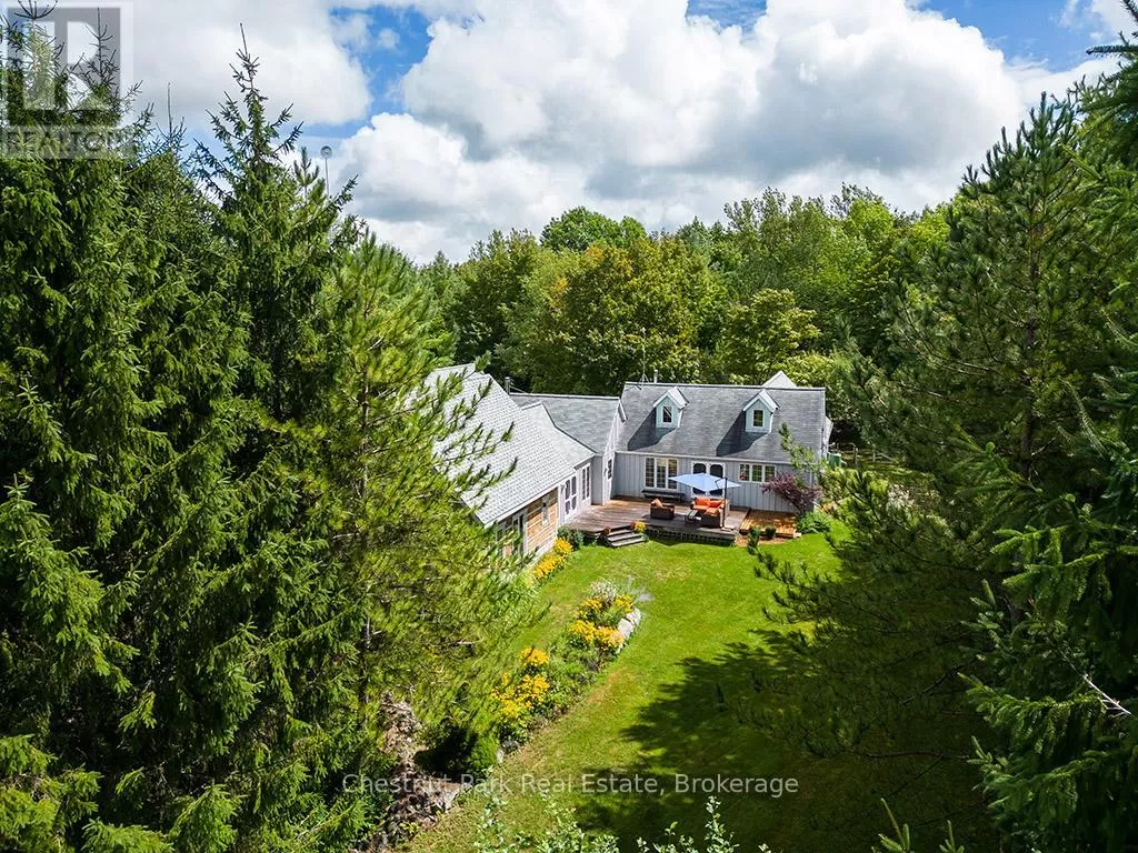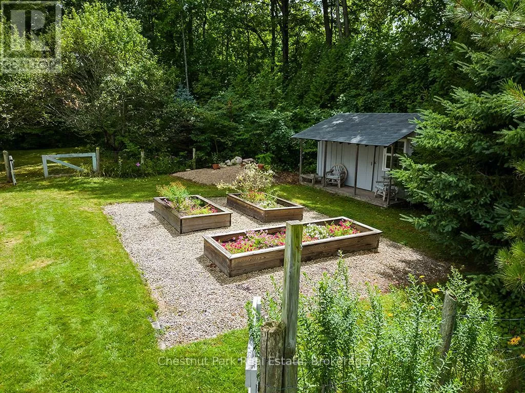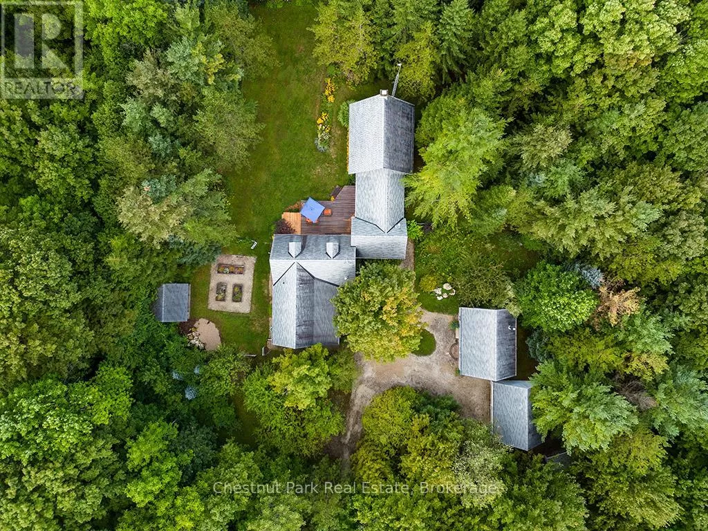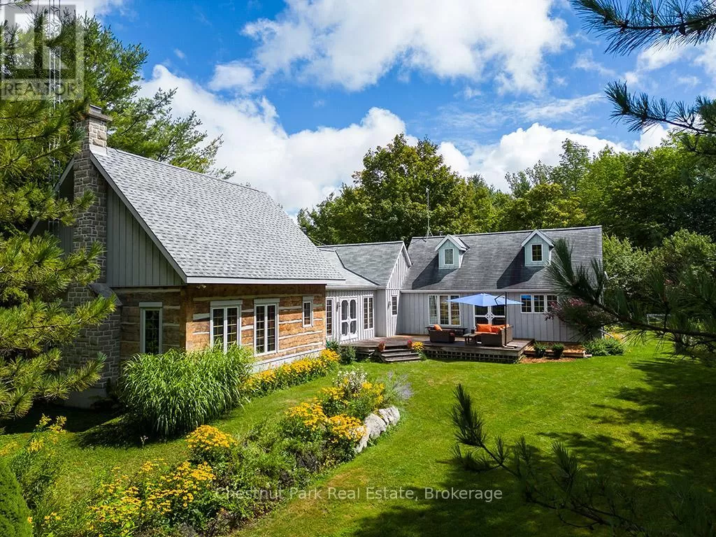 Cross Streets: Hwy 10, Hwy 4 & East Back Line. ** Directions: From Flesherton, travel south on Highway 10 and then turn left or east onto Road 160 then to property at the dead end of the road on the left or north side. Welcome to this private and versatile 10-acre property in the heart of Grey Highlands. Tucked at the end of a quiet dead-end road it offers privacy with whimsical gardens, open spaces, expansive forest, walking and biking trails and several multi-purpose buildings. The main residence spans approximately 3,500 square feet and features 3 bedrooms and 3 bathrooms. The kitchen encompasses the dining room and a cozy sitting area with wood stove. With sub zero fridge, gas stove and maple cabinetry it welcomes the chef in the family. Walk out from the dining room to the deck surrounded by wildflowers and mature trees. The guest bedroom has a renovated 3pc ensuite bath and built ins for storage. A stunning 2005 log addition adds warmth and character with a Rumford fireplace with limestone hearth, spacious primary bedroom with ensuite, walk-in closet. Pine floors run throughout, and a whitewashed loft provides additional sleeping space for the family, and has easy access to a 3pc bath off the kitchen. The entire house is sunlit filled with several rooms for gathering friends and family for a meal, or lively games. The lower level is unfinished, and includes a sauna, workshop, dark room, and plenty of storage. Plenty of room and unlimited potential. Steps away, the fully equipped guest house includes a kitchen, bathroom, and bedroom--ideal for guests or rental use. A handcrafted stone casita with a sleeping loft and wood-burning fireplace sits tucked in the woods, perfect for peaceful getaways or kids playhouse. The land features raised vegetable beds, a potting shed, wildflowers, apple trees. The setting is truly special. Enjoy trails throughout the forested acreage, ideal for hiking and mountain biking and snowshoeing. An open area lends itself to fun and games and it is adjacent to the tobogganing hill. It is less than 2 hours from the GTA, and 10 minutes to Beaver Valley Ski Club, making this a perfect weekend retreat or seasonal base for nature lovers and ski families. (id:27476)