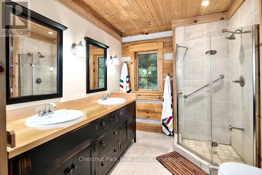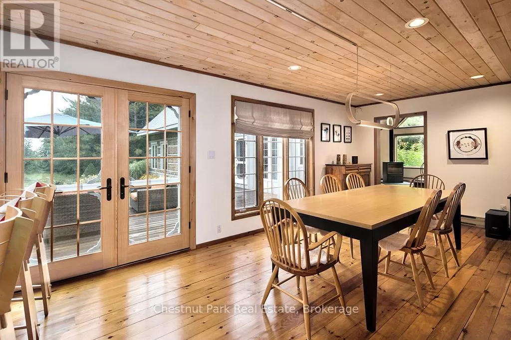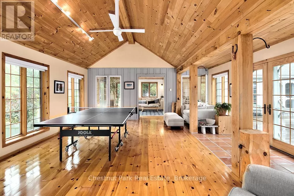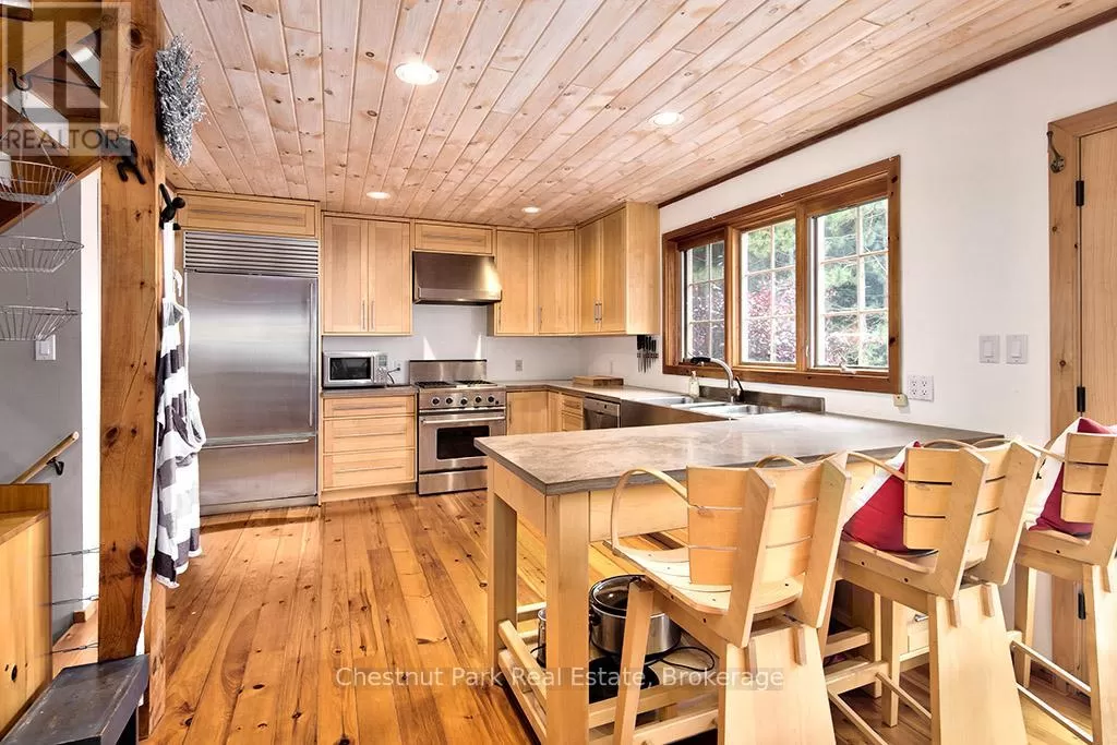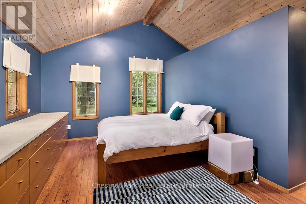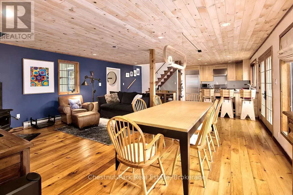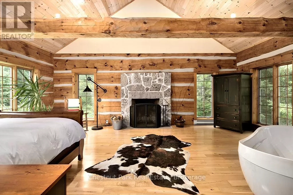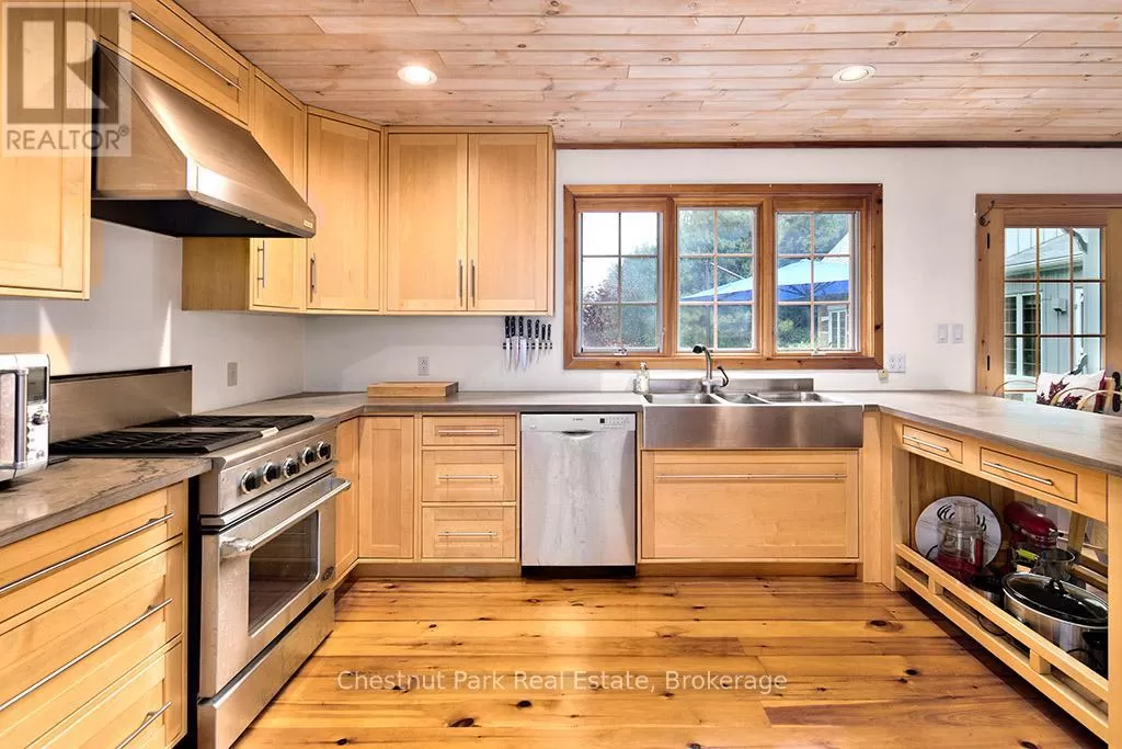 Cross Streets: Hwy 10, Hwy 4 & East Back Line. ** Directions: From Flesherton, travel south on Highway 10 and then turn left or east onto Road 160 then to property at the dead end of the road on the left or north side. Welcome to this private and versatile 10-acre property in the heart of Grey Highlands. Tucked at the end of a quiet dead-end road it offers privacy with whimsical gardens, open spaces, expansive forest, walking and biking trails and several multi-purpose buildings. The main residence spans approximately 3,500 square feet and features 3 bedrooms and 3 bathrooms. The kitchen encompasses the dining room and a cozy sitting area with wood stove. With sub zero fridge, gas stove and maple cabinetry it welcomes the chef in the family. Walk out from the dining room to the deck surrounded by wildflowers and mature trees. The guest bedroom has a renovated 3pc ensuite bath and built ins for storage. A stunning 2005 log addition adds warmth and character with a Rumford fireplace with limestone hearth, spacious primary bedroom with ensuite, walk-in closet. Pine floors run throughout, and a whitewashed loft provides additional sleeping space for the family, and has easy access to a 3pc bath off the kitchen. The entire house is sunlit filled with several rooms for gathering friends and family for a meal, or lively games. The lower level is unfinished, and includes a sauna, workshop, dark room, and plenty of storage. Plenty of room and unlimited potential. Steps away, the fully equipped guest house includes a kitchen, bathroom, and bedroom--ideal for guests or rental use. A handcrafted stone casita with a sleeping loft and wood-burning fireplace sits tucked in the woods, perfect for peaceful getaways or kids playhouse. The land features raised vegetable beds, a potting shed, wildflowers, apple trees. The setting is truly special. Enjoy trails throughout the forested acreage, ideal for hiking and mountain biking and snowshoeing. An open area lends itself to fun and games and it is adjacent to the tobogganing hill. It is less than 2 hours from the GTA, and 10 minutes to Beaver Valley Ski Club, making this a perfect weekend retreat or seasonal base for nature lovers and ski families. (id:27476)