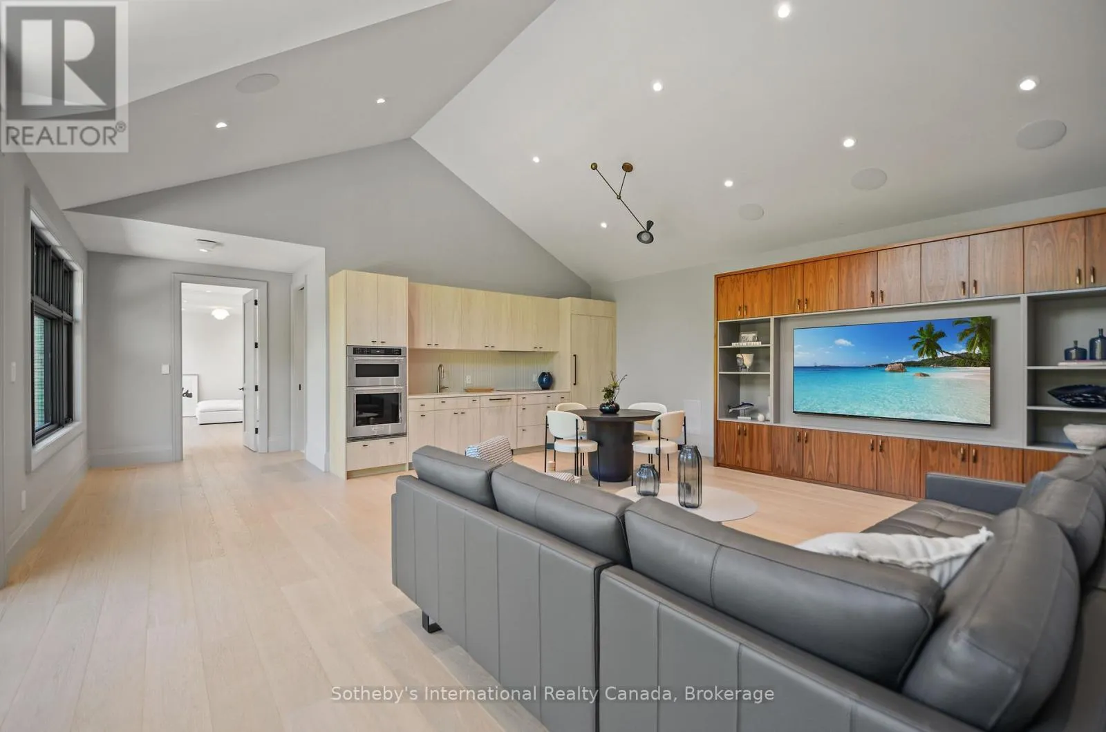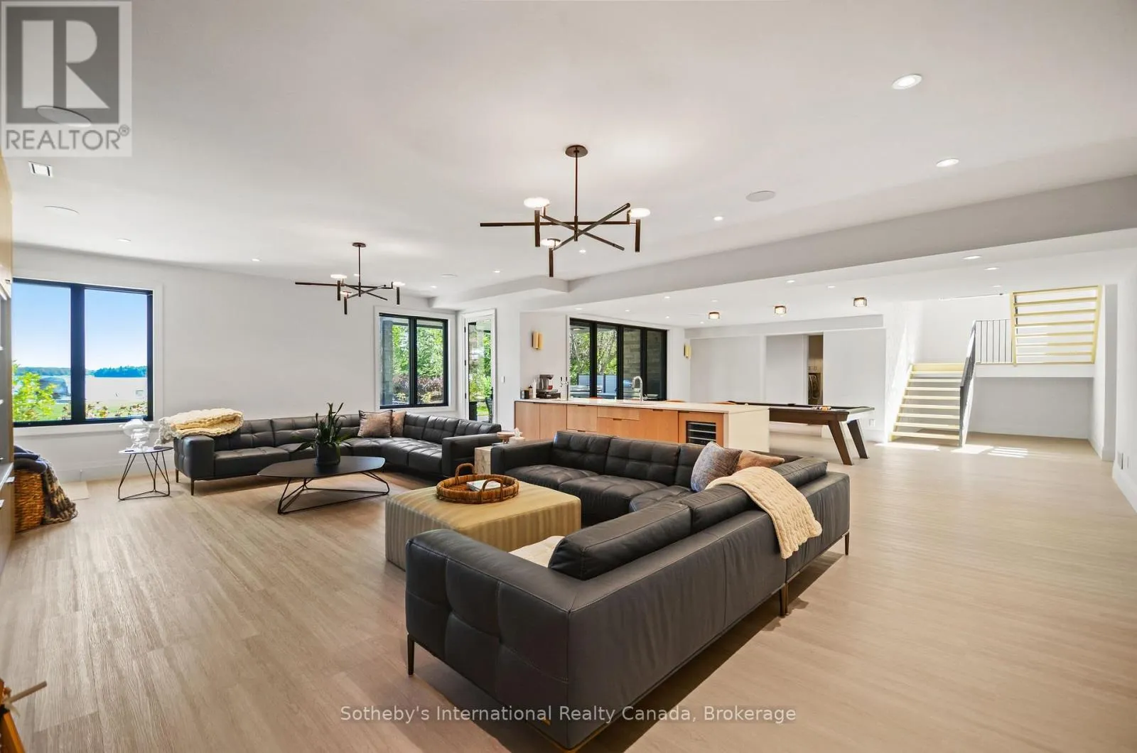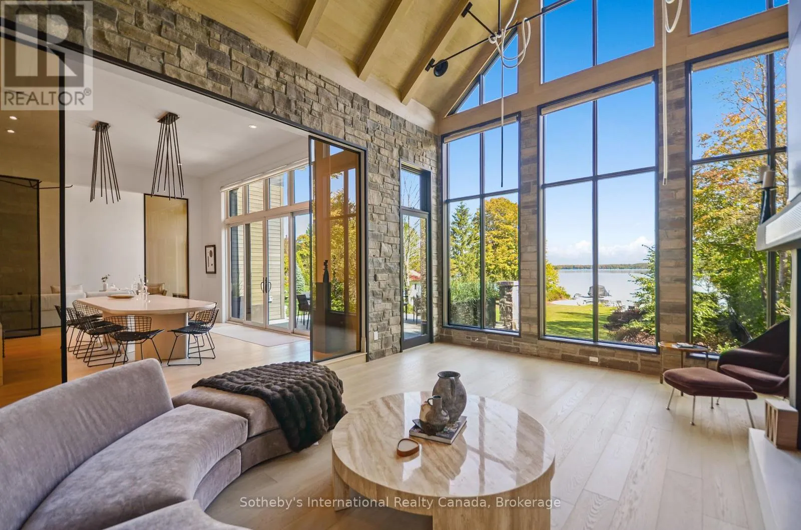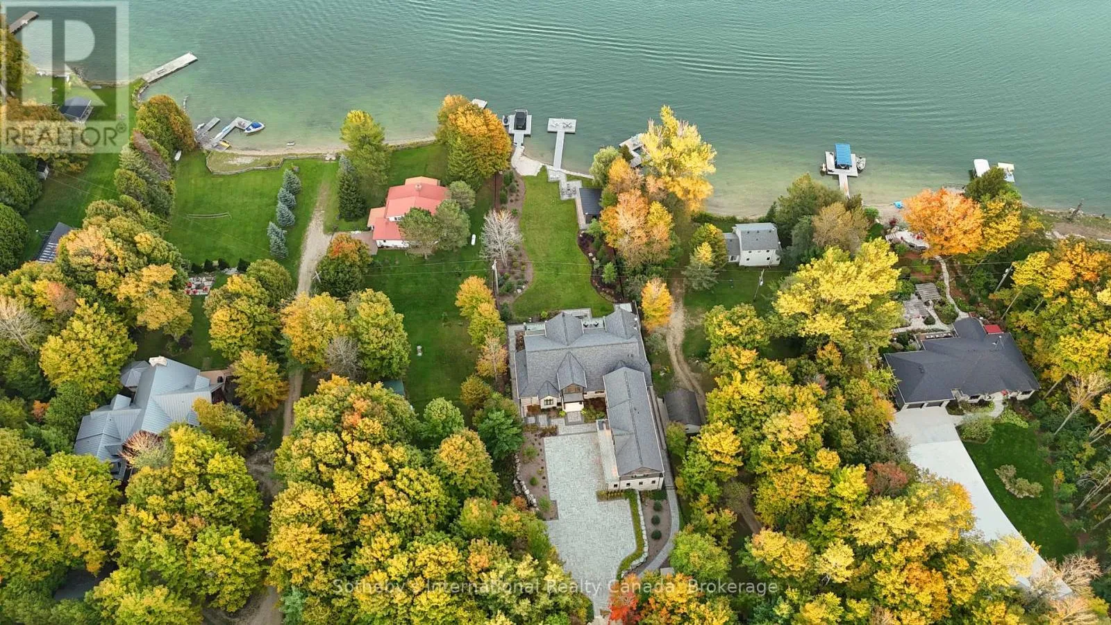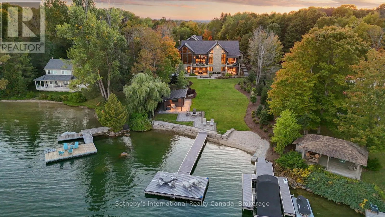 Cross Streets: Green Acres and Grey Rd 13. ** Directions: Grey Rd 4, North on Grey Rd 13, past Eugenia and Top O' The Rock on East Side. Perched on the shores of Lake Eugenia and minutes from Beaver Valley Ski Club, this 8,100 sq. ft. lakefront retreat blends refined design with relaxed four-season living. Crafted with precision and finished by EM Design, its a home made for gathering, entertaining, and unwinding by the water.The grand entrance opens to a breathtaking great room with vaulted ceilings, floor-to-ceiling windows framing lake views, and a dramatic 48" gas f/p. The chefs kitchen delivers professional appliances, dual dishwashers, a walk-in pantry, wine room, and coffee station. For meals, enjoy a formal dining area for 12 overlooking the lake or a cozy breakfast nook. Just beyond, the Lake Room with stone walls and wood-burning fireplace offers the perfect spot for après-ski evenings.The main-floor primary suite is a private sanctuary with radiant heated, instant screened porch, and spa-inspired ensuite featuring walk-in dressing room, oversized shower, makeup vanity, and Kohler bidet toilet.Above the garage, a 1,500 sq. ft. two-bedroom in-law suite includes a large deck with front-court views. The walkout lower level provides 3 ensuite bedrooms, a fitness room with steam bath, workshop access, laundry, and a 3-piece bath serving the hot tub and lake. The family room is an entertainers dream with pool table, peninsula bar with draft beer, and walkout to a covered outdoor kitchen and lounge with fireplace and TV.Outdoor living is elevated with two composite docks, boat lift, a lakeside cabana, hot tub, and multiple gathering spaces. Smart-home features let you control it all from your phone, making every season effortless. (id:27476)