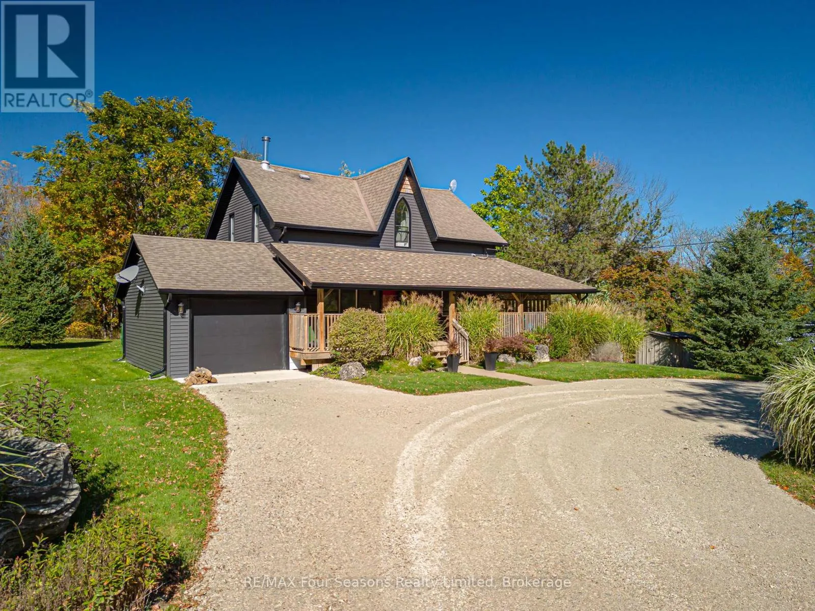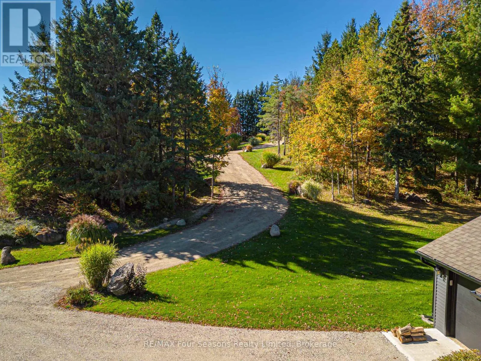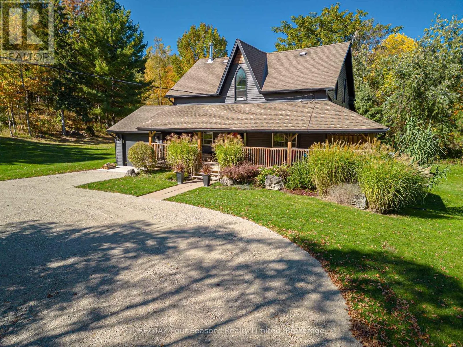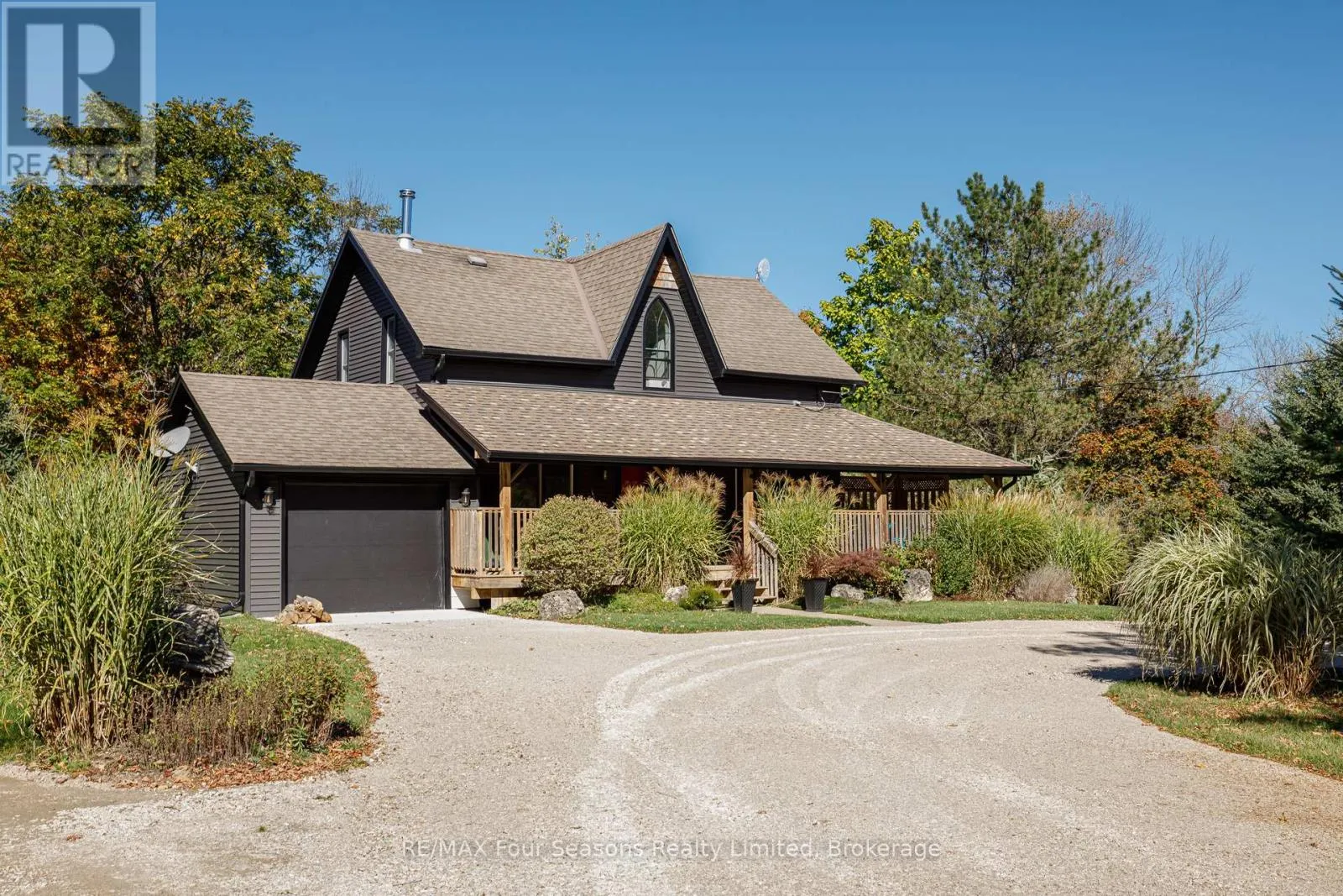 Cross Streets: Grey County Road 7 and Sideroad 19. ** Directions: Grey County Road 7 to Epping, intersection is at Sideroad 19, turn west, 2nd property on right side at sign. Classic country style Beaver Valley home on 1.3 beautifully landscaped acres of land. Full width covered porch with seating area at the front door. Spacious and bright interior main floor with large seating areas and dining room with wood stove. Sliding door walk out to 16'x14' covered back deck with glass railings overlooking ravine, stream and mature trees. Main floor primary suite with 3pc ensuite bath. Upstairs 4 guest bedrooms. House is heated and cooled by Geothermal forced air furnace. Full unfinished basement has plenty of storage and a walk out to ground level greenhouse. Single car attached garage. Ornamental grasses, mature trees and natural wooded surroundings combine to create a private setting. On the hillside above the house is a perfect spot for a guest house or rv / trailer capturing countryside views to Old Baldy. This home is in close proximity to the Bruce Trail, only 8 kms to Kimberley and 11kms to Beaver Valley Ski Club. Meaford Harbour is 15km to the north, as well as many other recreation areas. A peaceful location for comfortable year round country living. (id:27476)