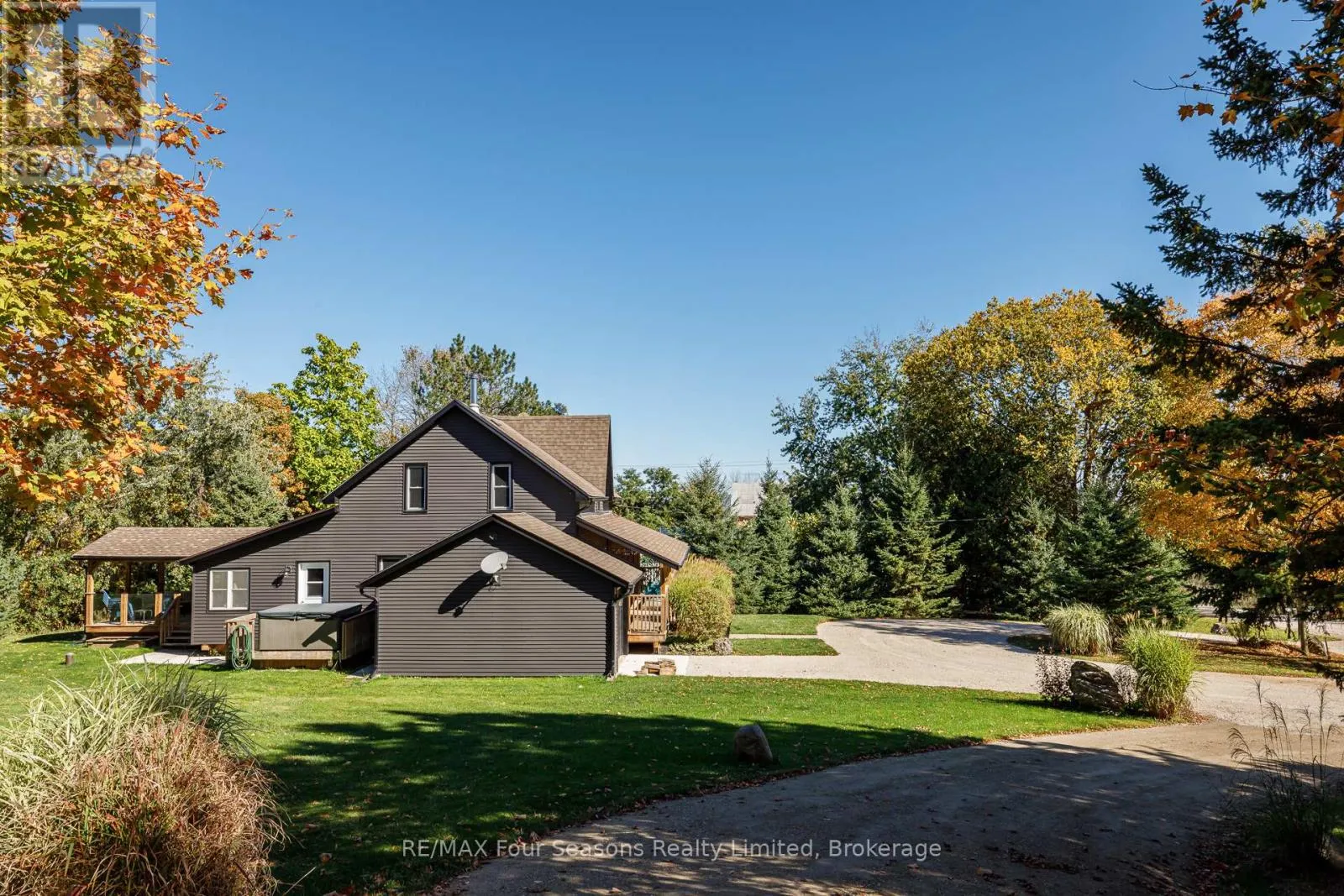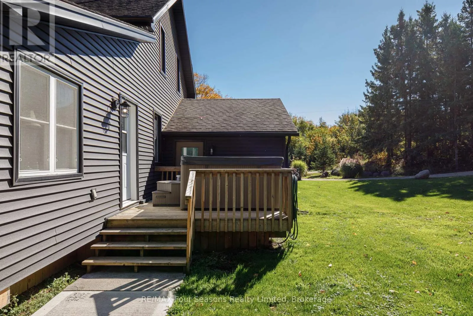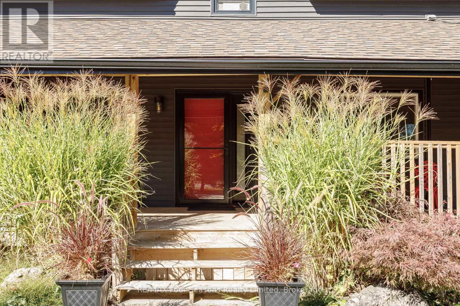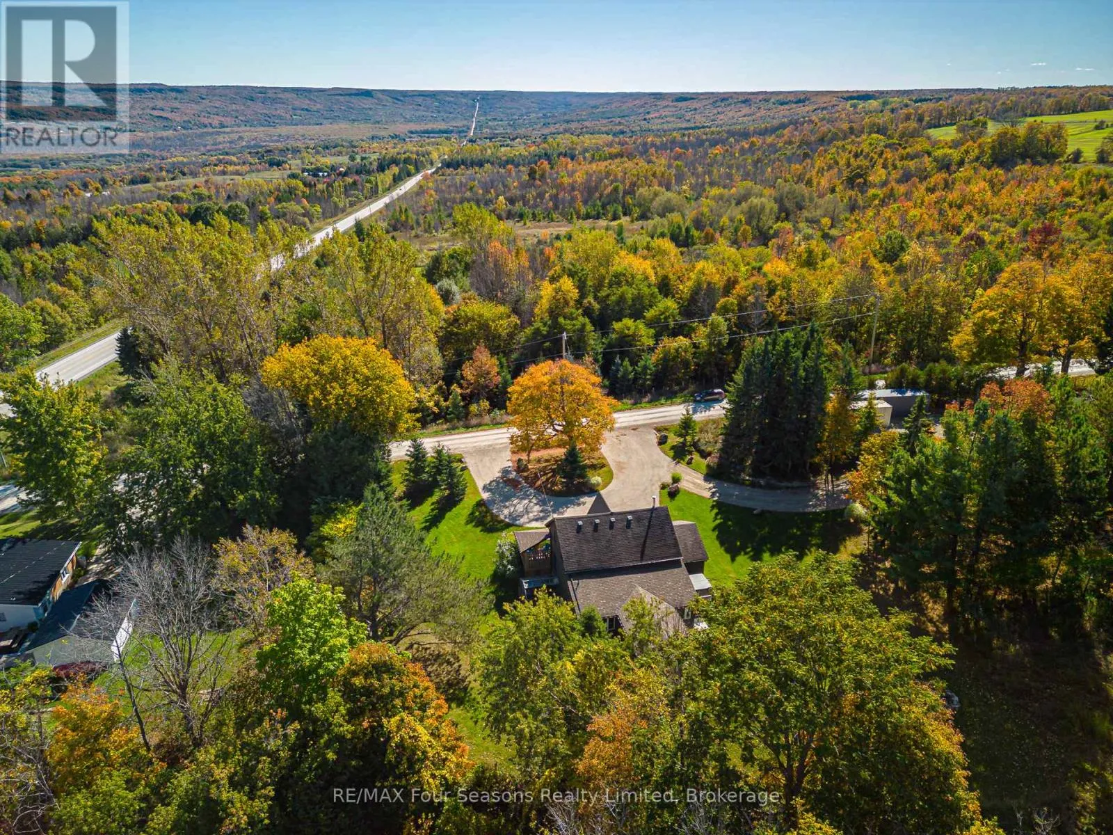 Cross Streets: Grey County Road 7 and Sideroad 19. ** Directions: Grey County Road 7 to Epping, intersection is at Sideroad 19, turn west, 2nd property on right side at sign. Classic country style Beaver Valley home on 1.3 beautifully landscaped acres of land. Full width covered porch with seating area at the front door. Spacious and bright interior main floor with large seating areas and dining room with wood stove. Sliding door walk out to 16'x14' covered back deck with glass railings overlooking ravine, stream and mature trees. Main floor primary suite with 3pc ensuite bath. Upstairs 4 guest bedrooms. House is heated and cooled by Geothermal forced air furnace. Full unfinished basement has plenty of storage and a walk out to ground level greenhouse. Single car attached garage. Ornamental grasses, mature trees and natural wooded surroundings combine to create a private setting. On the hillside above the house is a perfect spot for a guest house or rv / trailer capturing countryside views to Old Baldy. This home is in close proximity to the Bruce Trail, only 8 kms to Kimberley and 11kms to Beaver Valley Ski Club. Meaford Harbour is 15km to the north, as well as many other recreation areas. A peaceful location for comfortable year round country living. (id:27476)
