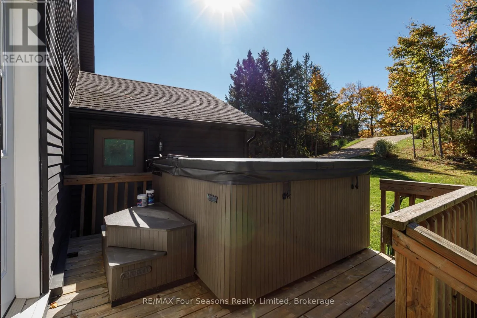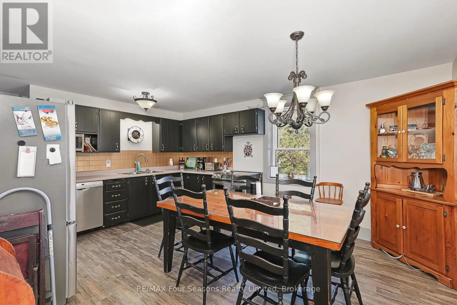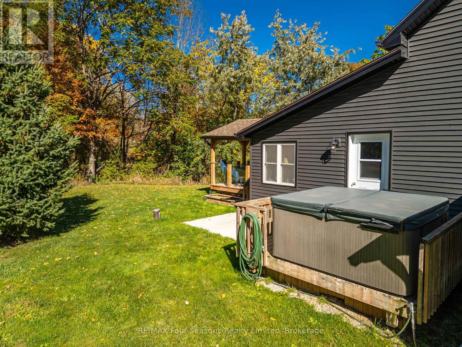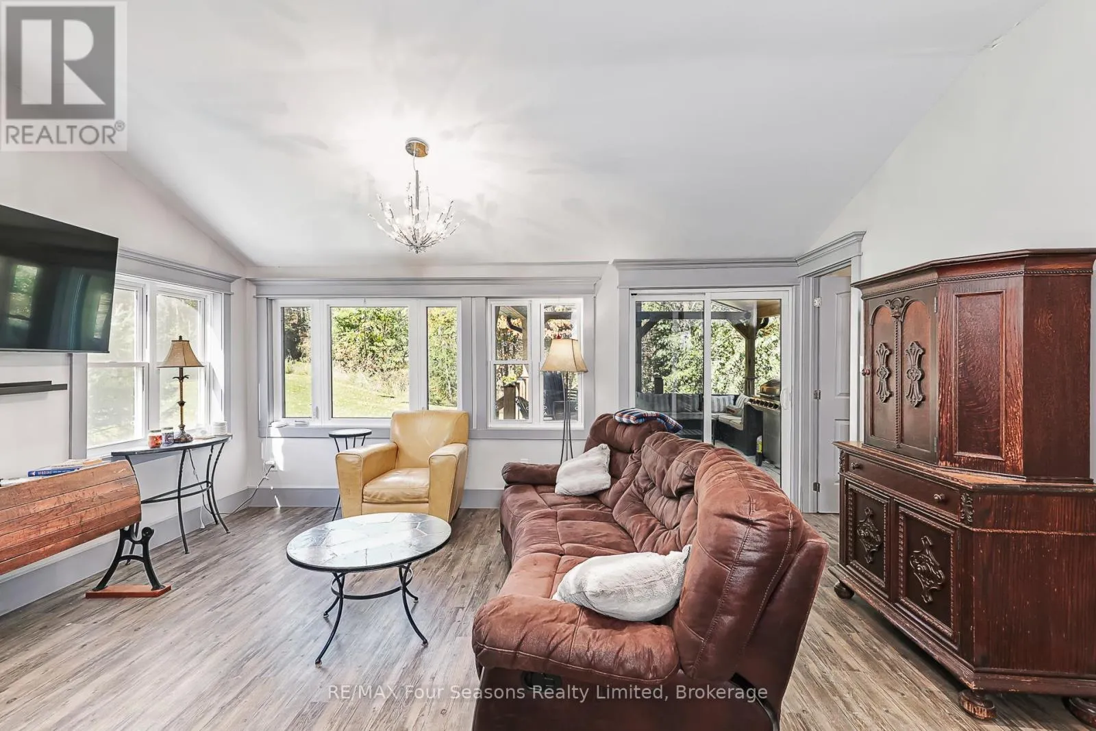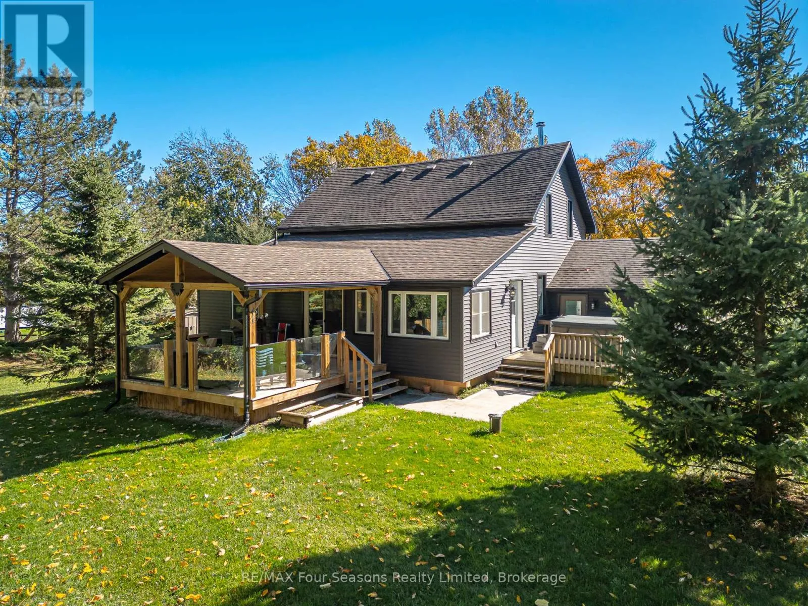 Cross Streets: Grey County Road 7 and Sideroad 19. ** Directions: Grey County Road 7 to Epping, intersection is at Sideroad 19, turn west, 2nd property on right side at sign. Classic country style Beaver Valley home on 1.3 beautifully landscaped acres of land. Full width covered porch with seating area at the front door. Spacious and bright interior main floor with large seating areas and dining room with wood stove. Sliding door walk out to 16'x14' covered back deck with glass railings overlooking ravine, stream and mature trees. Main floor primary suite with 3pc ensuite bath. Upstairs 4 guest bedrooms. House is heated and cooled by Geothermal forced air furnace. Full unfinished basement has plenty of storage and a walk out to ground level greenhouse. Single car attached garage. Ornamental grasses, mature trees and natural wooded surroundings combine to create a private setting. On the hillside above the house is a perfect spot for a guest house or rv / trailer capturing countryside views to Old Baldy. This home is in close proximity to the Bruce Trail, only 8 kms to Kimberley and 11kms to Beaver Valley Ski Club. Meaford Harbour is 15km to the north, as well as many other recreation areas. A peaceful location for comfortable year round country living. (id:27476)