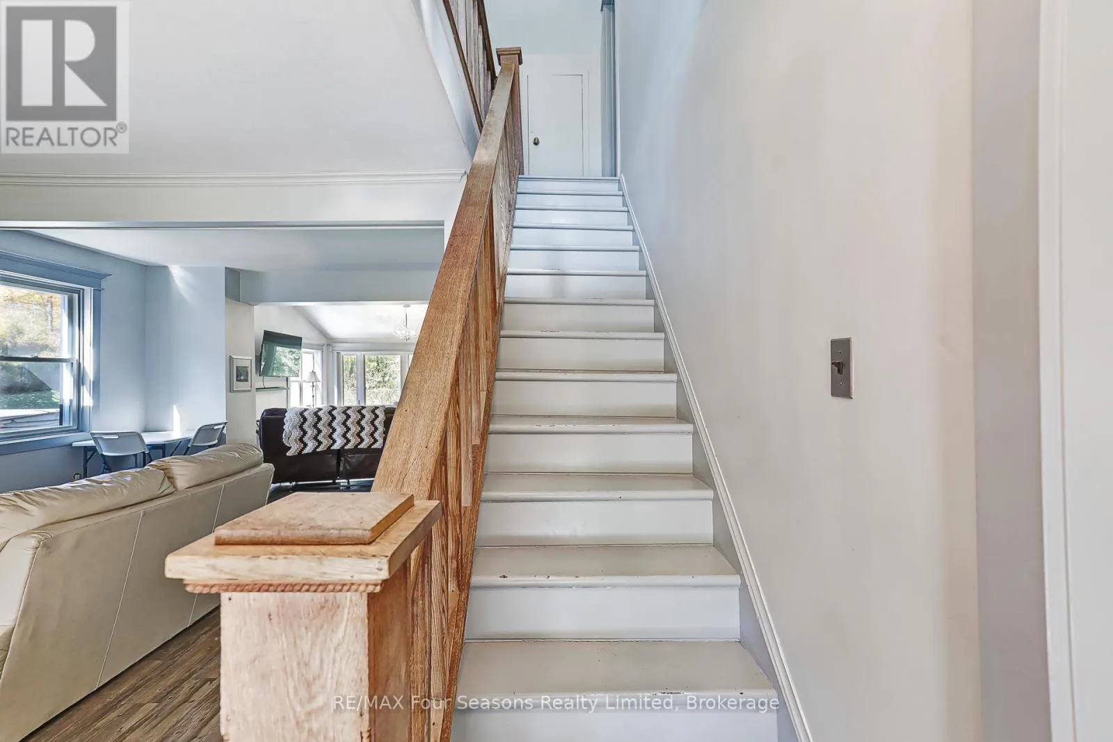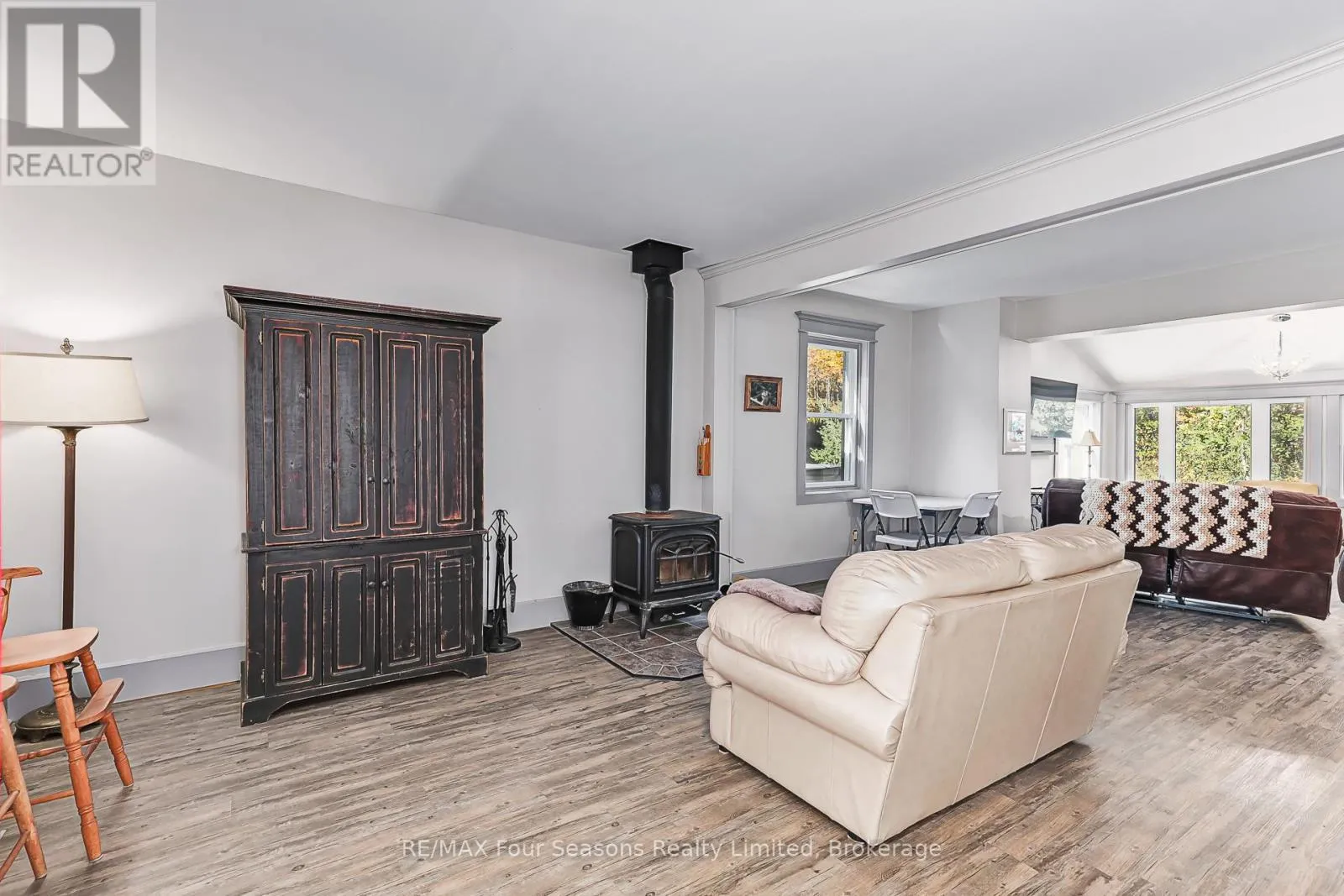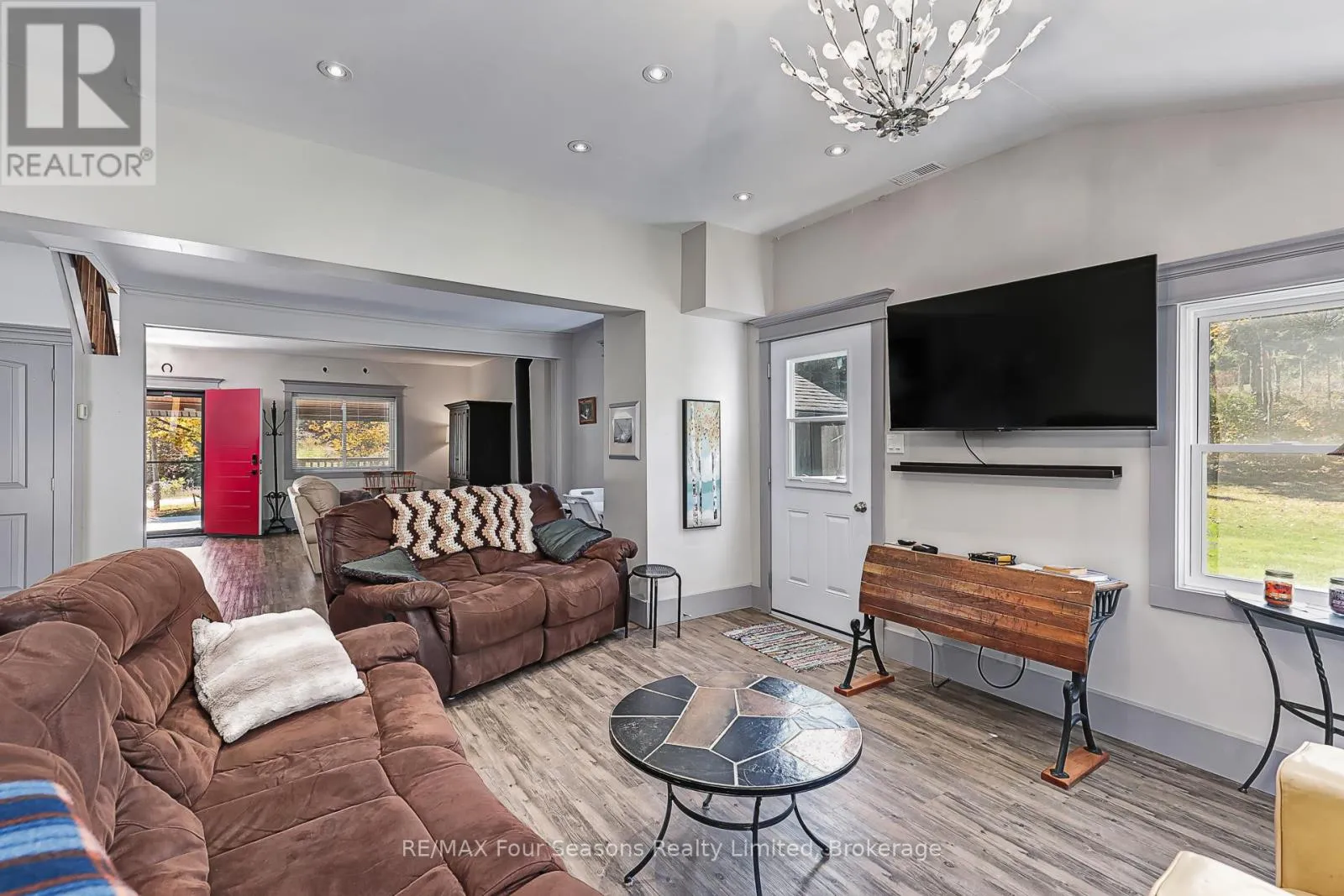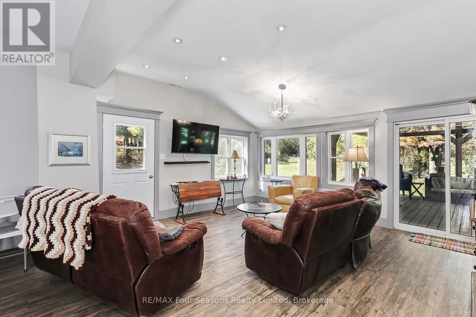 Cross Streets: Grey County Road 7 and Sideroad 19. ** Directions: Grey County Road 7 to Epping, intersection is at Sideroad 19, turn west, 2nd property on right side at sign. Classic country style Beaver Valley home on 1.3 beautifully landscaped acres of land. Full width covered porch with seating area at the front door. Spacious and bright interior main floor with large seating areas and dining room with wood stove. Sliding door walk out to 16'x14' covered back deck with glass railings overlooking ravine, stream and mature trees. Main floor primary suite with 3pc ensuite bath. Upstairs 4 guest bedrooms. House is heated and cooled by Geothermal forced air furnace. Full unfinished basement has plenty of storage and a walk out to ground level greenhouse. Single car attached garage. Ornamental grasses, mature trees and natural wooded surroundings combine to create a private setting. On the hillside above the house is a perfect spot for a guest house or rv / trailer capturing countryside views to Old Baldy. This home is in close proximity to the Bruce Trail, only 8 kms to Kimberley and 11kms to Beaver Valley Ski Club. Meaford Harbour is 15km to the north, as well as many other recreation areas. A peaceful location for comfortable year round country living. (id:27476)