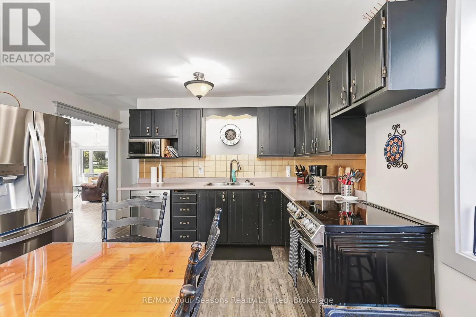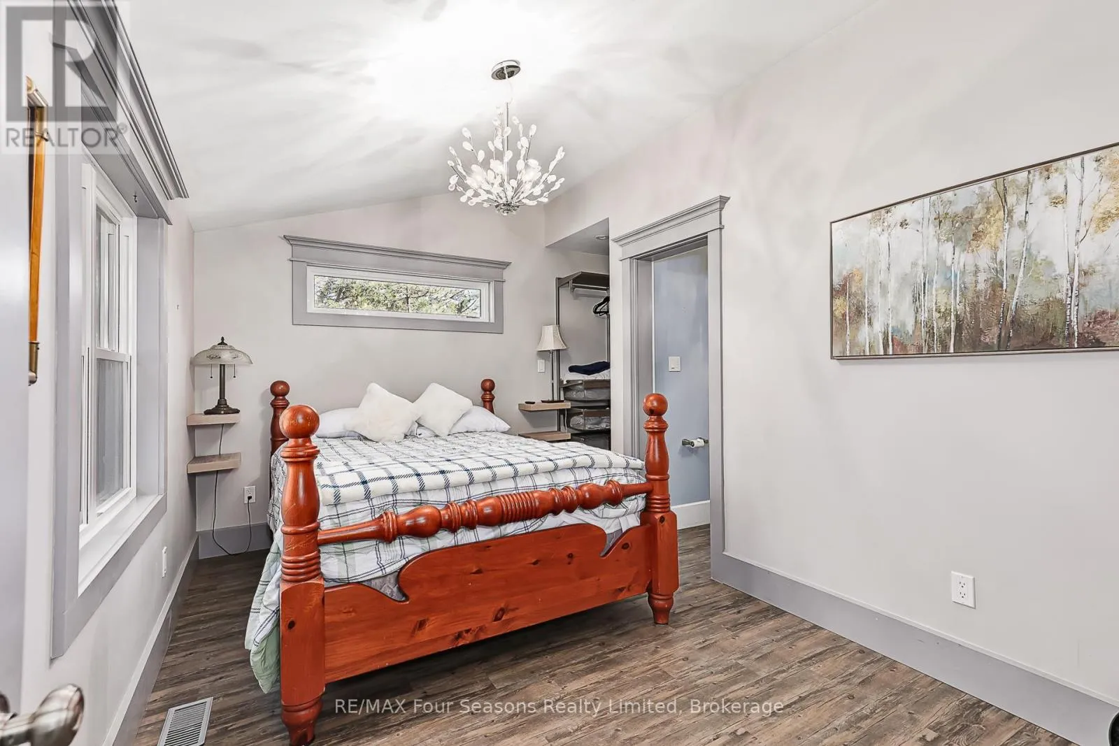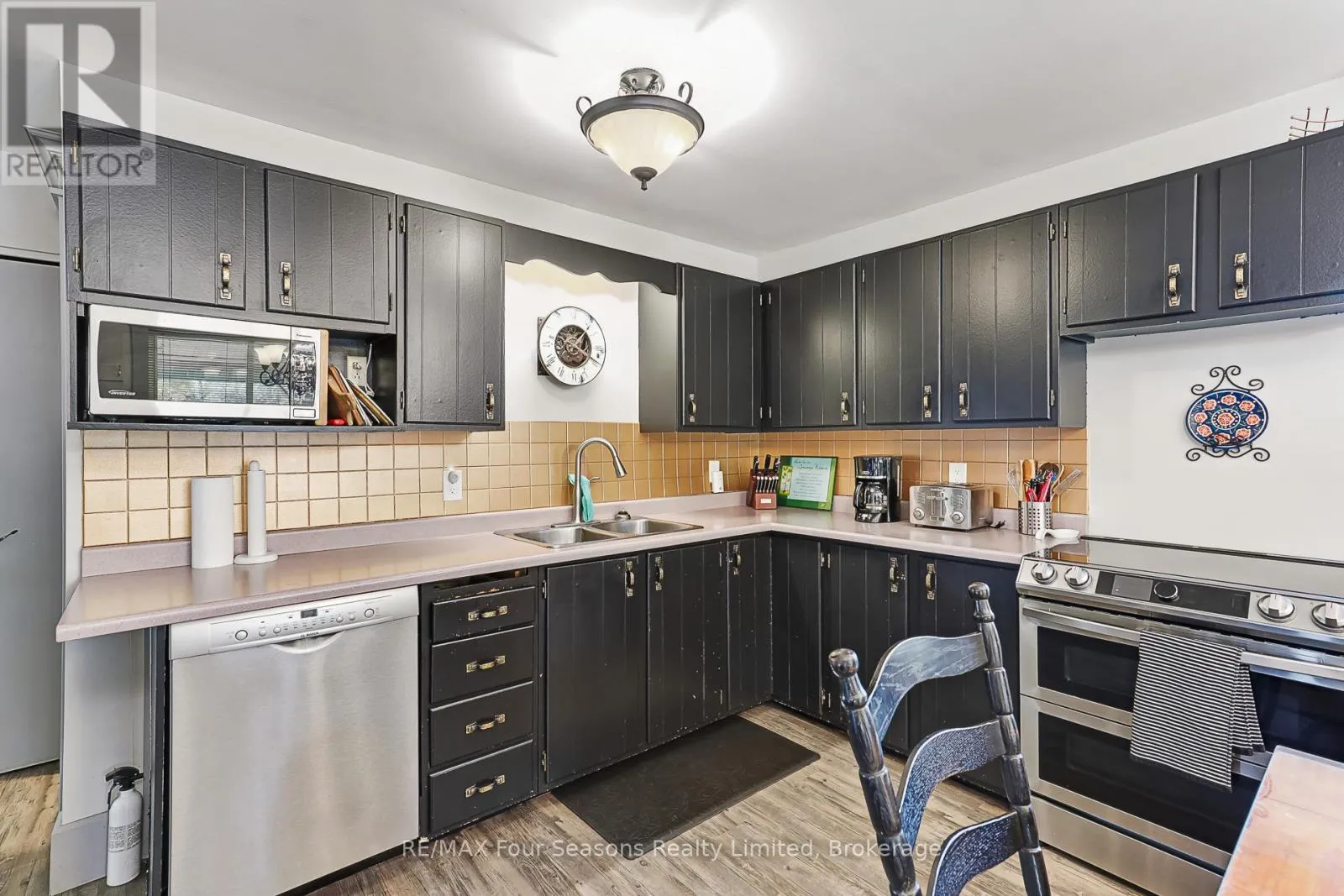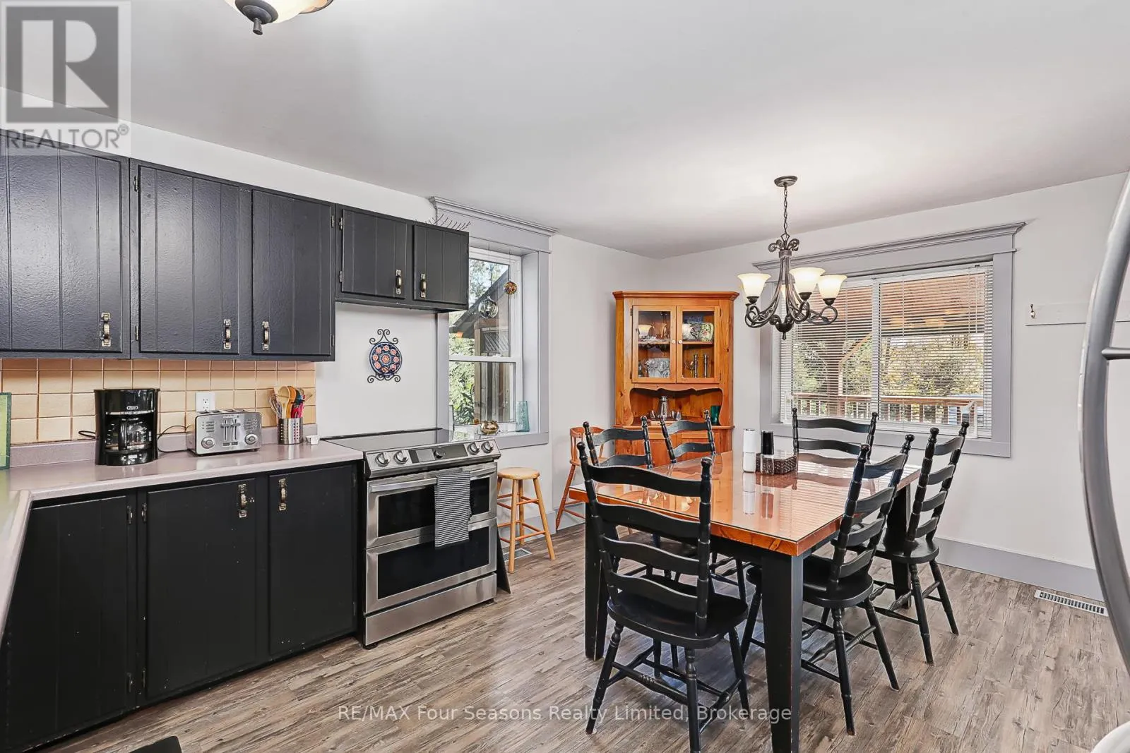 Cross Streets: Grey County Road 7 and Sideroad 19. ** Directions: Grey County Road 7 to Epping, intersection is at Sideroad 19, turn west, 2nd property on right side at sign. Classic country style Beaver Valley home on 1.3 beautifully landscaped acres of land. Full width covered porch with seating area at the front door. Spacious and bright interior main floor with large seating areas and dining room with wood stove. Sliding door walk out to 16'x14' covered back deck with glass railings overlooking ravine, stream and mature trees. Main floor primary suite with 3pc ensuite bath. Upstairs 4 guest bedrooms. House is heated and cooled by Geothermal forced air furnace. Full unfinished basement has plenty of storage and a walk out to ground level greenhouse. Single car attached garage. Ornamental grasses, mature trees and natural wooded surroundings combine to create a private setting. On the hillside above the house is a perfect spot for a guest house or rv / trailer capturing countryside views to Old Baldy. This home is in close proximity to the Bruce Trail, only 8 kms to Kimberley and 11kms to Beaver Valley Ski Club. Meaford Harbour is 15km to the north, as well as many other recreation areas. A peaceful location for comfortable year round country living. (id:27476)