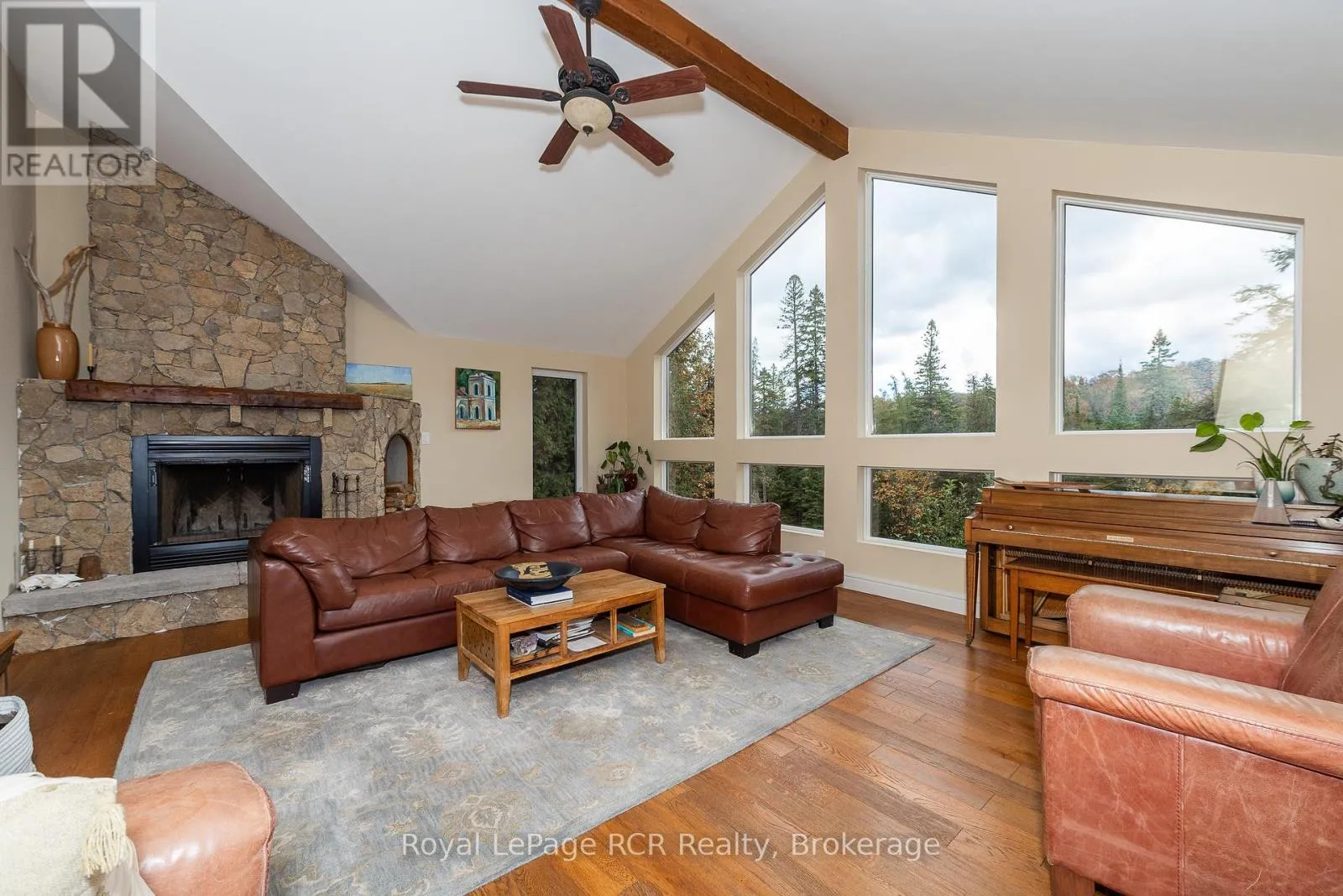 Cross Streets: Rd 160 and 4th Conc B. ** Directions: From HWY 10 go east on Road 160, property is on the south side. Bungalow on 14 acres with 5 bedrooms and 3 bathrooms on a paved road just outside of Flesherton. Situated to take in the amazing property and natural light, the home faces away from the road and overlooks the natural landscape. On the main floor you will find Timber Frame accents, a spacious kitchen and dining room area with vaulted ceilings and walk-out to the deck. The living room features a beautiful view of the trees and spring fed pond with the interior focal point a stone wood-burning fireplace for those cozy days. A primary bedroom with a 3pc ensuite, 2 more bedrooms, a 4pc bathroom and laundry room complete the main floor. On the lower level there is a studio space with a walk-out, a family room with another walk-out, a 2pc bathroom and 2 more bedrooms. Flesherton creek crosses the back of the property and a managed forest agreement keeps the taxes reasonable, as well as efficient heating and cooling with a Geothermal system. Built in 2008 and on the market for the first time! (id:27476)