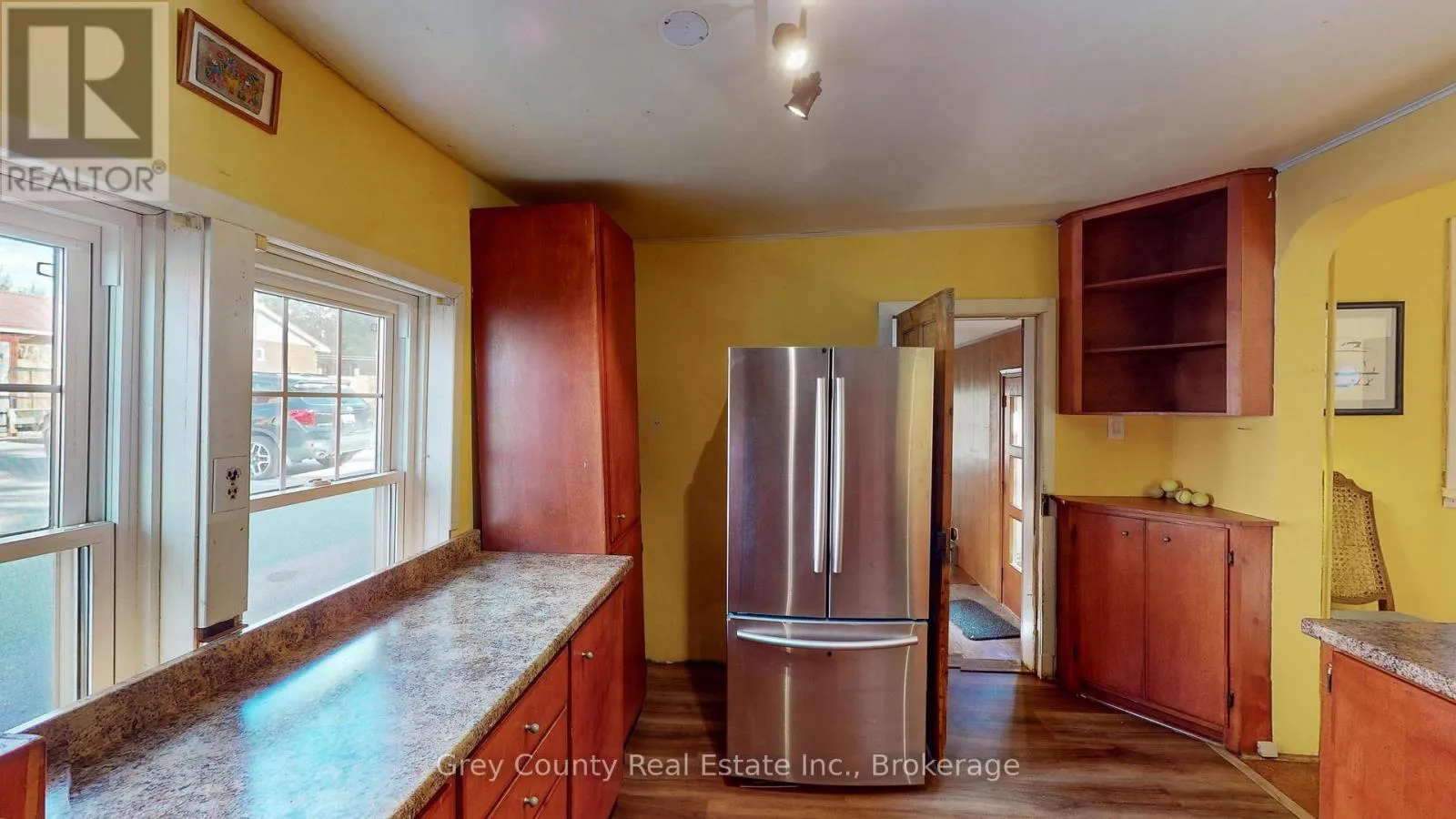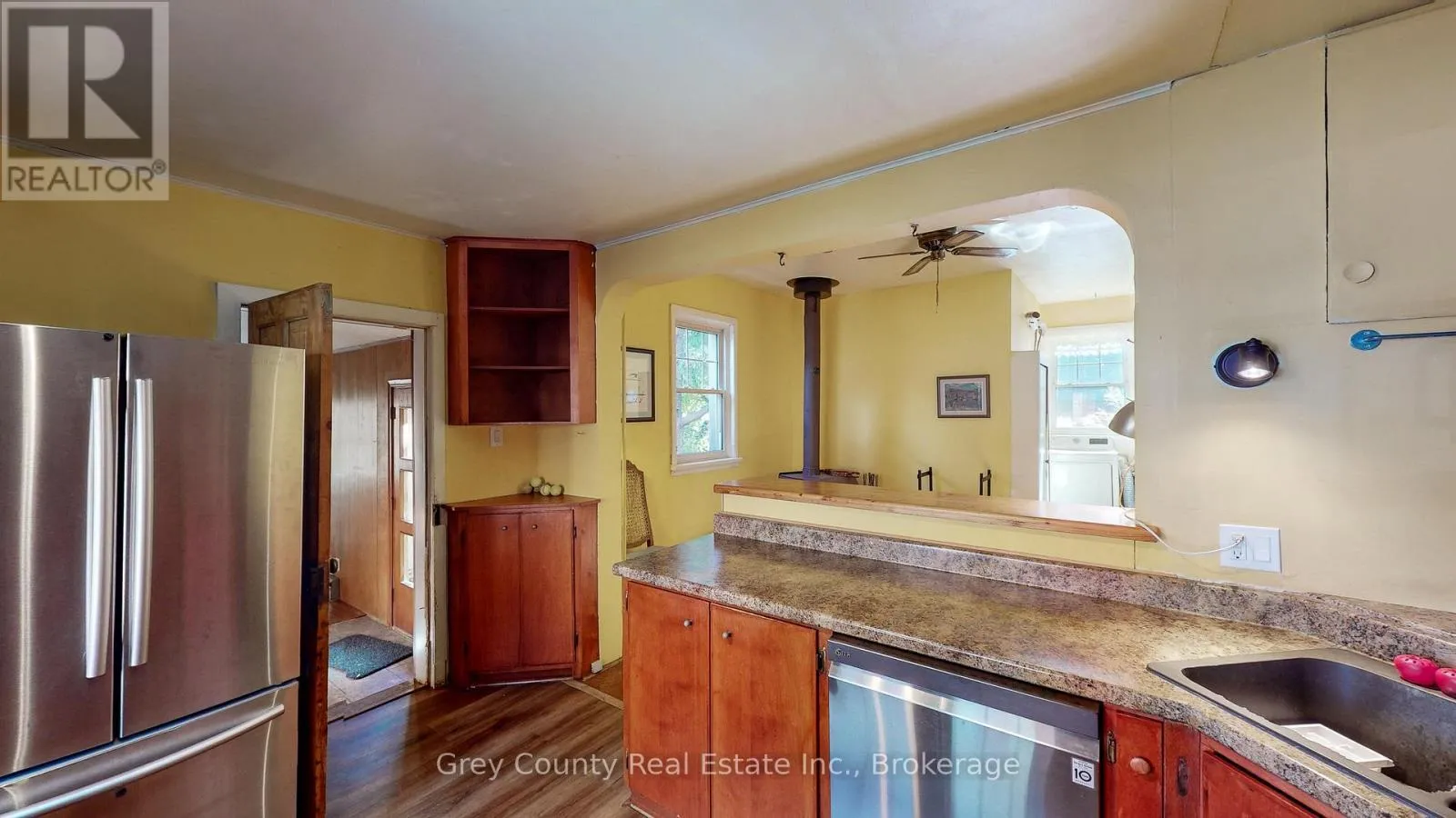 Cross Streets: East on Main St from the lights in Markdale. House on right. ** Directions: From lights in Markdale, east on Main St, Sign on south side. Built in 1875, this home is filled with the timeless charm of its historic roots. Step inside and you're welcomed by an inviting foyer that hints at the character waiting within. To your right, the sunlit dining room feels instantly comforting-ideal for family meals or hosting friends. Original hardwood floors, soaring ceilings, and detailed moldings carry the warmth of the past into every room. The spacious living room is full of potential, whether you're curling up with a book or entertaining a crowd. Built-in bookshelves create a cozy nook for reading or showcasing cherished keepsakes. The kitchen blends old-world charm with modern convenience, offering space for casual dining around an eat-in table, and a traditional woodstove that brings rustic comfort and winter warmth. This updated kitchen is a dream for anyone who loves to cook. A four-piece bath and laundry on the main level add everyday ease. Just off the kitchen, a flexible room-once an office-could become a sun-drenched studio, den, or quiet retreat, thanks to its south-facing windows and views of the backyard. Step outside to a peaceful patio overlooking a lovingly maintained garden with flowering trees, perennials, and your own veggie patch. The charm continues upstairs with a second full bath, and four large bedrooms. The property also includes 27 Main St E., a separate detached building with its own entrance. Formerly a doctor's office, bakery, and bookkeeping service, it's ideal for a home-based business, in-law suite, or income-generating rental. Perfectly located just steps from Markdale's main intersection, you're within walking distance to the new hospital, school, and all downtown conveniences. (id:27476)