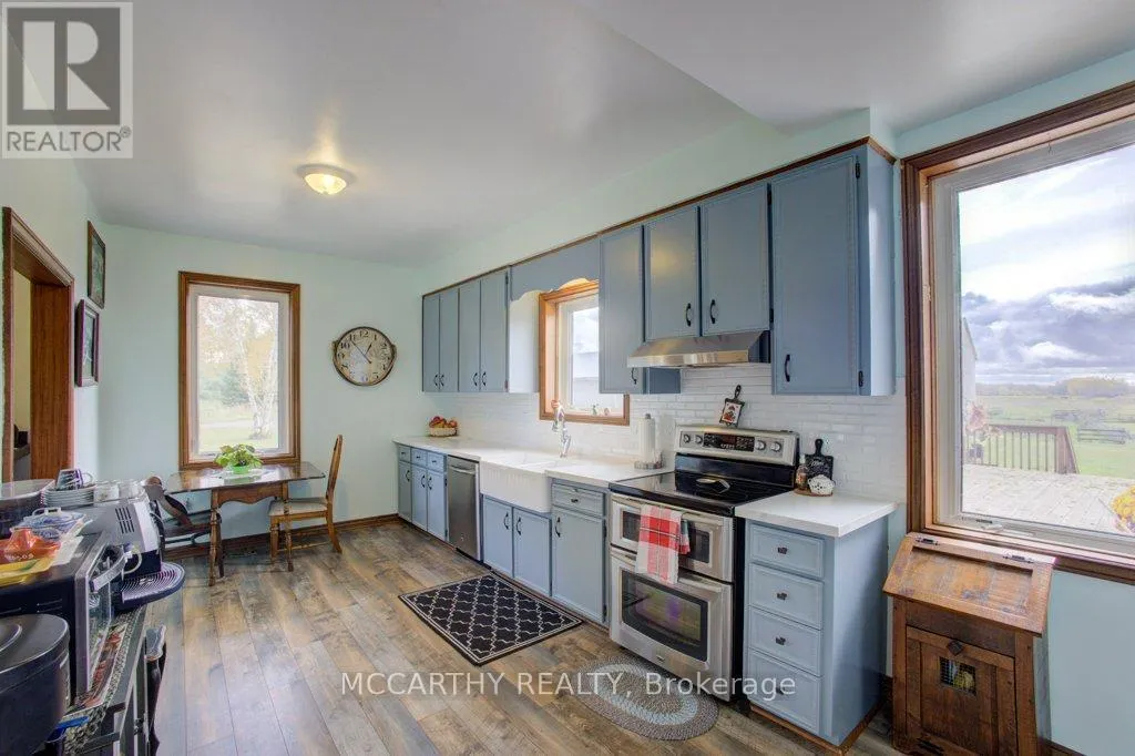 Cross Streets: Durham Rd B and Road 170. ** Directions: Highway 10 north of Dundalk west 170 Sdrd to T and on the left. 133 acre Farm with beautiful Brick 2.5 storey House, Bank Barn and Driving Shed with workshop. Barn is 52 x 60ft, with 30x 36ft add on, Driving Shed 40 x 44 ft with gravel floor and 30 x 40 ft Workshop with concrete floor and insulated. 80 Acres in hay and pasture. Fenced for cattle. Bank barn is set up for Cattle, feeding trough down the middle of the barn. House has Large Primary Bedroom on second Floor, with 9ft high ceilings, broadloom, His and Hers closets with pretty barn door style doors. Second Bedroom is large with lots of natural light from 2 large windows. Windows are updated. 3rd floor is a finished attic, with stairs for easy access, has three skylights for natural lighting . Wood floors and is heated. Use for extra bedroom, rec room , play room, office or storage. Enter the home off a large wrap around deck. Plenty of room to entertain. Walk into the Family room with tile floor, large windows and cozy wood stove. Has hook up for laundry if desire to have main floor laundry. Relax in the large Living room with Stone hearth with wood mantel over a wood fire place. Plenty of room for your oversized couch and chairs. Formal Dining room, has high ceilings and room for table for 14. Tall windows bring in the natural Light. Kitchen has updated corian countertops, farmhouse sink with window overlooking the expansive deck. Plenty of room for Family dinners and entertaining. This farm is waiting for its next family to enjoy the peaceful location. Pond and beautiful gardens. Pretty lawns for running and playing. Property is conveniently located beside an unopened road allowance and goes all the way back to have a frontage on another municipal road. So many opportunities for a Farmer, Hobby Farm, country Homestead. Come and see this beautiful property before it is gone. (id:27476)