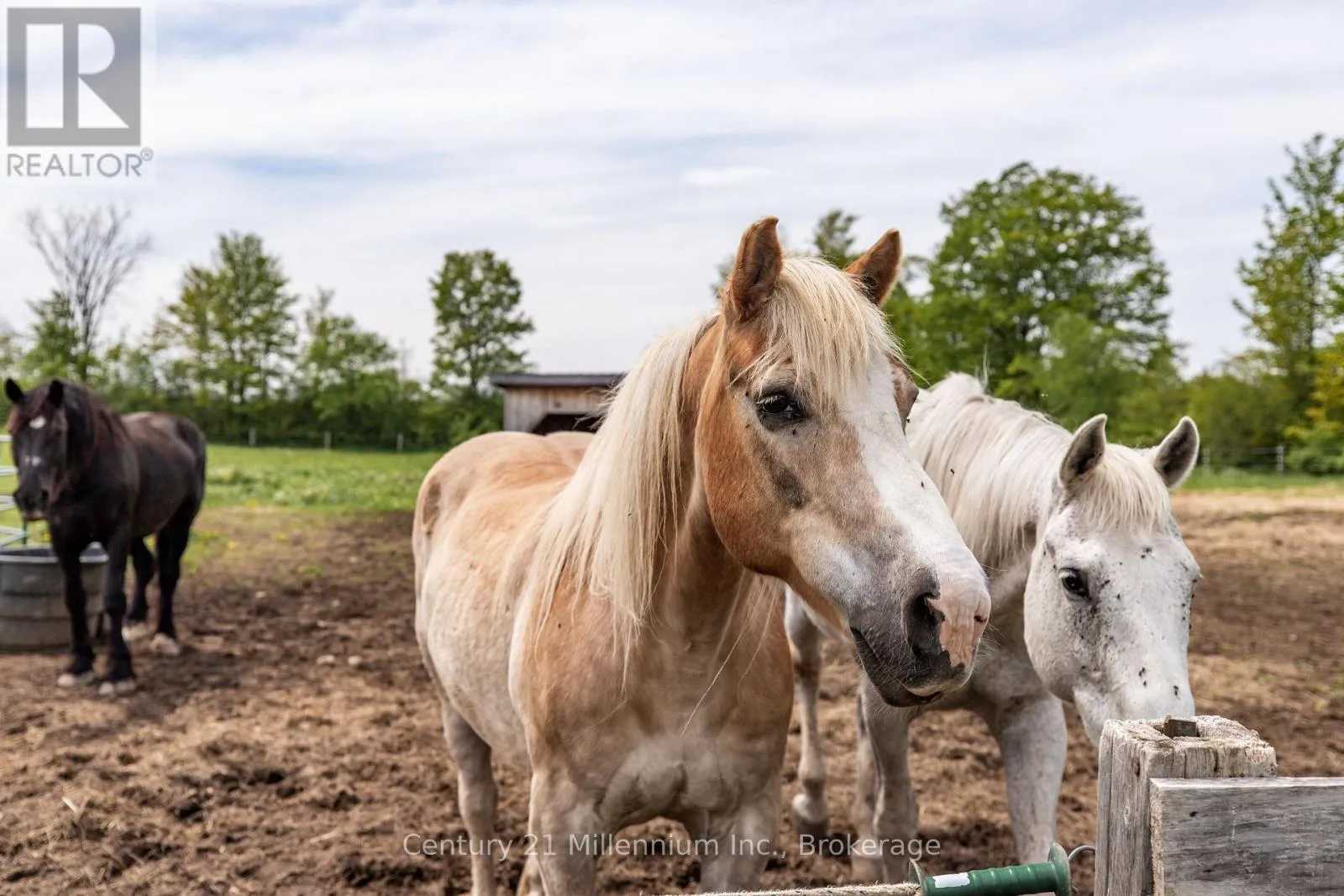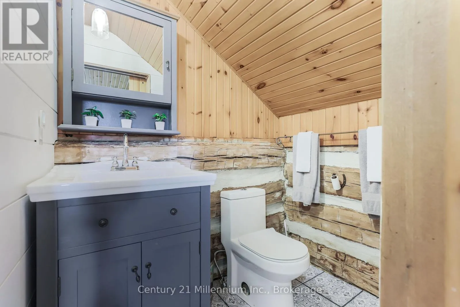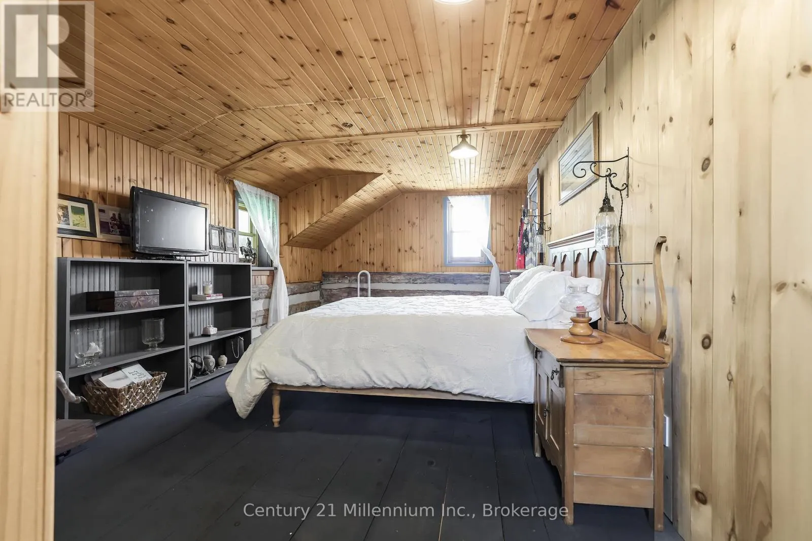 Cross Streets: Artemesia Euphrasia Townline & Grey Rd 12. ** Directions: From Markdale North/East on Grey Rd 12, Turn North on East Back Line(will turn into Artemesia Euphrasia Townline)Property is located on the right side. Set on 46 acres along the clean, cool waters of the Rocky Saugeen River, this log farmhouse is one of the last remaining century farms in Grey Highlands . Originally built in the 1880s and expanded in the 1970s, it combines historic features with modern upgrades. The main level of the home features an updated kitchen with a new garden door that brings in natural light. Upstairs, the primary bedroom offers wide plank floors, a walk-in closet, a 2-piece bathroom and could be converted back into 2 bedrooms. The home also includes a den that could be used as an office or guest room, and a modern laundry area with a new washer and dryer. Updates include a steel roof (2021), a 200-amp electrical panel, a generator plug, and a 2022heat/cooling pump with a backup electric furnace. A wood insert stove adds extra heat during the winter. The land includes approximately 25 workable acres currently seeded in regenerative hay crops. Approximately 15 acres are securely fenced and ready for hobby farming or equestrian pursuits. There are five paddocks with two electric outlets and one no-freeze hydrant for easy winter care. Original fence rows and walking trails lead to the Rocky Saugeen river. Outbuildings include a 60' x 88' board and batten barn built in 2020 with hydro and water, and a 30' x 50' detached garage/shop, also serviced with hydro and water. Additional structures include a chicken coop, woodshed, and a small animal shelter cat condo. Located just minutes from Markdale and a 35-minute drive to Owen Sound, this home places you in the heart of four-season recreation with skiing, hiking, fishing, paddling, snowmobiling, and more surrounded by the natural beauty of waterfalls, trails, and rivers. (id:27476)