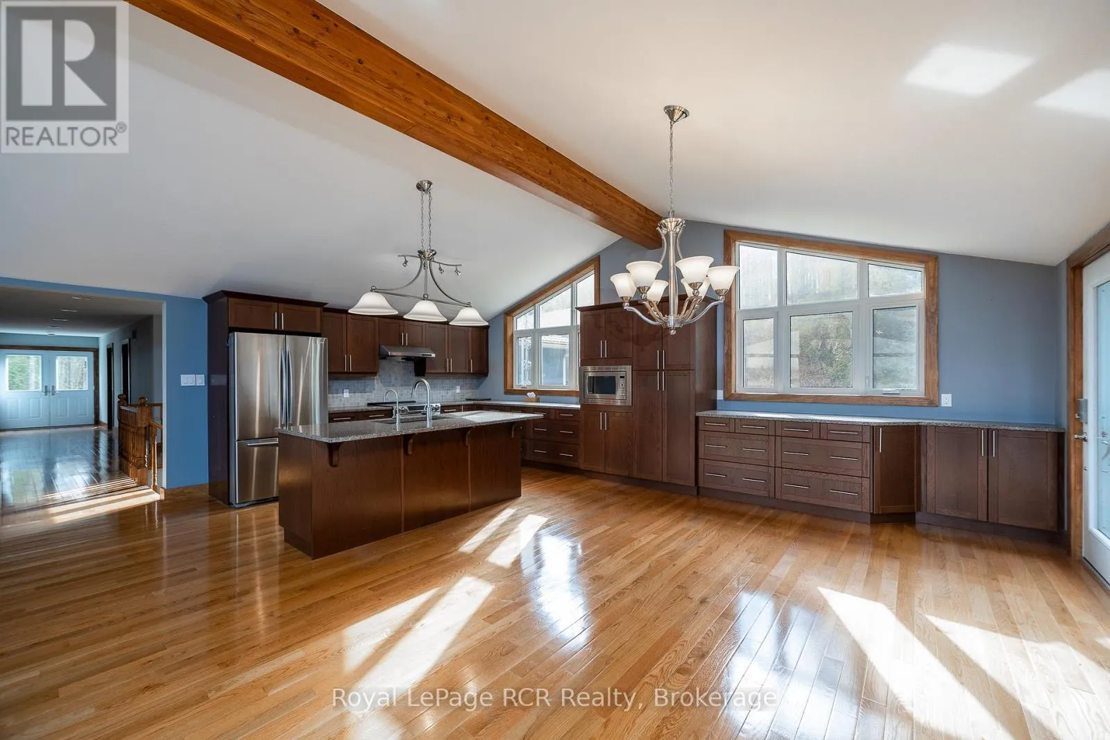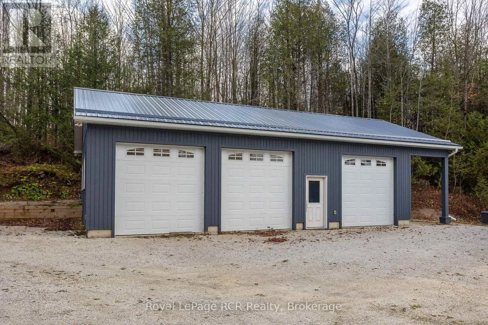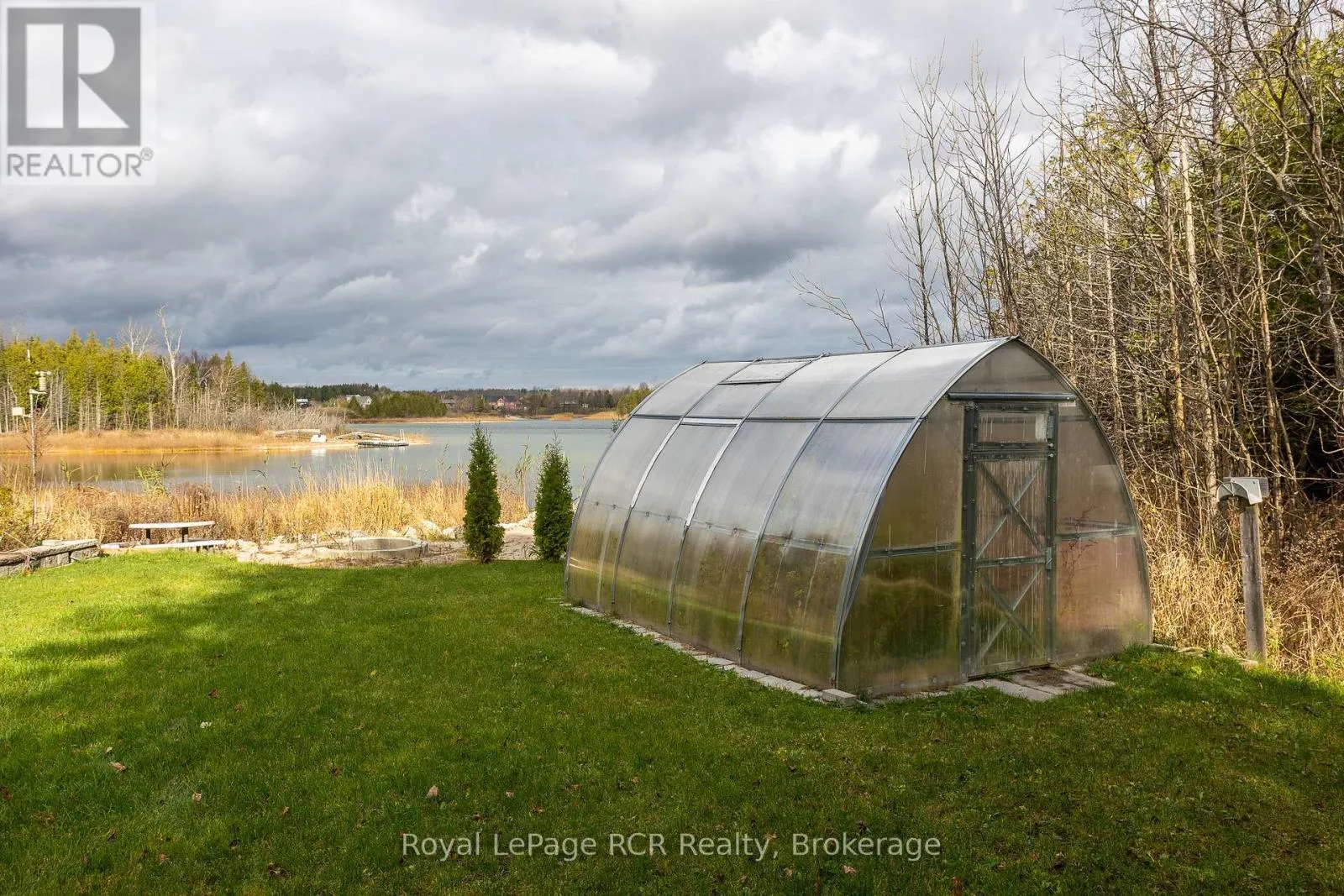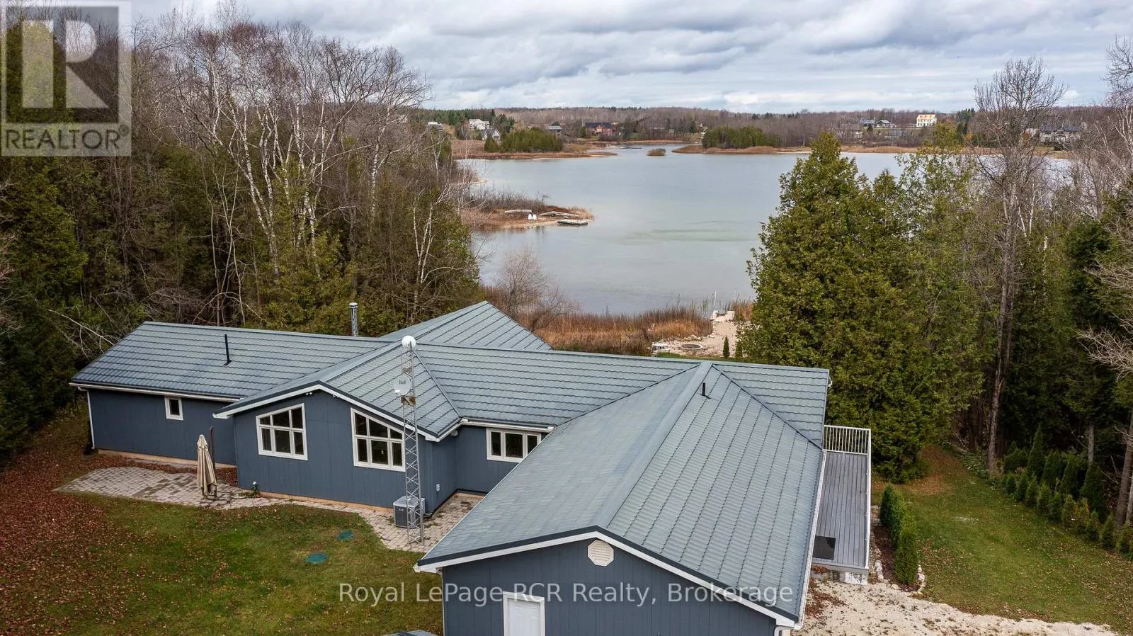 Cross Streets: Lakeview Rd off of Rd 63. ** Directions: Lakeview Road off of Road 63. Brewster's Lake - over 200' waterfront with a bungalow, shop and garage on a 3.2 acre hardwood lot. Lake views from nearly every room in the home. Spacious rooms throughout the 2,500 square foot main level including open concept kitchen, dining and living areas with vaulted ceilings and a wood-burning fireplace. The walkout basement is fully finished with massive family room, office or 5th bedroom with ensuite; walkout to hot tub, patio and lakeside. SHOP 30x52 with in-floor heat, spray foam insulation, Trusscore interior, 3 roll up doors; detached single garage and attached double garage with in-floor heat. On demand hot water, generator back up, metal roof, new windows (2018), central air, water system, greenhouse, hot tub and more. The private waterfront boasts a sandy beach, dock and firepit. Four season living in a four season playground 20 minutes to Collingwood and Blue Mountain, 10 minutes to Devils Glen Country Club (private) and minutes away from year-round trails and recreational activities. Includes part ownership of additional waterfront lot. (id:27476)