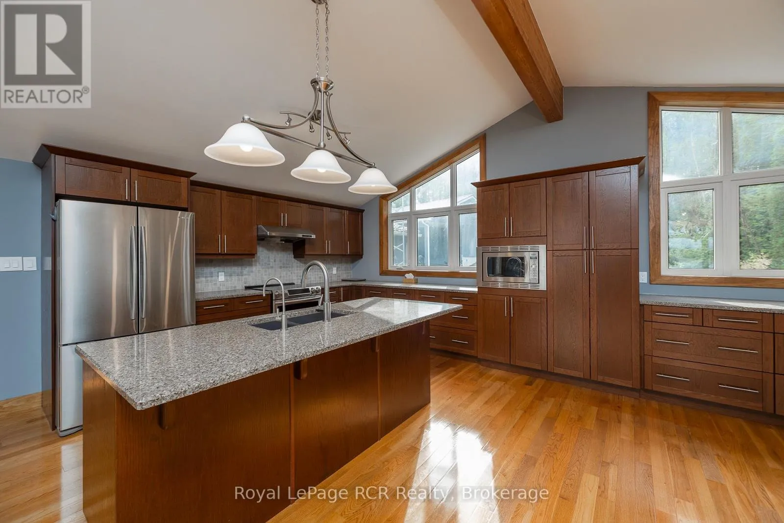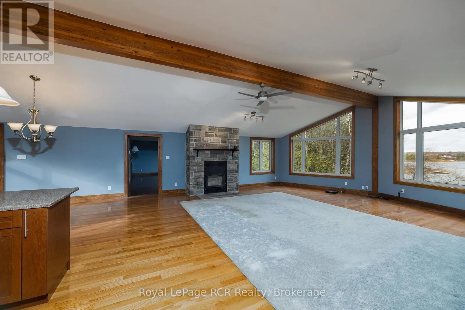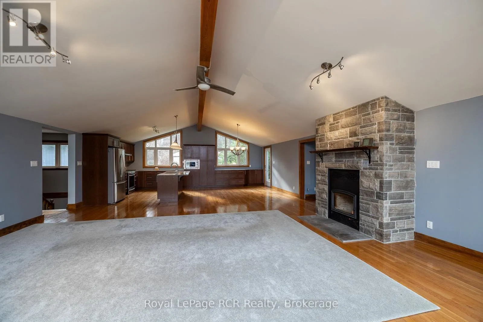Cross Streets: Lakeview Rd off of Rd 63. ** Directions: Lakeview Road off of Road 63. Brewster's Lake - over 200' waterfront with a bungalow, shop and garage on a 3.2 acre hardwood lot. Lake views from nearly every room in the home. Spacious rooms throughout the 2,500 square foot main level including open concept kitchen, dining and living areas with vaulted ceilings and a wood-burning fireplace. The walkout basement is fully finished with massive family room, office or 5th bedroom with ensuite; walkout to hot tub, patio and lakeside. SHOP 30x52 with in-floor heat, spray foam insulation, Trusscore interior, 3 roll up doors; detached single garage and attached double garage with in-floor heat. On demand hot water, generator back up, metal roof, new windows (2018), central air, water system, greenhouse, hot tub and more. The private waterfront boasts a sandy beach, dock and firepit. Four season living in a four season playground 20 minutes to Collingwood and Blue Mountain, 10 minutes to Devils Glen Country Club (private) and minutes away from year-round trails and recreational activities. Includes part ownership of additional waterfront lot. (id:27476)