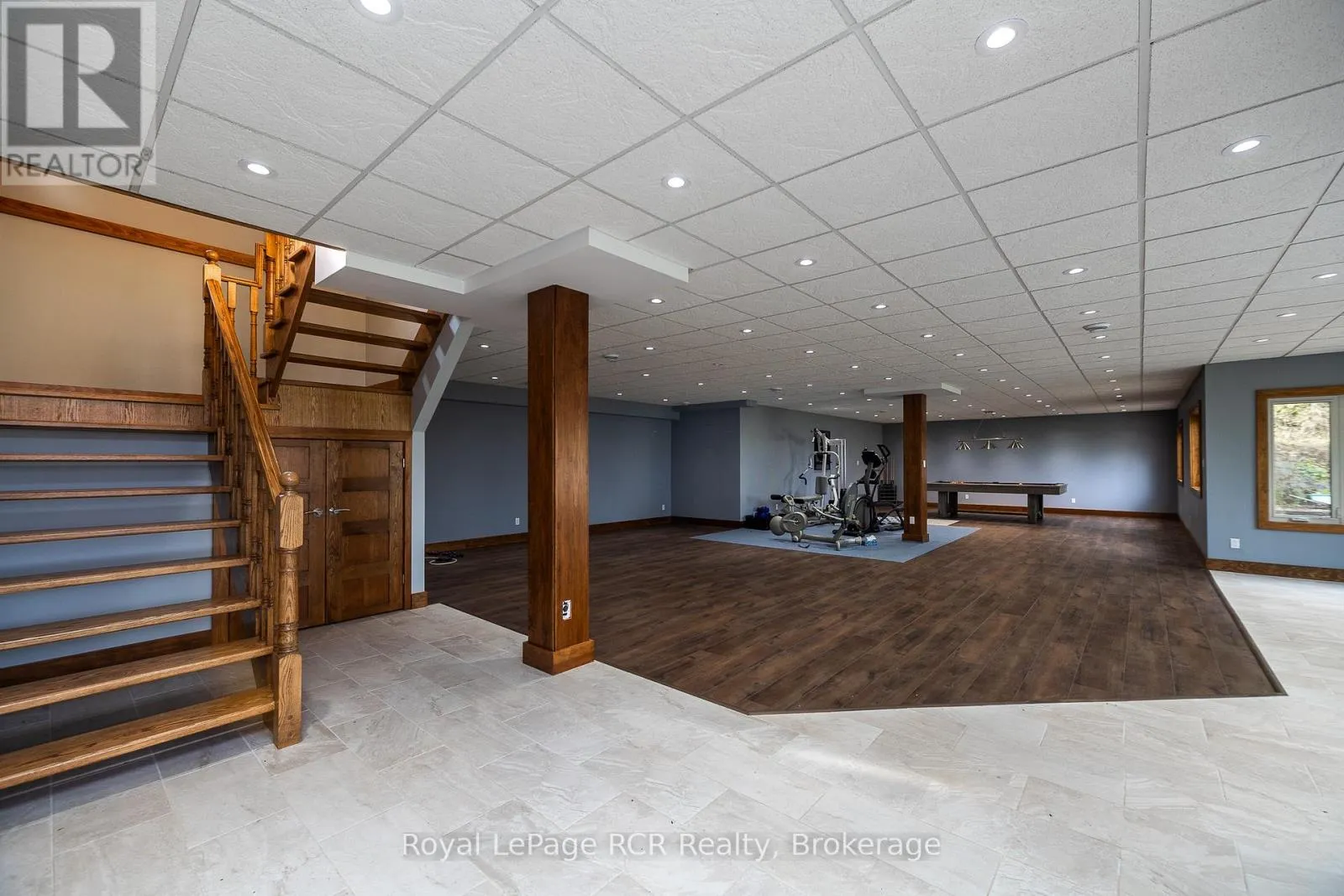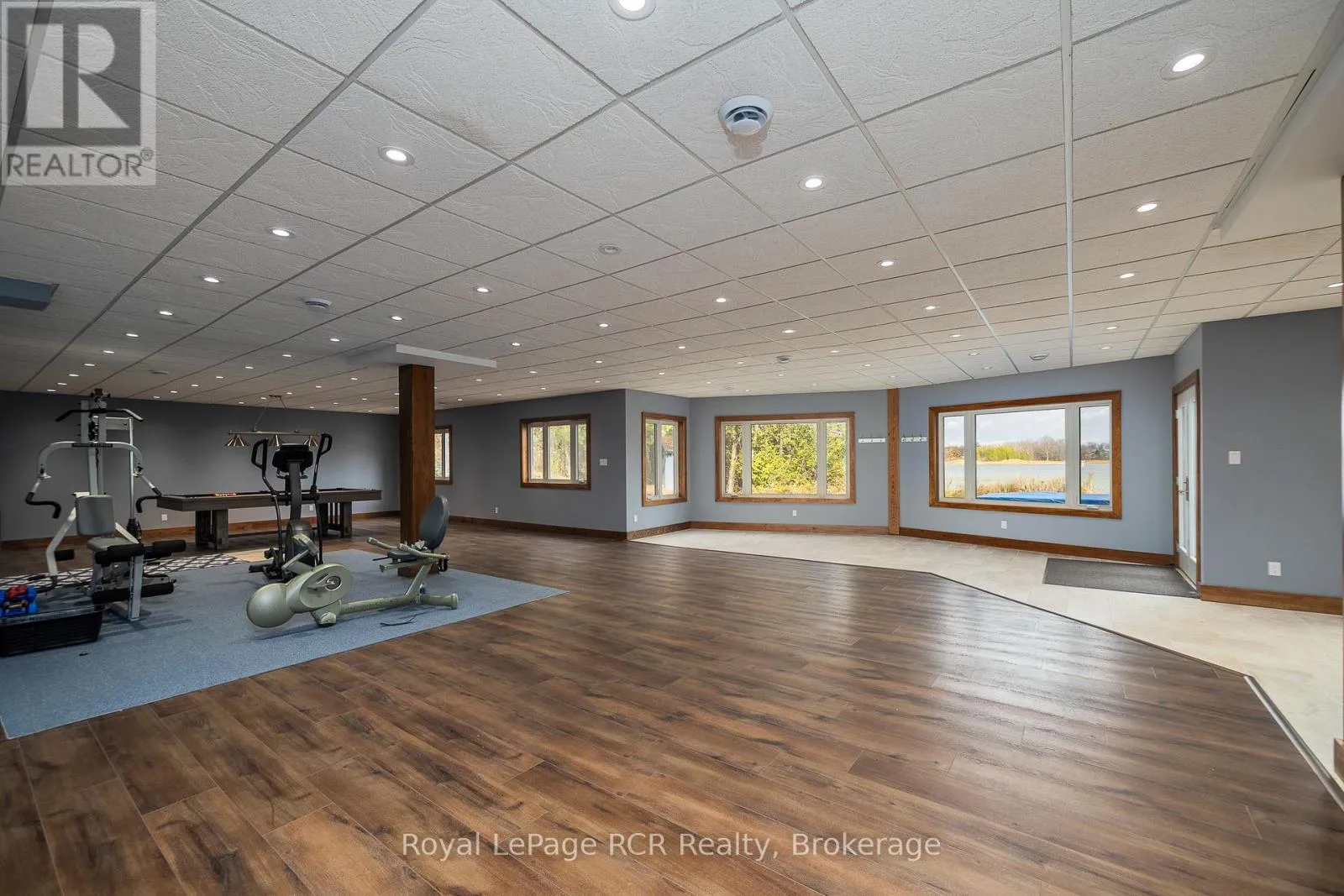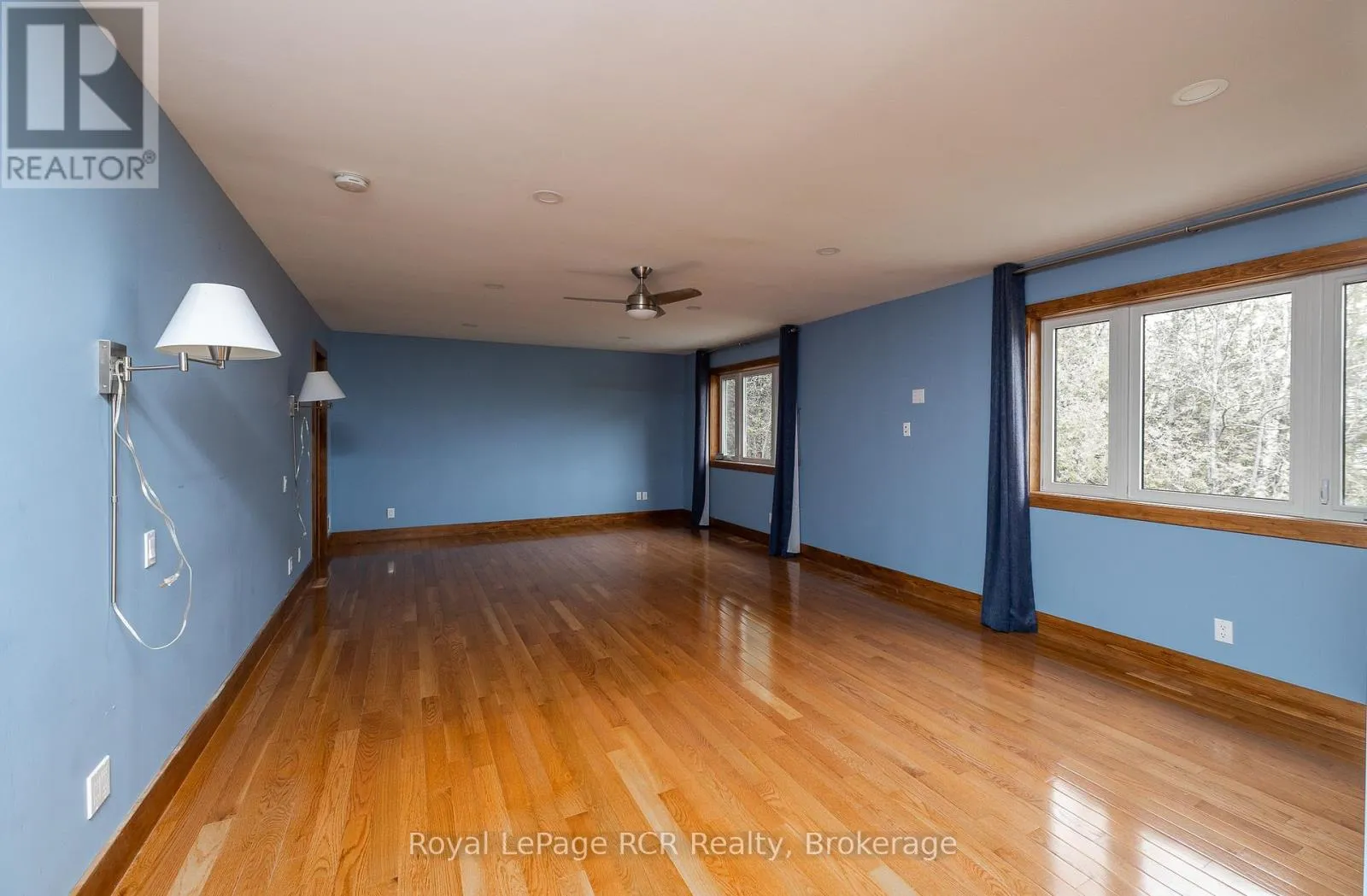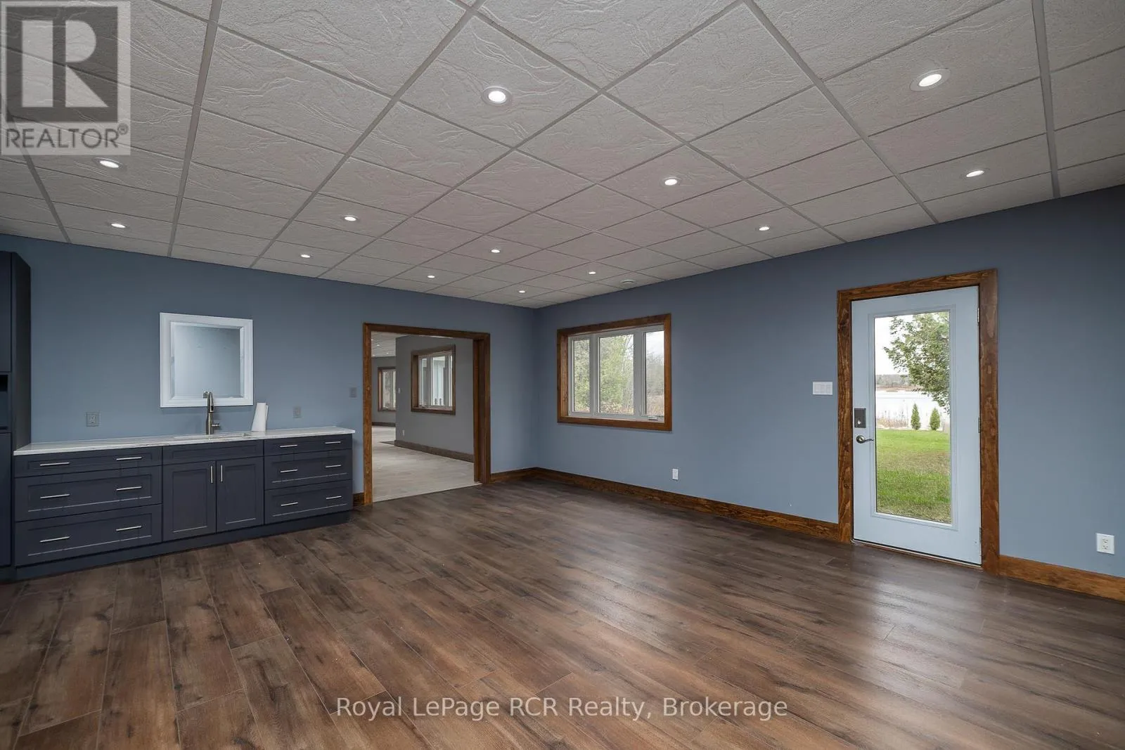 Cross Streets: Lakeview Rd off of Rd 63. ** Directions: Lakeview Road off of Road 63. Brewster's Lake - over 200' waterfront with a bungalow, shop and garage on a 3.2 acre hardwood lot. Lake views from nearly every room in the home. Spacious rooms throughout the 2,500 square foot main level including open concept kitchen, dining and living areas with vaulted ceilings and a wood-burning fireplace. The walkout basement is fully finished with massive family room, office or 5th bedroom with ensuite; walkout to hot tub, patio and lakeside. SHOP 30x52 with in-floor heat, spray foam insulation, Trusscore interior, 3 roll up doors; detached single garage and attached double garage with in-floor heat. On demand hot water, generator back up, metal roof, new windows (2018), central air, water system, greenhouse, hot tub and more. The private waterfront boasts a sandy beach, dock and firepit. Four season living in a four season playground 20 minutes to Collingwood and Blue Mountain, 10 minutes to Devils Glen Country Club (private) and minutes away from year-round trails and recreational activities. Includes part ownership of additional waterfront lot. (id:27476)