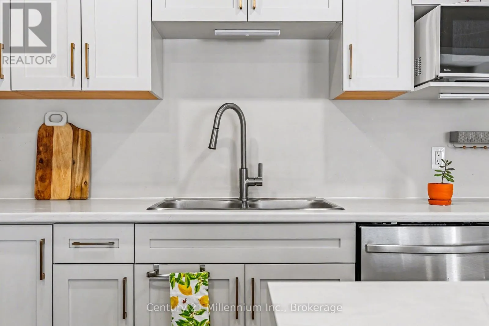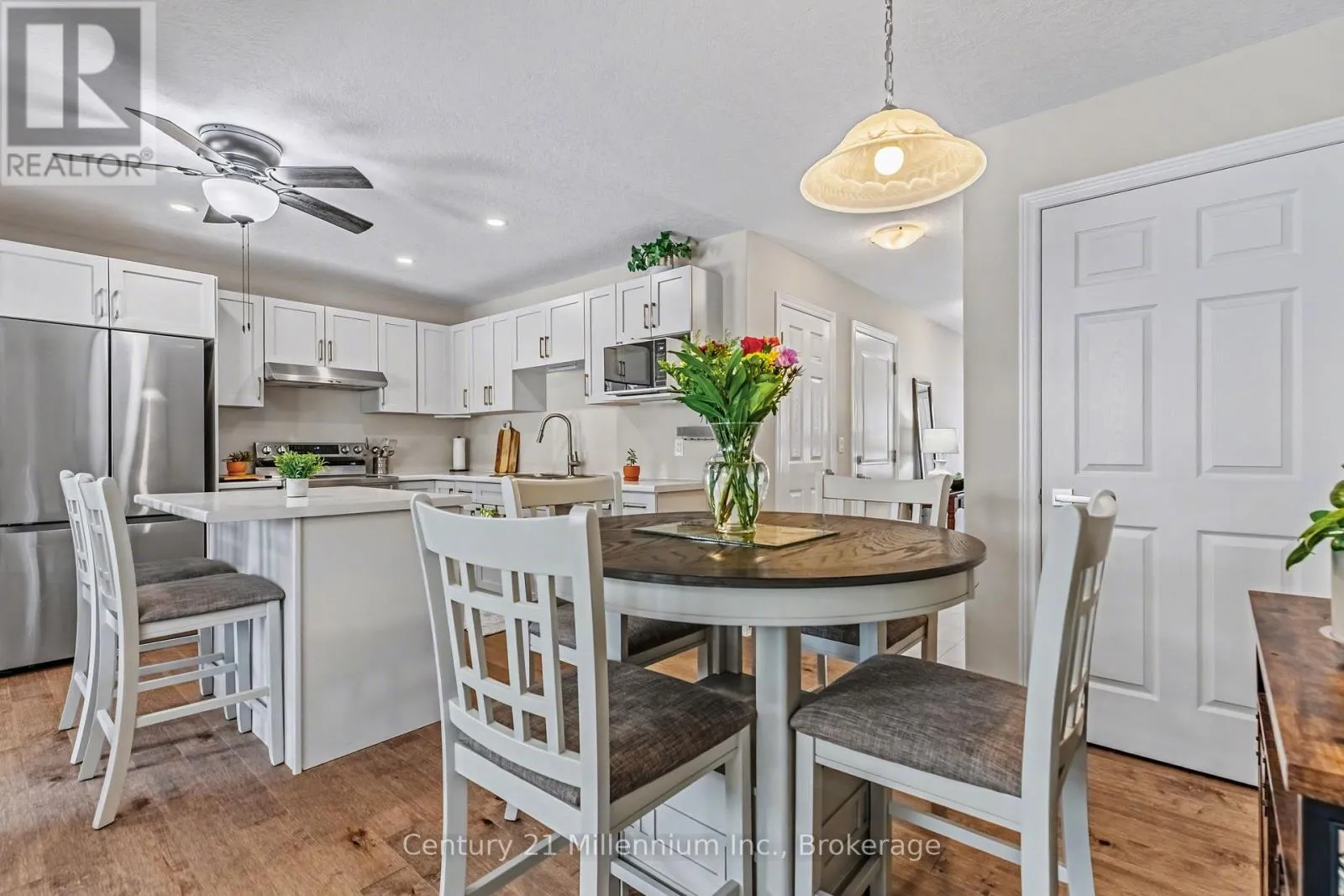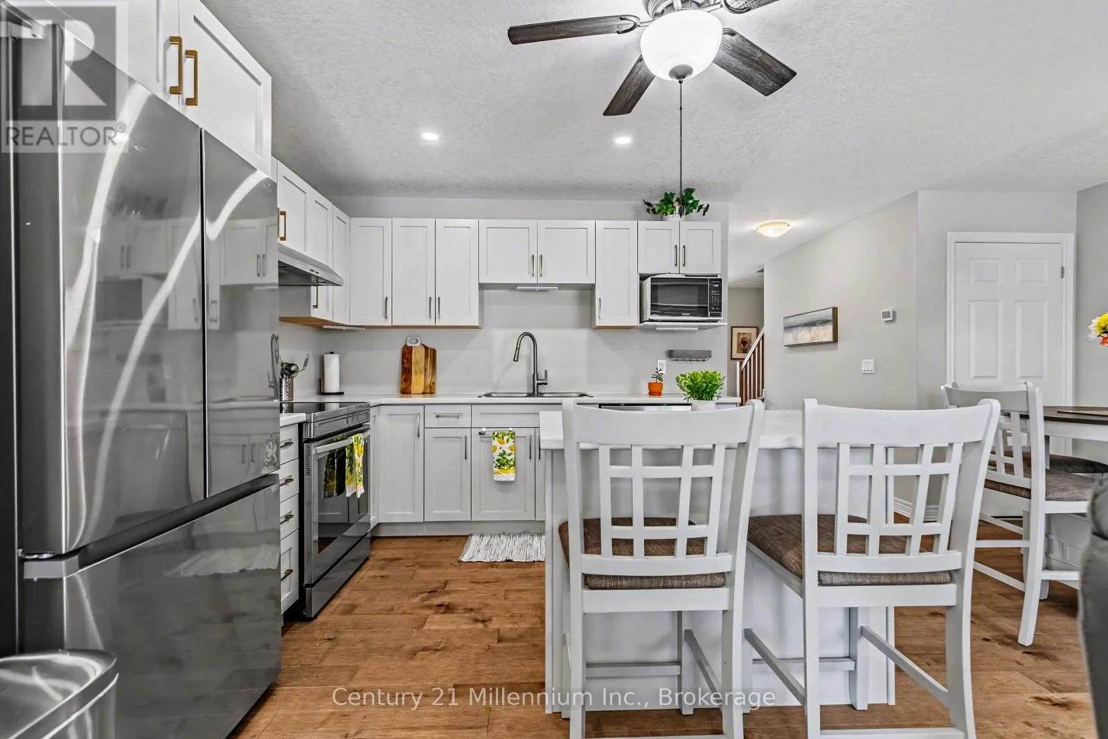 Cross Streets: Mullin St & Margaret Elizabeth Ave. ** Directions: From the main intersection in Markdale, head north on Hwy 10. Turn right onto Fairview Heights, then right onto Margaret Elizabeth Ave. Follow the curve, property is on the southeast side of Mullin St. Welcome home to this beautifully upgraded freehold townhouse in the heart of Markdale. This thoughtfully designed 3-bedroom, 2.5-bath home offers modern finishes and an ideal setting within a growing, family-friendly community.Step inside to an open-concept main floor where the contemporary kitchen features crisp white soft-close cabinetry accented with elegant gold-tone hardware, flowing seamlessly into the dining area and great room. Upgraded engineered hardwood flooring adds warmth and style throughout the main living space, complemented by a convenient powder room and interior access to the 1.5-car garage with remote door entry. Walk out from the great room to the 12' x 12' back deck with sleek modern black railings, creating a perfect extension of your living space for entertaining or relaxing outdoors.Upstairs, you'll find three bedrooms, including a spacious primary bedroom complete with a walk-in closet and a generous 3-piece ensuite featuring a walk-in shower with glass doors. A full 4-piece bathroom serves the additional bedrooms, offering comfort and functionality for family or guests.The unfinished basement provides flexible space for future development, storage, or customization to suit your needs. Outside, the fully fenced backyard with gated access sits on a deep, beautifully landscaped lot, offering more outdoor space than the average townhome. Ideally located just steps from the Markdale Golf & Curling Club, this home is also close to everything the community has to offer. Markdale continues to thrive as a vibrant hub in central Grey County, with shops, parks, a new hospital, new elementary school, arena, library, restaurants, and everyday amenities nearby. Outdoor enthusiasts will appreciate easy access to the Beaver Valley region, featuring hiking trails, waterfalls, fishing, and nearby skiing at Blue Mountain and Beaver Valley Ski Club. (id:27476)
