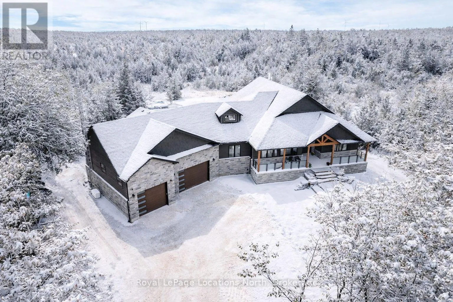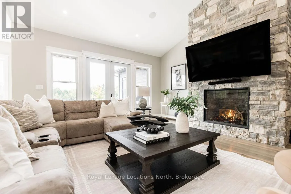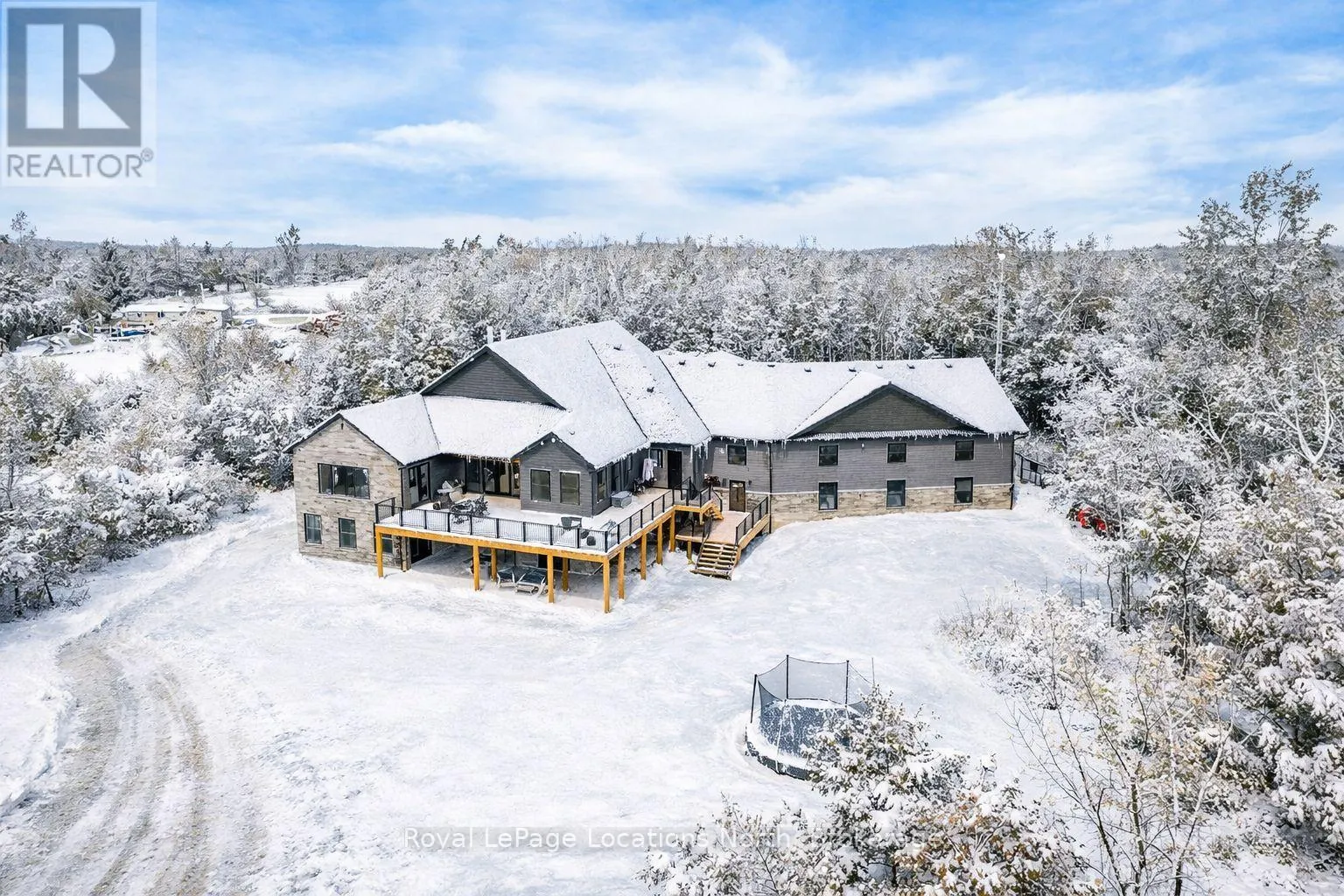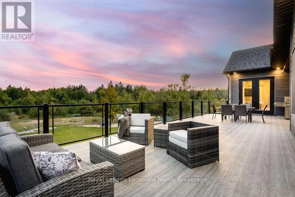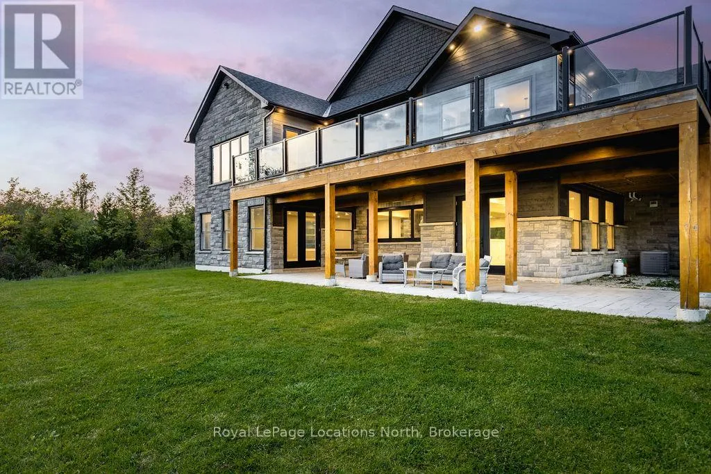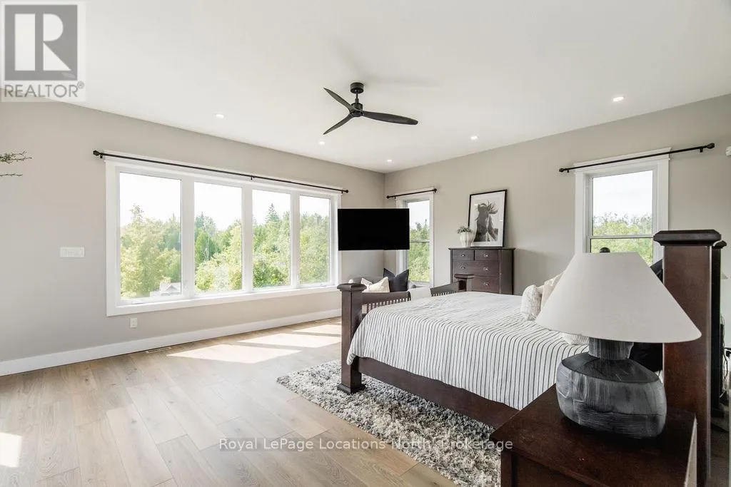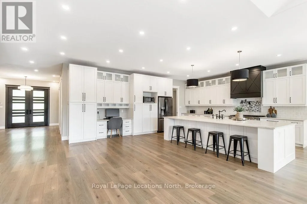 Cross Streets: Road 63 and 8th Concession B. ** Directions: Road 63 to 8th Concession B. Welcome to a truly rare private estate set on 92 acres of pristine countryside with kilometres of private trails, mature forest, and an operational sugar shack built from on-site harvested timber with 300 maple taps. This 8,000+ total sq ft custom-built luxury home offers potential for 7-8 bedrooms plus an in-law suite, ideal for a multi-generational family compound, luxury retreat, or estate property.Designed for comfort and efficiency, the home features in-floor radiant heating throughout, two furnaces, and an oversized 3-car garage with inside entry to a spacious mudroom, mezzanine storage, and workshop area. The grand open-concept living space showcases vaulted ceilings, wide-plank flooring, pot lights, and large custom windows overlooking the property.The custom kitchen features a commercial-grade 46" Kucht gas range with 8 burners, oversized island, quartz countertops, custom hood, designer pendant lighting, butler's pantry, large laundry/pantry room, and built-in desk workspace. The home offers 3+2 bedrooms and 5 full plus 2 half bathrooms, all finished with quartz counters, custom vanities, tile surrounds, and designer lighting. A formal office with French doors supports remote work with strong high-speed internet.The primary suite includes its own heating zone, walk-in closet, and spa-inspired ensuite with floating tub, glass shower, and double vanity. The lower level offers 9-ft ceilings, a bar with folding window for indoor-outdoor entertaining, double-sided stone fireplace, wired theatre room, games room, gym with walkout, and a separate garage entrance with future locker or mudroom potential. Integrated sound system throughout the home, deck, and gym.Outside, enjoy a covered front porch with glass railings, armour stone steps, gardens, vegetable beds, and a cleared area for campouts or future use. The 3,000 sq ft heated shop features radiant floors, 16-ft ceilings, its own propane tank, and oversized garage doors. (id:27476)