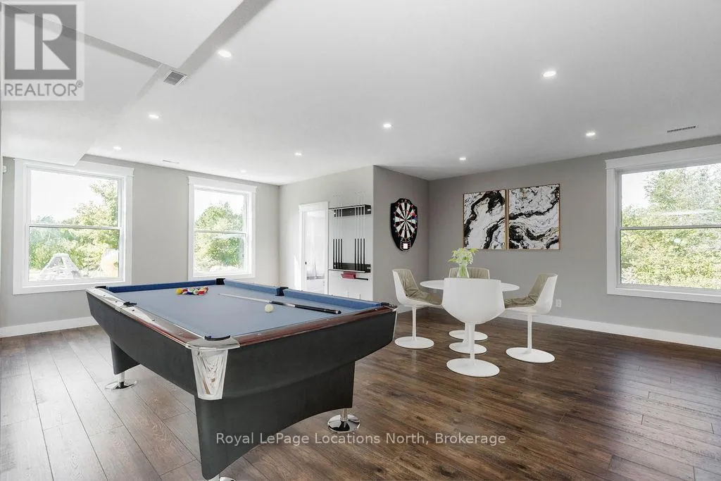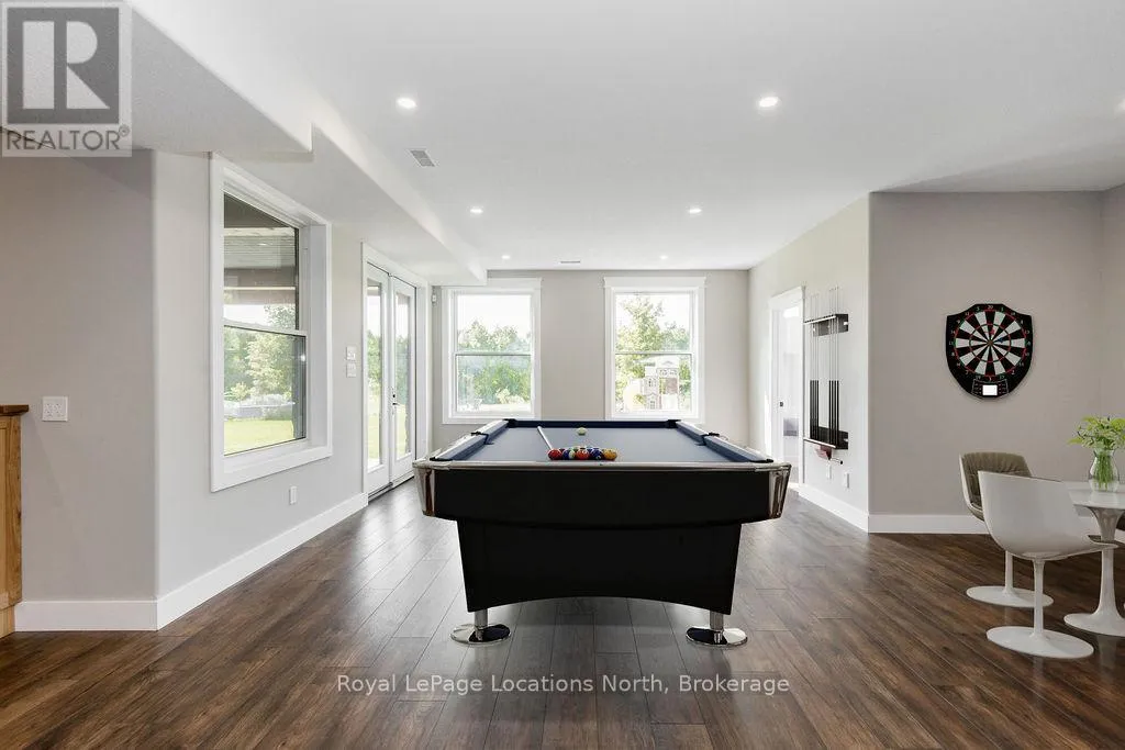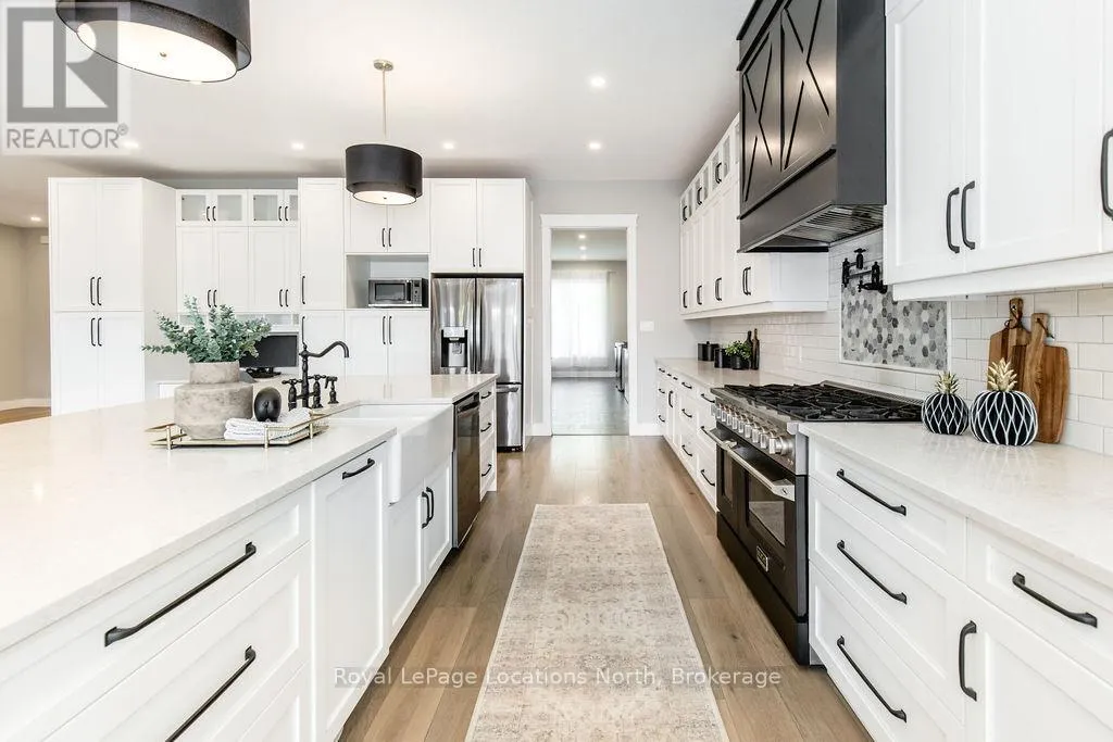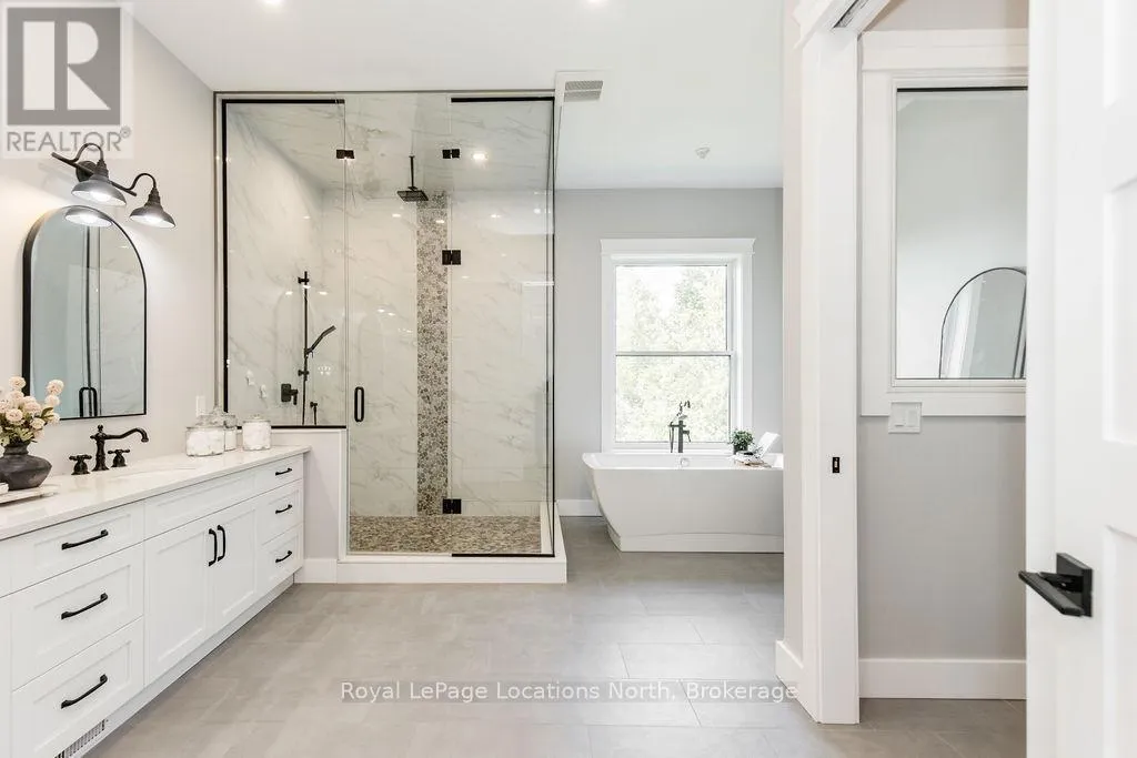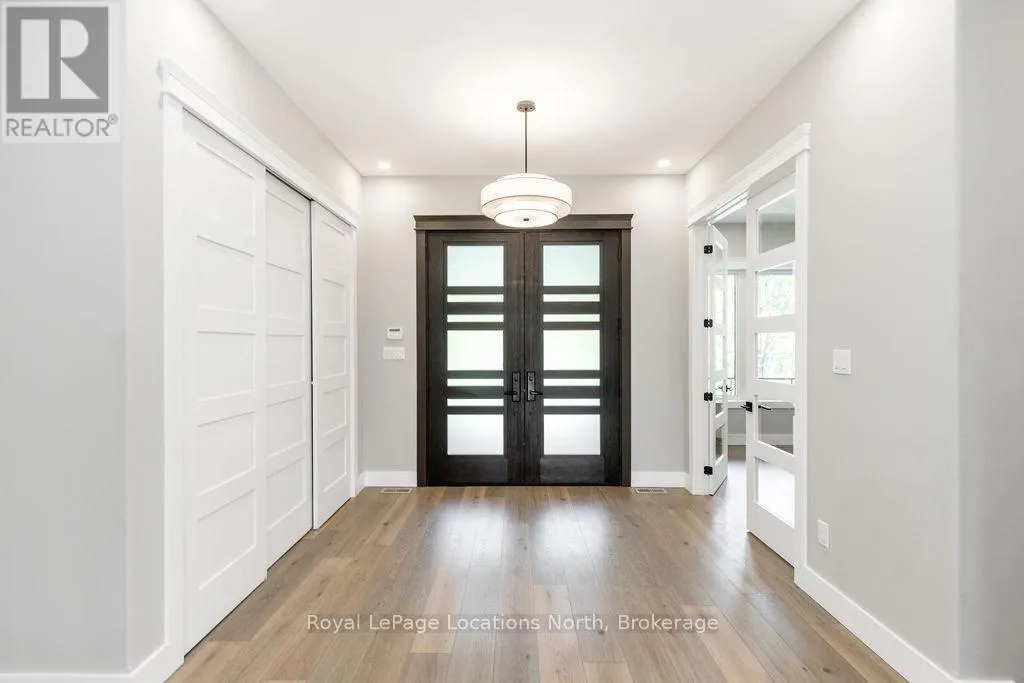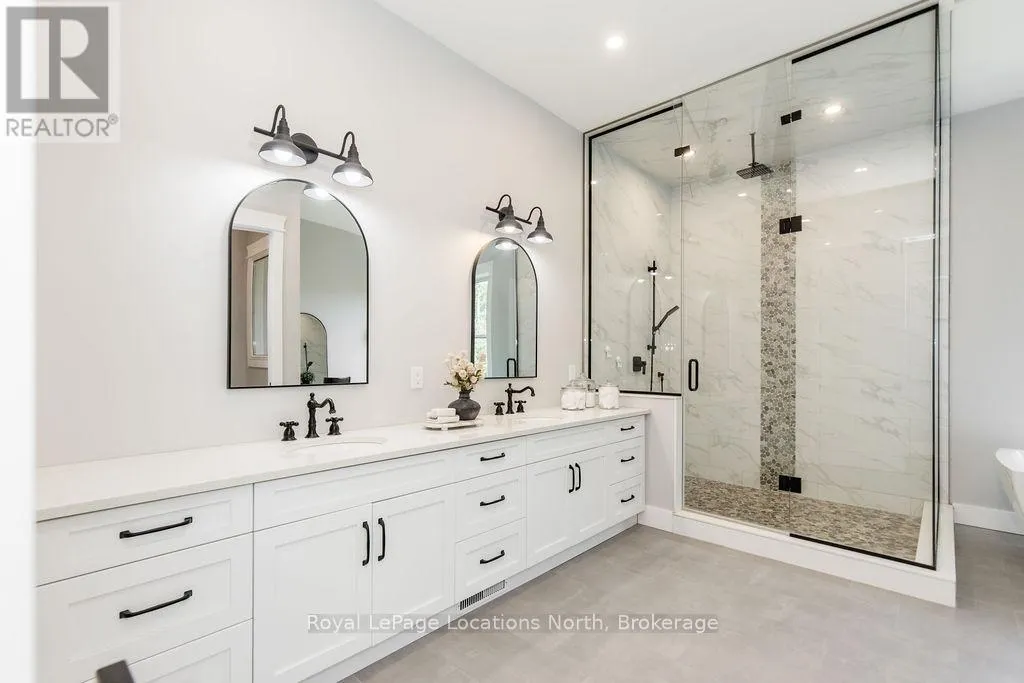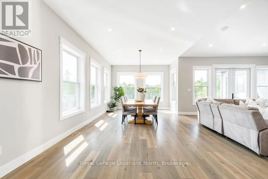 Cross Streets: Road 63 and 8th Concession B. ** Directions: Road 63 to 8th Concession B. Welcome to a truly rare private estate set on 92 acres of pristine countryside with kilometres of private trails, mature forest, and an operational sugar shack built from on-site harvested timber with 300 maple taps. This 8,000+ total sq ft custom-built luxury home offers potential for 7-8 bedrooms plus an in-law suite, ideal for a multi-generational family compound, luxury retreat, or estate property.Designed for comfort and efficiency, the home features in-floor radiant heating throughout, two furnaces, and an oversized 3-car garage with inside entry to a spacious mudroom, mezzanine storage, and workshop area. The grand open-concept living space showcases vaulted ceilings, wide-plank flooring, pot lights, and large custom windows overlooking the property.The custom kitchen features a commercial-grade 46" Kucht gas range with 8 burners, oversized island, quartz countertops, custom hood, designer pendant lighting, butler's pantry, large laundry/pantry room, and built-in desk workspace. The home offers 3+2 bedrooms and 5 full plus 2 half bathrooms, all finished with quartz counters, custom vanities, tile surrounds, and designer lighting. A formal office with French doors supports remote work with strong high-speed internet.The primary suite includes its own heating zone, walk-in closet, and spa-inspired ensuite with floating tub, glass shower, and double vanity. The lower level offers 9-ft ceilings, a bar with folding window for indoor-outdoor entertaining, double-sided stone fireplace, wired theatre room, games room, gym with walkout, and a separate garage entrance with future locker or mudroom potential. Integrated sound system throughout the home, deck, and gym.Outside, enjoy a covered front porch with glass railings, armour stone steps, gardens, vegetable beds, and a cleared area for campouts or future use. The 3,000 sq ft heated shop features radiant floors, 16-ft ceilings, its own propane tank, and oversized garage doors. (id:27476)