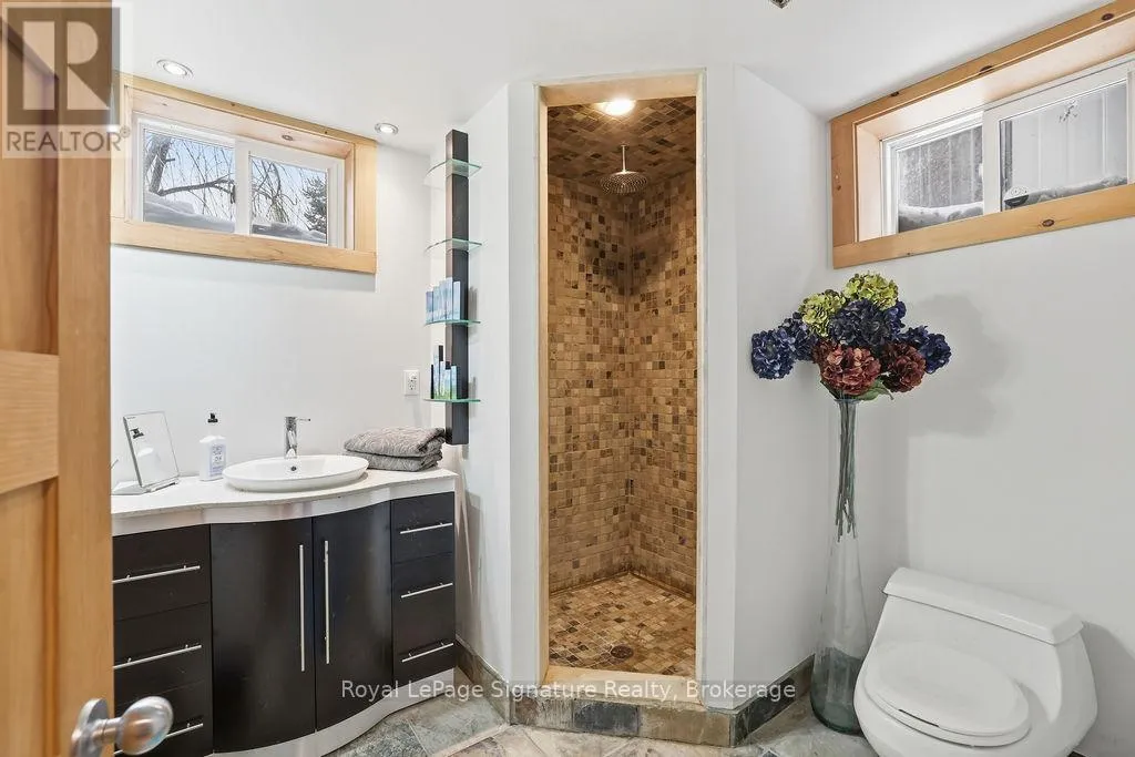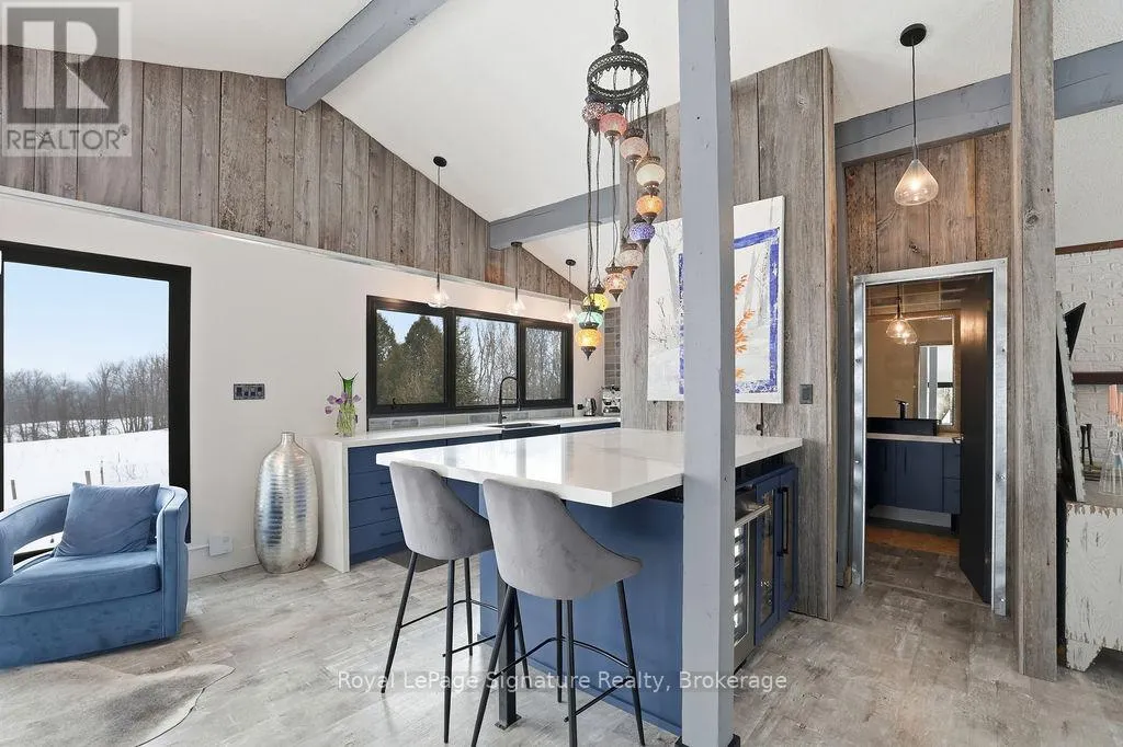 Cross Streets: Grey Road 13 between Kimberley and Eugenia on the west side, just north of Campbells Hill Road. ** Directions: South from Kimberley on Grey Rd 13 to house on right. Extensively renovated 4-bedroom, 3-bathroom modern mountain chalet in the heart of Beaver Valley, just minutes from Beaver Valley Ski Club, Lake Eugenia, the charming village of Kimberly, fine-dining and endless year-round recreation.Offering approximately 2,390 sq ft of finished living space, this home is designed for both entertaining and relaxation. The open-concept main living area features a custom kitchen with a spacious eat-at island that flows seamlessly into the dining and living spaces, perfect for gathering with family and friends. After a day on the slopes or trails, unwind in the finished basement complete with your own private sauna for the ultimate après-ski experience.A large mudroom provides practical storage for all your gear, while two substantial outdoor sheds offer additional space for skis, bikes, and recreational equipment. Step outside to the expansive upper deck with sleek glass railings and take in the sweeping valley views and spectacular sunsets.Set well back from the road on a huge, mature lot, this property offers privacy, space, and a true four-season lifestyle in one of the area's most sought-after locations. A rare opportunity to own a turn-key chalet in the beautiful Beaver Valley. (id:27476)