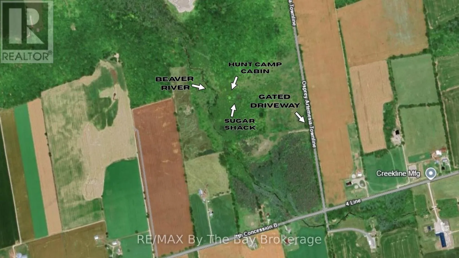 Cross Streets: Fourth Concession B and Osprey-Artemesia Tline. ** Directions: County Rd 4 to Osprey-Artemesia Tline. Discover an extraordinary opportunity to own 89 acres of unspoiled natural beauty. This breathtaking property features the scenic Beaver River winding gracefully through the land, creating stunning views of rolling hills, peaceful valleys, and endless natural charm. A rich forest of maple and pine trees surrounds you, perfect for producing your own syrup, complemented by a charming Sugar Shack with a durable metal roof. Outdoor enthusiasts will appreciate the heated Hunt Camp Cabin - an ideal retreat after a day exploring your private wilderness.This is truly a nature lover's paradise, offering abundant wildlife including deer and turkey, along with fishing right on the river. The property features a gated driveway and cleared trail systems throughout, making it easy to access and enjoy every corner of your land. Zoned A1 and RU, this versatile property offers incredible potential to build your dream estate home or private cottage getaway. Conveniently located 10 minutes from year-round recreation, including Lake Eugenia and 20 minutes to Beaver Valley Ski Club. A rare chance to own a spectacular slice of countryside. Call today for additional details! (id:27476)