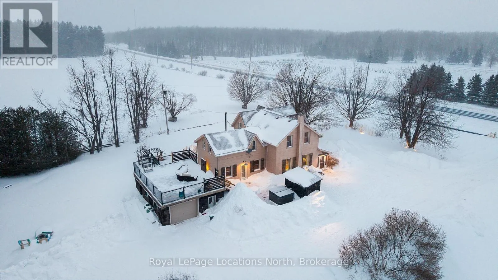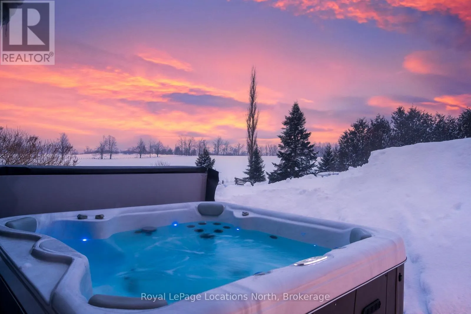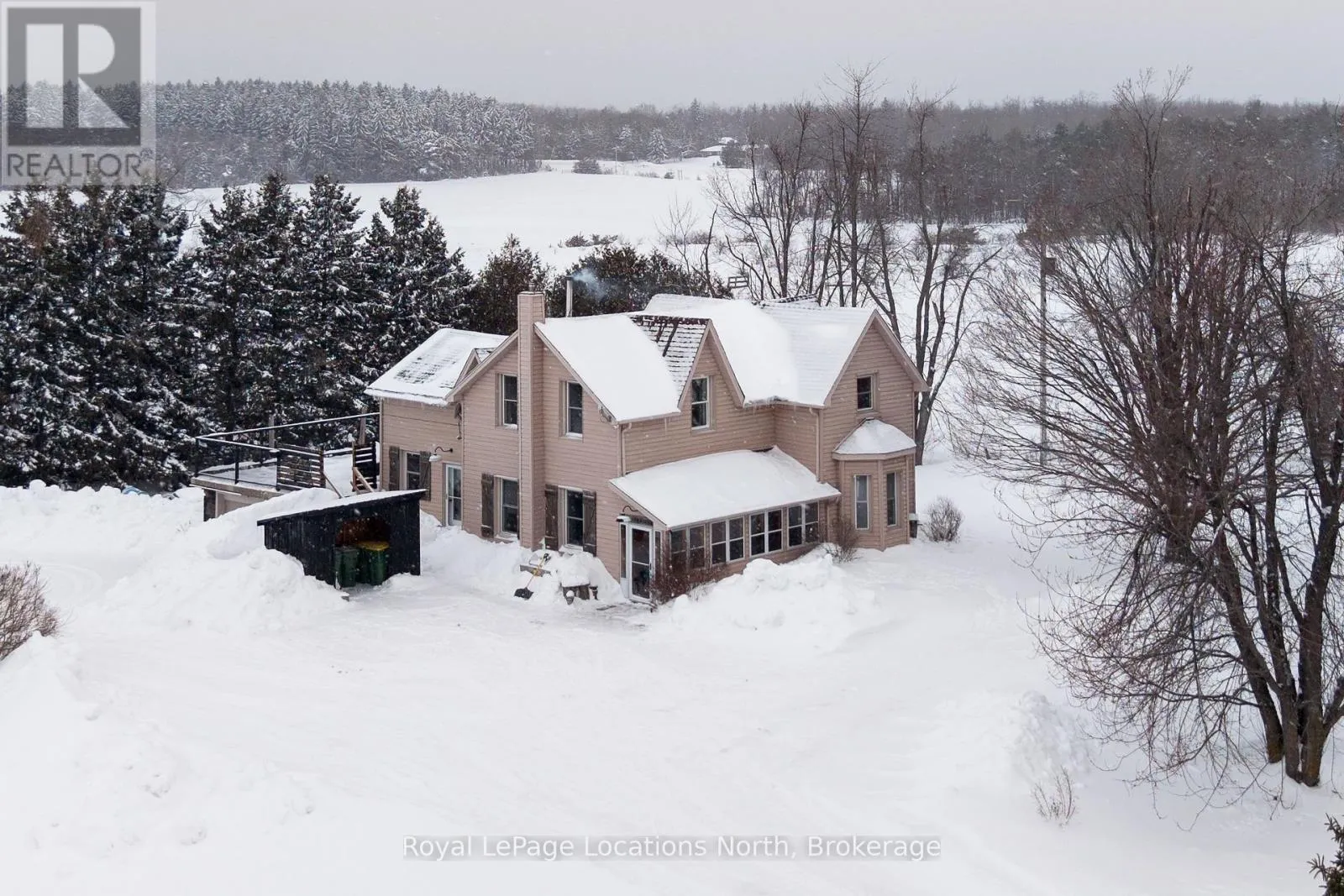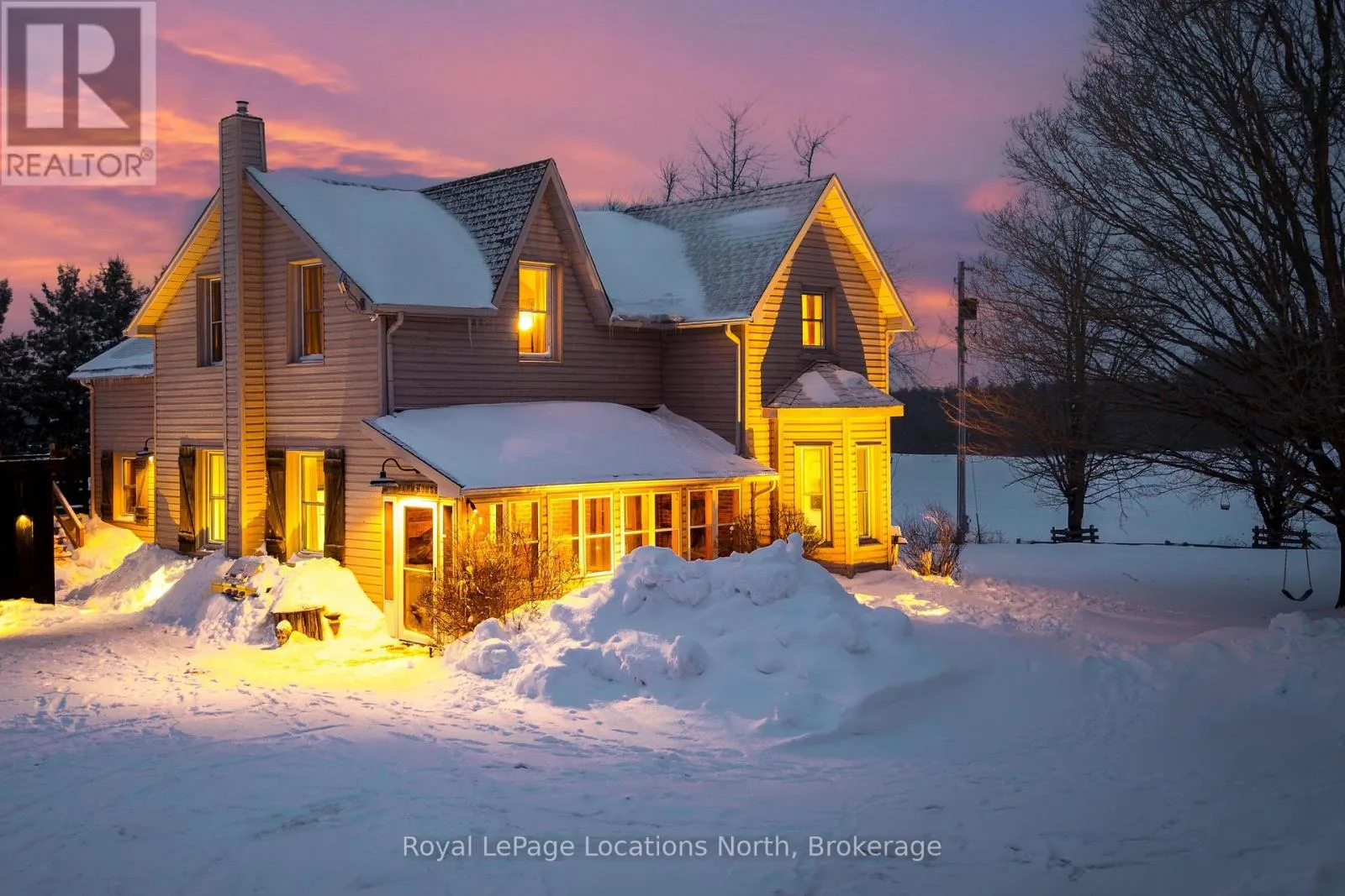 Cross Streets: Grey Rd 124/Grey Rd 4. ** Directions: Grey Rd 124 on west side just south of Singhampton. Set on a fully gated and beautifully landscaped 1.5 acre property near Singhampton, this 1905 country farmhouse offers a rare blend of historic character and privacy. The circular back driveway and mature landscaping create a sense of calm upon arrival, while the covered front porch/mudroom welcomes you inside. A central hall with approximately 9'8" ceilings sets the tone for the home's warmth and craftsmanship. The south-facing farmhouse kitchen is the heart of the home, featuring a generous dining area and a propane gas fireplace that creates a cozy backdrop for everyday living and entertaining. Multiple main-floor living spaces offer flexibility for family life, hosting guests, or working from home, while the inviting living/recreation room is accented with natural wood details and anchored by a wood-burning stove. Practical updates enhance functionality, including a dedicated main-floor laundry room and an attached garage that has been thoughtfully finished to include an office or gym -professionally wired, making it ideal for a home-based business or creative workspace. Upstairs, two separate staircases lead to four generously sized bedrooms, including two with built-in closets, offering comfortable accommodation for family and guests. The outdoor spaces are equally impressive: relax and unwind in the hot tub, rinse off in the outdoor shower, or entertain on the patio surrounded by extensive landscaping and a peaceful water feature. A rooftop patio offers elevated views of the surrounding countryside, while the fully fenced and gated property provides privacy and peace of mind. With ample space for future expansion-such as a pool, horses, or additional outbuildings (subject to approvals)-this property offers the freedom to grow and evolve. Ideally located for outdoor enthusiasts, the home is minutes from year-round recreation and trails, yet conveniently close to everyday amenities: a perfect balance of country living and accessibility. (id:27476)