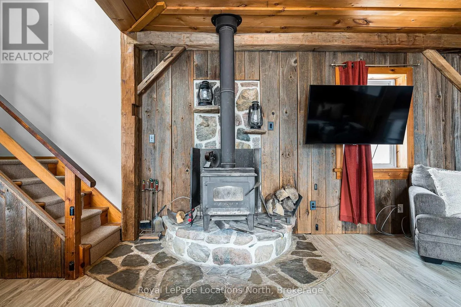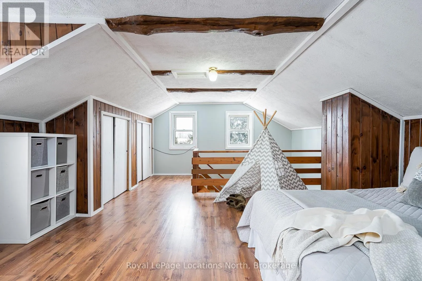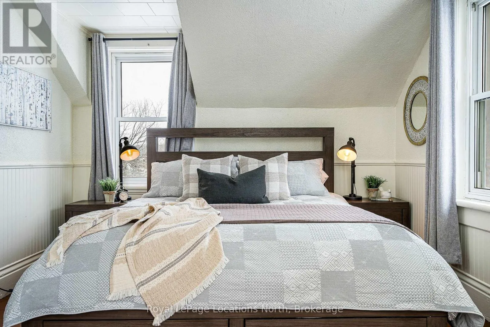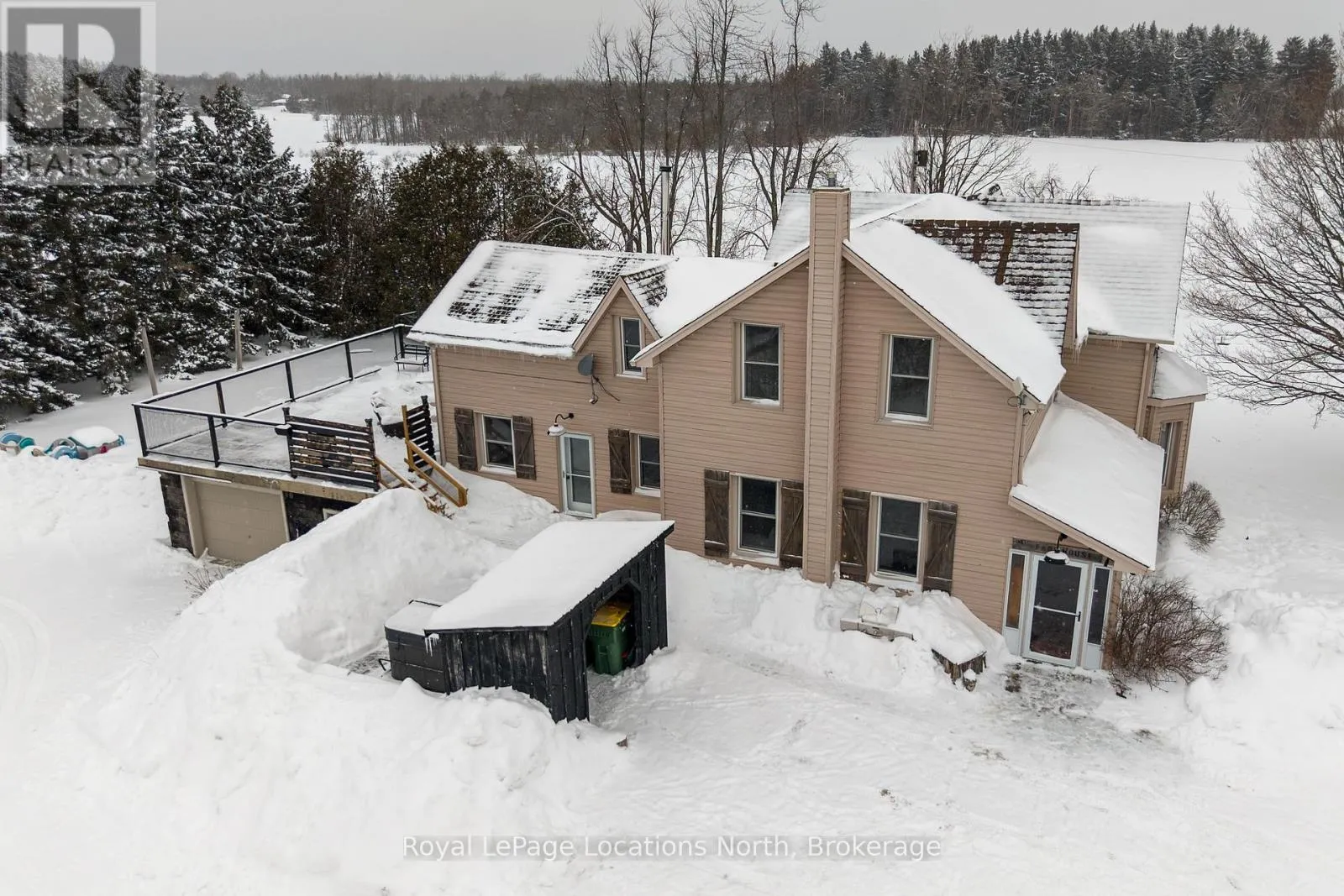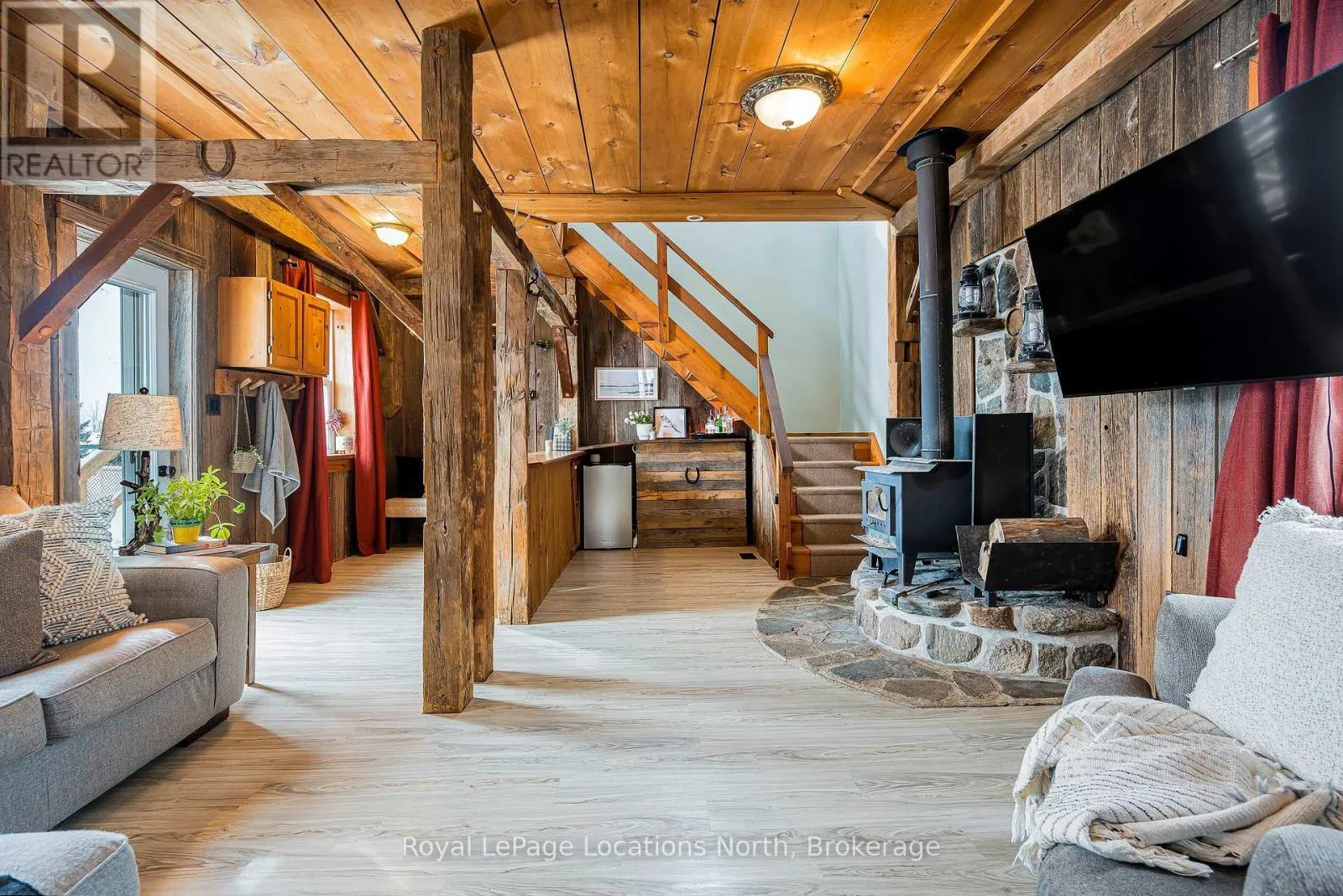 Cross Streets: Grey Rd 124/Grey Rd 4. ** Directions: Grey Rd 124 on west side just south of Singhampton. Set on a fully gated and beautifully landscaped 1.5 acre property near Singhampton, this 1905 country farmhouse offers a rare blend of historic character and privacy. The circular back driveway and mature landscaping create a sense of calm upon arrival, while the covered front porch/mudroom welcomes you inside. A central hall with approximately 9'8" ceilings sets the tone for the home's warmth and craftsmanship. The south-facing farmhouse kitchen is the heart of the home, featuring a generous dining area and a propane gas fireplace that creates a cozy backdrop for everyday living and entertaining. Multiple main-floor living spaces offer flexibility for family life, hosting guests, or working from home, while the inviting living/recreation room is accented with natural wood details and anchored by a wood-burning stove. Practical updates enhance functionality, including a dedicated main-floor laundry room and an attached garage that has been thoughtfully finished to include an office or gym -professionally wired, making it ideal for a home-based business or creative workspace. Upstairs, two separate staircases lead to four generously sized bedrooms, including two with built-in closets, offering comfortable accommodation for family and guests. The outdoor spaces are equally impressive: relax and unwind in the hot tub, rinse off in the outdoor shower, or entertain on the patio surrounded by extensive landscaping and a peaceful water feature. A rooftop patio offers elevated views of the surrounding countryside, while the fully fenced and gated property provides privacy and peace of mind. With ample space for future expansion-such as a pool, horses, or additional outbuildings (subject to approvals)-this property offers the freedom to grow and evolve. Ideally located for outdoor enthusiasts, the home is minutes from year-round recreation and trails, yet conveniently close to everyday amenities: a perfect balance of country living and accessibility. (id:27476)