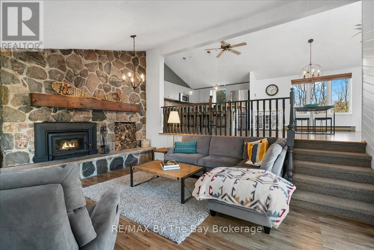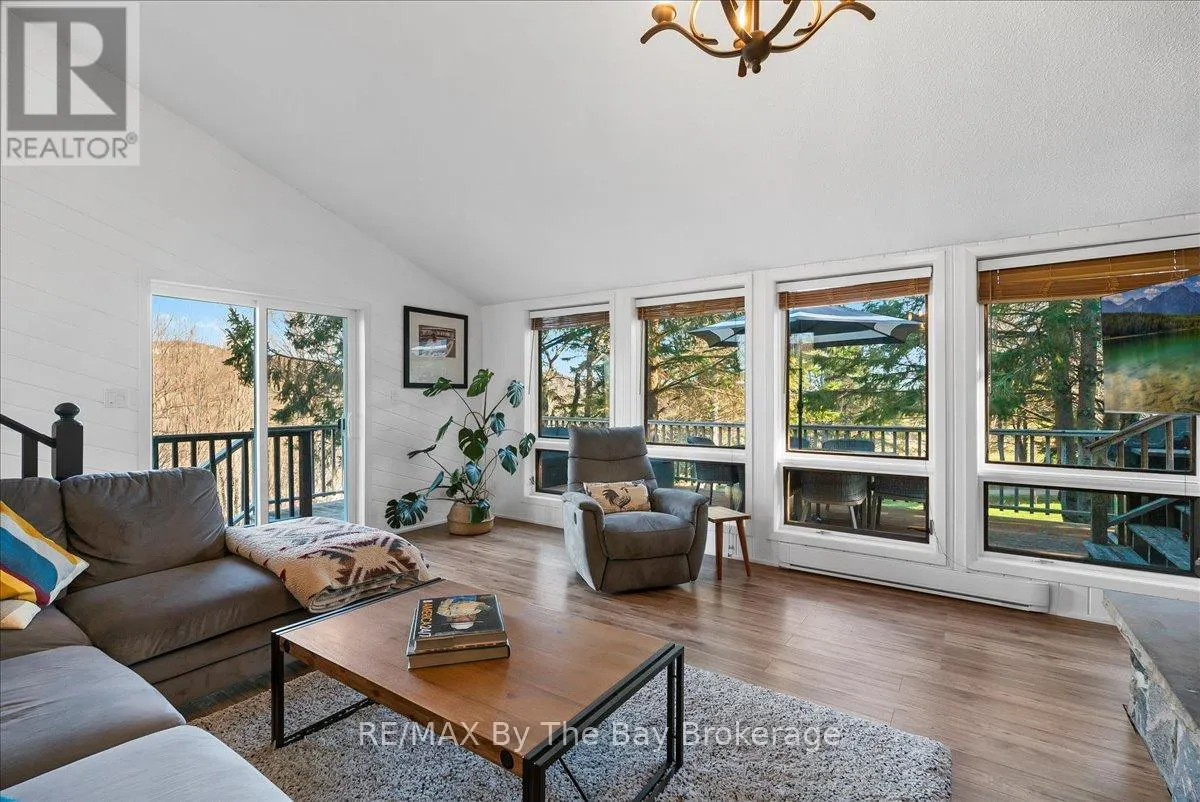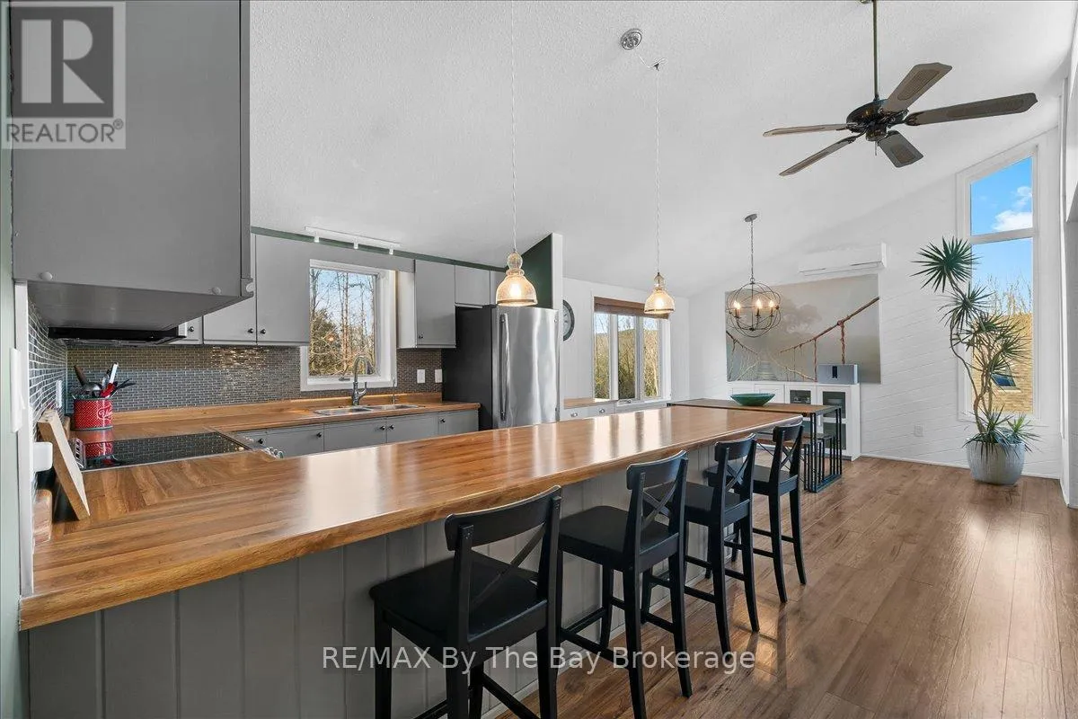 Cross Streets: Grey Road 7 & Talisman Drive. ** Directions: Grey Road 7 to Talisman Drive, right on Talisman Drive up the hill to #177 on the right. Welcome to your private retreat at Talisman Mountain! This chalet offers unparalleled privacy, backing onto a pristine spring-fed creek with no neighbouring houses behind. The property also holds an Airbnb license, giving buyers an excellent income opportunity. Should the new owner wish to continue short-term renting, they can simply apply for their own license after closing. Even better, the Bruce Trail Conservancy has purchased the former Talisman Mountain Resort lands, preserving over 120 acres for conservation-ensuring no future development in front of the home and protecting your peaceful valley views. Just 2km from the Village of Kimberley and 6km to Beaver Valley Ski Club, this 3-bed, 2-bath turn-key chalet sits on a quiet private road and comes fully furnished. Move in and enjoy the four-season lifestyle immediately-ideal for families seeking a cozy ski chalet ahead of the winter season.The bright reverse floor plan features an open-concept kitchen with ample counter space and breakfast bar overlooking a sunken living room with cathedral ceilings, massive windows, and a beautiful wood-burning fieldstone fireplace. Walk out to the wrap-around balcony, shaded by mature trees, perfect for morning coffee or evening relaxation.The spacious primary bedroom is on the upper level, with two additional bedrooms and a full bath on the main floor. The lower level offers a welcoming mudroom, a small garage for ski and biking gear, and an unfinished walkout currently set up as a Pilates studio.Outside, an updated hydro-powered studio is ideal for yoga, art, or quiet reflection. Multiple decks offer views of Beaver Valley and Old Baldy, with the creek running gently through the backyard. With hiking, cross-country skiing, mountain biking, and the Bruce Trail moments away, this property blends adventure, investment potential, and total tranquility. Building plans can also be included for a major renovation to this chalet, along with professional landscaping drawings. (id:27476)