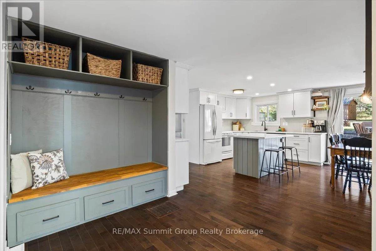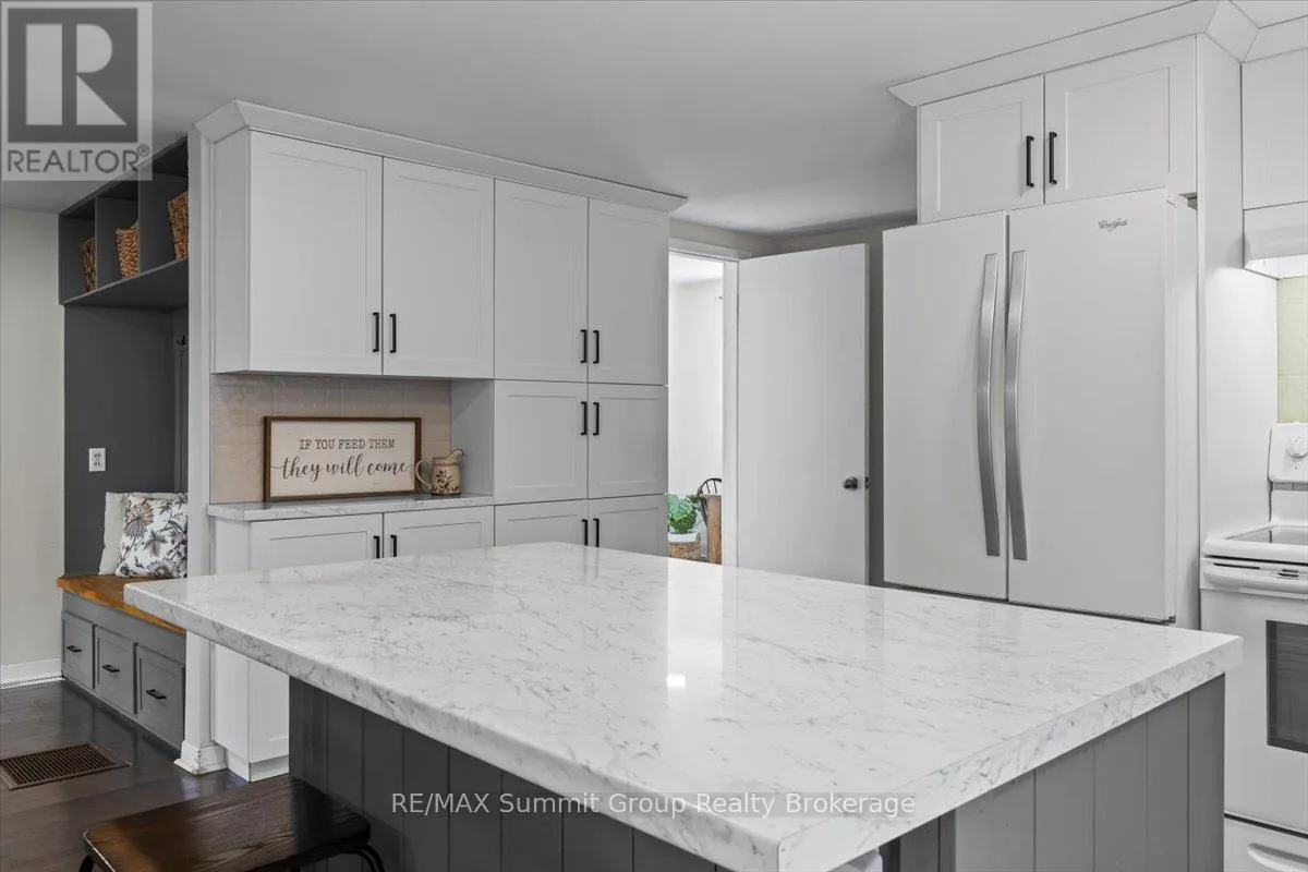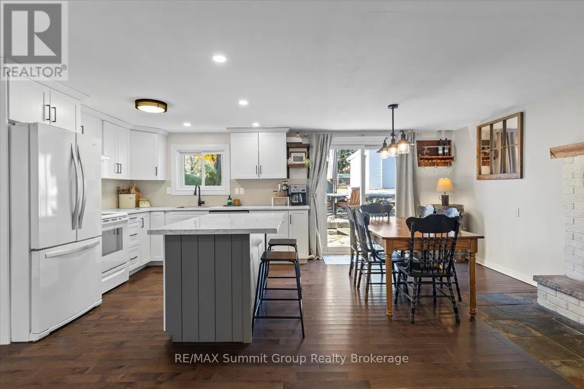 Cross Streets: Grey Road 2 & River Rd. ** Directions: Going north on Grey Rd 2, just before Ice River Springs turn east/right onto River Road, to property on the north/left side. A welcoming 4 bedroom, 2 bath home that has been updated in the right places and feels comfortable the moment you walk through the door. The updated kitchen features additional pantry cabinets and an island that naturally becomes the gathering spot, while built-in storage at the front entry keeps everyday items neatly organized. The dining area with its wood-burning fireplace is where winter evenings feel extra special, and a separate living room offers a comfortable space for movie nights, card games or quiet time at the end of the day. Main floor living works beautifully here. One bedroom can serve as the primary, while the second offers the option of a spacious walk-in closet or dressing room. A 3-piece bath on this level keeps daily routines simple. If all four bedrooms are not needed, the fourth works nicely as a home office or toy room, helping keep the main living spaces tidy. Upstairs are two additional bedrooms and a full bath that work well for family, guests or hobby space. Step outside to the backyard patio area, accessible from both the dining room and the spacious main floor laundry room. This is where summer evenings are spent enjoying dinners with friends, weekend bonfires and plenty of room for kids or pets to play. Life in Feversham means you can walk to the village store, head to the arena or take an evening stroll to the park just up the road, making day-to-day living easy while still enjoying the charm of a small community. Heating and cooling is efficient with a propane furnace (2021), heat pump and AC (2025). The detached garage is ideal for parking or storage and the newer shed adds even more space for items that need their own spot. Set in the quaint Village of Feversham, this is a beautiful place to raise a family, enjoy weekends away or settle into a friendly community where life moves at a comfortable pace. A home that feels easy to settle into. (id:27476)