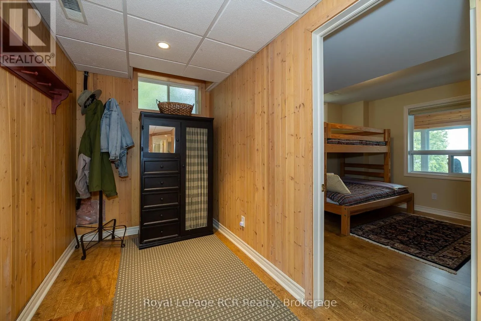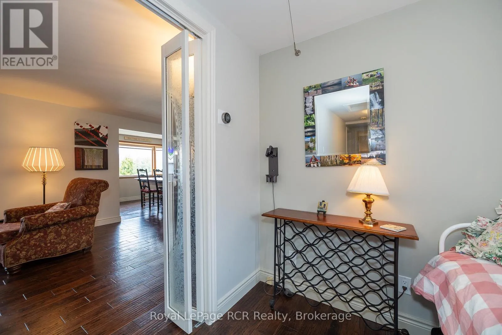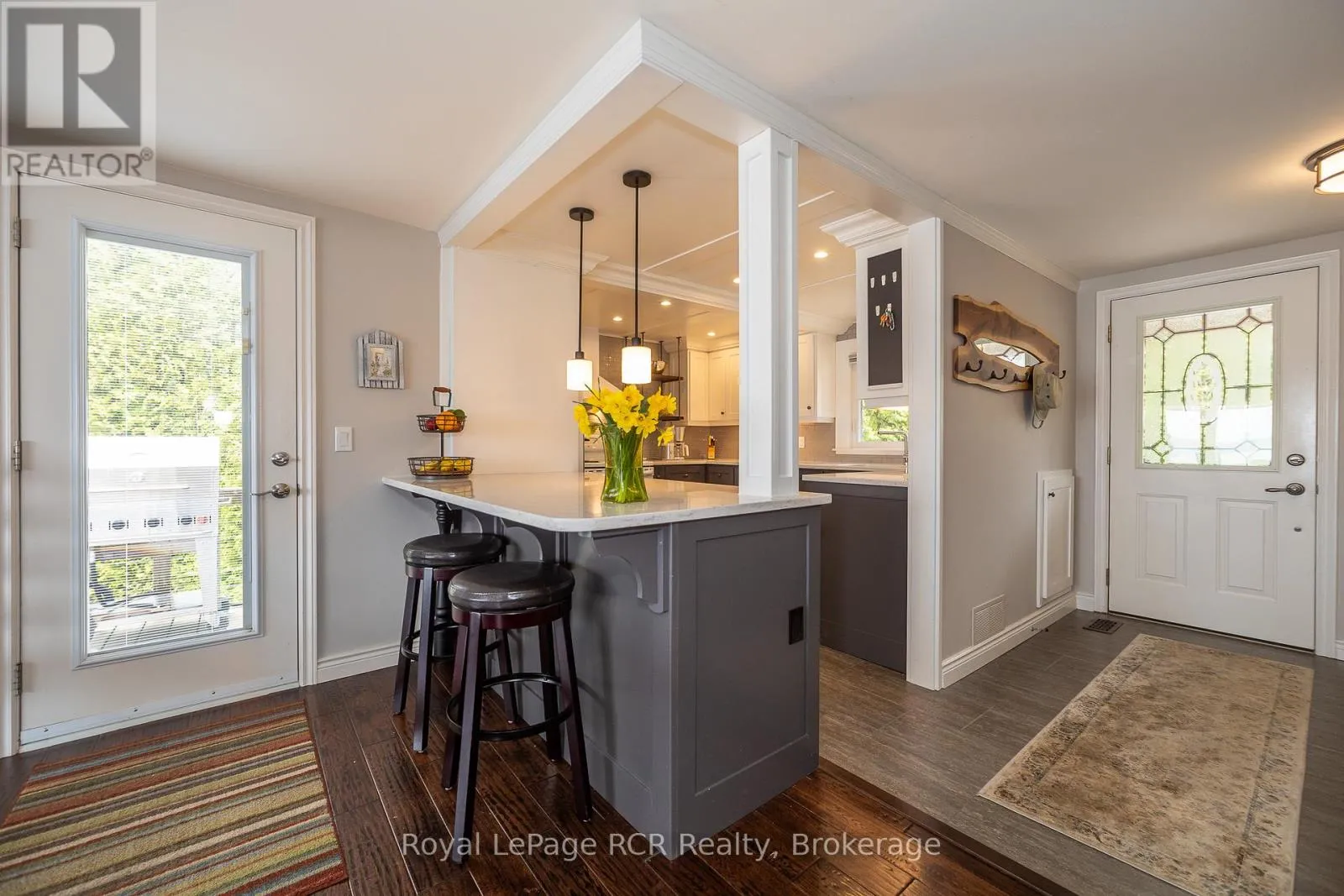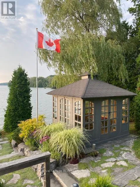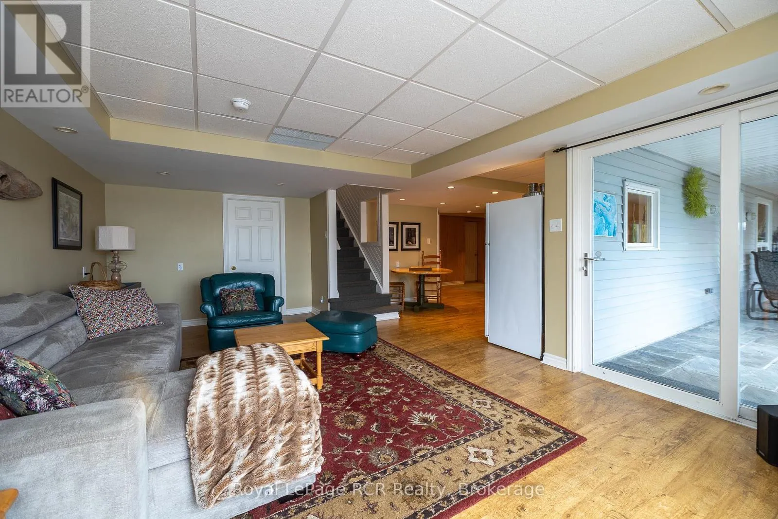 Sideroad 30 to Sunset Point 123' waterfront on Sunset Point, Lake Eugenia with unobstructed views from nearly every room on both levels. Enjoy the open kitchen, dining and living areas with direct access to the light-filled sunroom. Lower level walkout features a family room with propane free-standing stove, second kitchen, 2nd bath and great coat room with access to the attached garage. Walkout to stone patio, waterside deck, sheltered dock, enclosed gazebo, sandy beach area and everything desired in a waterfront property. Thoroughly enjoyed and lovingly maintained including updated kitchen and bath (2017), hot water tank (2023), sewage pump (2024), shingles (2010), eavestrough with leaf guard (2023). Shared ownership and use of Macdonald Farm with 127 acres of trails for recreational use. (id:27476)