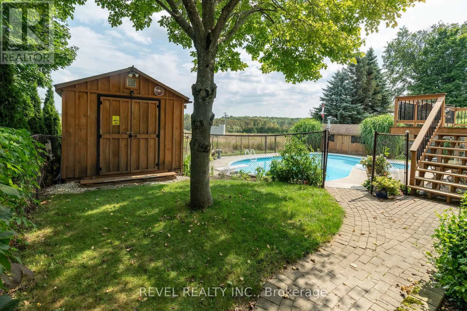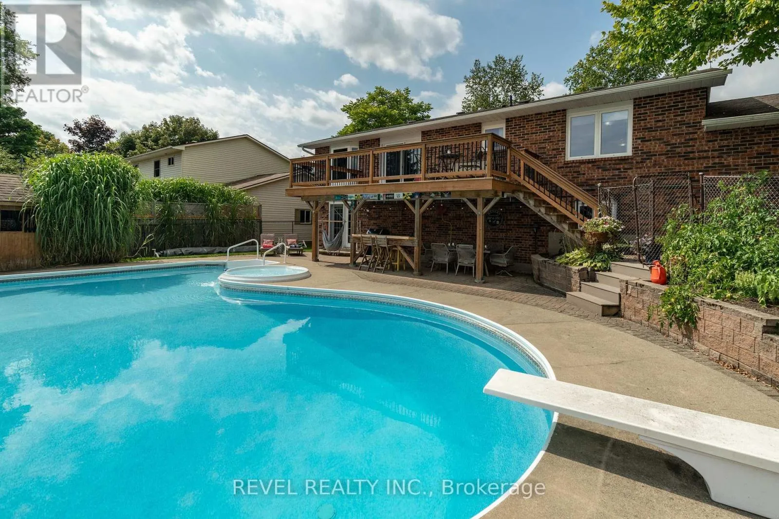 Cross Streets: Victoria St to Armstrong Cr. ** Directions: Toronto to Victoria to Armstrong. This beautifully maintained all brick bungalow is set in one of the area's most sought-after neighbourhoods. The main floor showcases gleaming hardwood floors, a bright and spacious living room with a stone fireplace, and a dining room featuring a large bow window with picturesque countryside views. The kitchen offers a breakfast bar and French doors that open to a 24' x 12' deck, ideal for outdoor dining and entertaining.Three bedrooms complete the main level, including a primary suite with a private en-suite bath. The fully finished lower level provides a fourth bedroom, a combined laundry and 2-piece bath, a versatile hobby or flex room, and a family room with walkout access to the backyard. Outside, enjoy summer living in your private, fully fenced yard with a 38' x 23' heated in-ground pool and 6-person waterfall spa. A perfect home for comfortable family living and effortless entertaining. (id:27476)