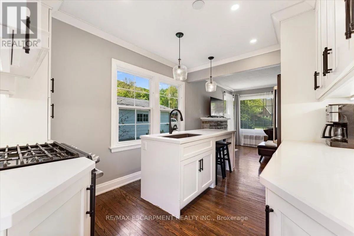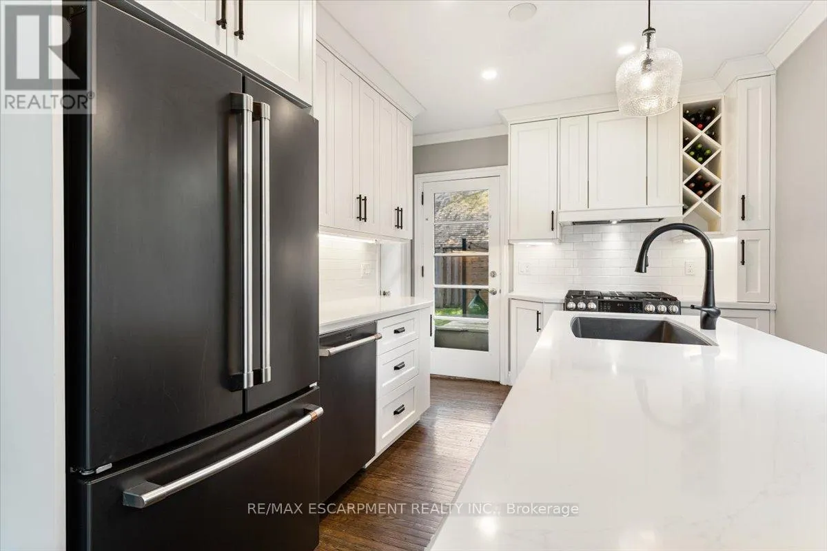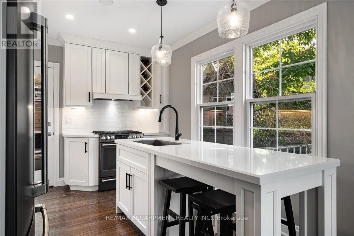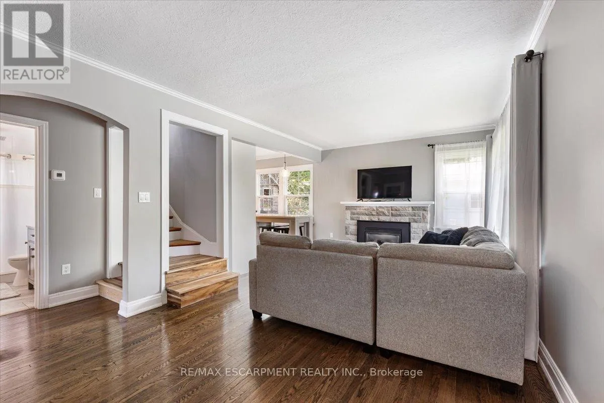 Cross Streets: LIVINGSTON AVE / NELLES BLVD. ** Directions: TAKE THE QEW AND EXIT AT CHRISTIE STREET/ONTARIO STREET/MAPLE AVENUE. HEAD SOUTH ON CHRISTIE STREET. TURN RIGHT ONTO LIVINGSTON AVENUE. TURN LEFT ONTO NELLES BOULEVARD. Welcome to 23 Nelles Boulevard--where character meets convenience in the heart of Grimsby's most sought-after neighbourhood. This beautifully maintained 1.5-storey Shafer-built home offers a true 3-bedroom, 2-bathroom layout with living space thoughtfully spread across all three levels. Perfect for families, professionals, or downsizers, it blends timeless charm with modern updates. The main floor features hardwood flooring, a bright living room with a stone-framed gas fireplace and custom mantel, and a stylishly remodelled kitchen (2020) designed for both function and style. A well-sized bedroom and a 3-piece bath with a walk-in rainfall shower complete the level, along with the convenience of a new main-floor laundry (2024). Upstairs, the spacious primary retreat awaits with plenty of natural light and a roughed-in ensuite bathroom, ready for your personal touch. The finished lower level adds even more versatility with a third bedroom and 4-piece bath--ideal for guests, in-laws, or teens seeking their own space. Step outside to enjoy a private, fully fenced backyard featuring a deck, pergola, and wide access gates leading to the driveway and side entry--perfect for family living or entertaining. And the location couldn't be better--just steps from downtown Grimsby's shops, restaurants, schools, and parks, with quick access to the QEW for commuters. If you're looking for a home that combines character, functionality, and one of the best addresses in Grimsby, 23 Nelles Boulevard is a must-see (id:27476)