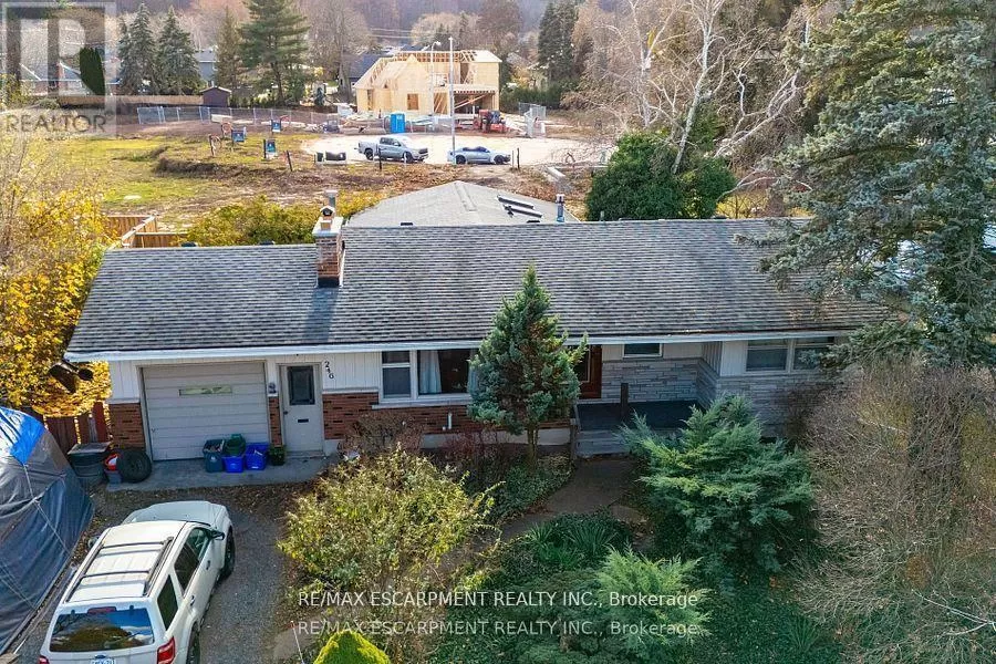 BARTLETT AVE & MAIN ST E This charming 2-bedroom bungalow, set on just under half an acre of mature, beautifully landscaped grounds in Grimsby, ON, offers both tranquility and convenience. The home features a spacious family room with a cozy gas potbelly stove and vaulted ceilings, creating a welcoming space for relaxation. The formal living room, complete with a wood-burning fireplace, is perfect for family gatherings and entertaining. Located just minutes from the Hospital, QEW, and GO Transit, this property is ideally positioned for easy access to major routes. Its just 30 minutes to the US border, 20 minutes to Hamilton, and an hour to Downtown Toronto. Families will appreciate being close to the new Secondary School. Enjoy the privacy of a large lot while still being close to all the amenities and transportation options you need. This is a fantastic opportunity to own a well-maintained home in a desirable location. (id:27476)