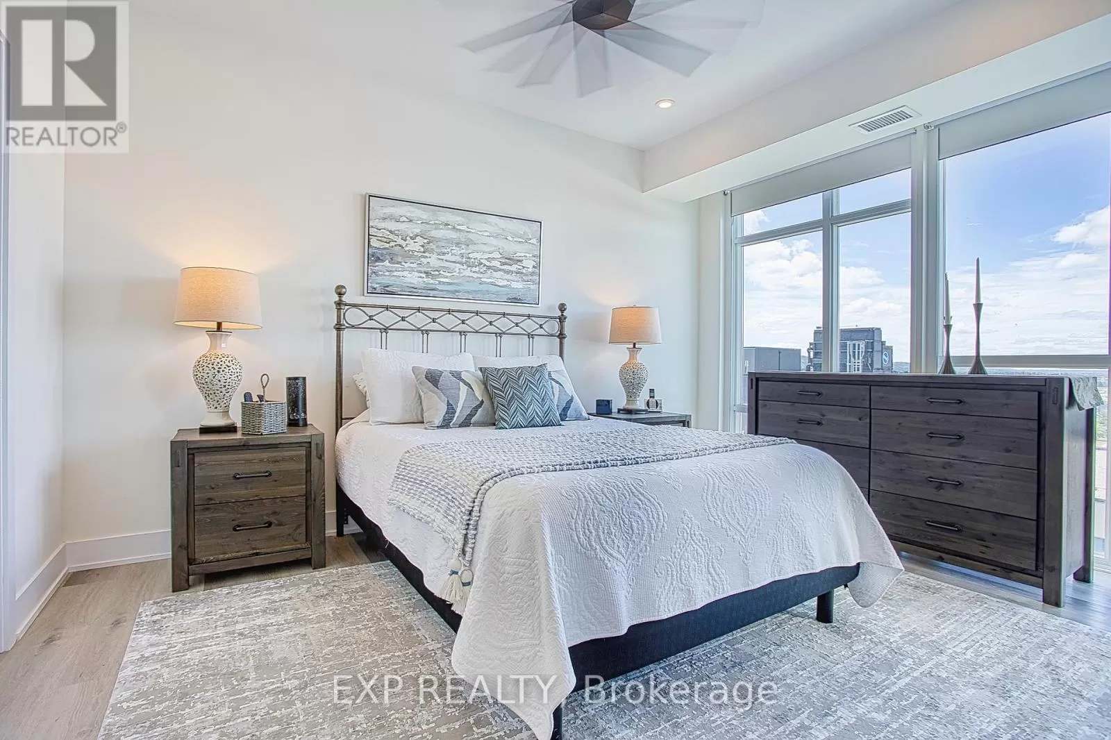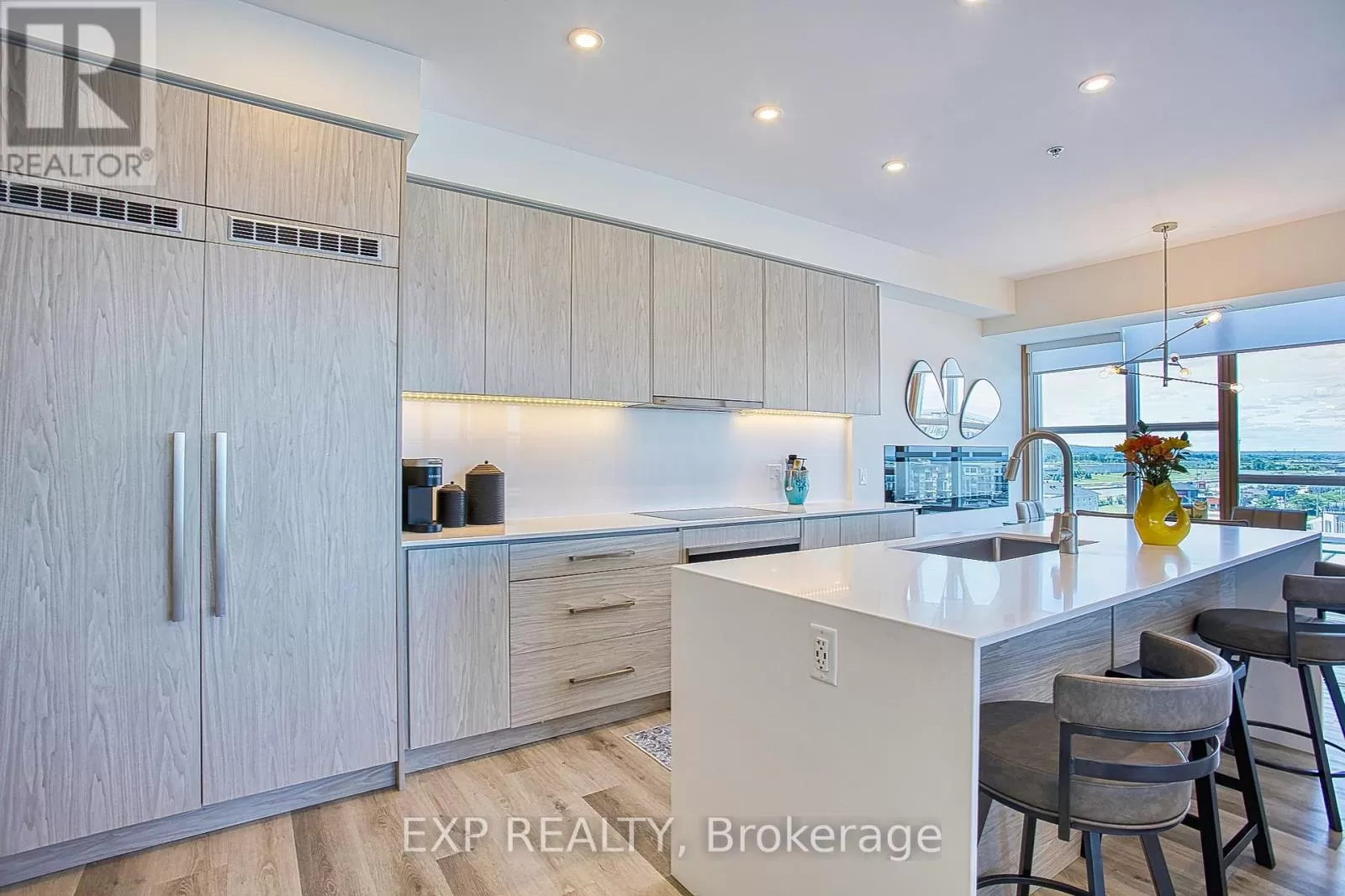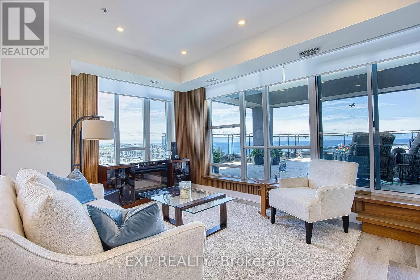 Casablanca/North Service Welcome to Penthouse 707 at 16 Concord Place a truly stunning top-floor suite in the heart of Grimsby's vibrant and highly desirable Grimsby on the Lake community. With panoramic views of Lake Ontario and the Toronto skyline, this exceptional condo offers a luxurious lakeside lifestyle with every amenity right at your doorstep. This thoughtfully designed unit features two parking spots and two storage lockers, ensuring both convenience and comfort. Inside, you'll find an open-concept living space flooded with natural light, featuring remote-controlled blinds on every window, sleek modern finishes, and a cozy electric fireplace that adds warmth and ambiance. Enjoy the best of indoor-outdoor living with a private terrace off the living room, perfect for morning coffee or evening wine, as well as a second balcony off the primary bedroom, offering peaceful lake views and a relaxing retreat. The Grimsby on the Lake lifestyle means you're just steps from trendy restaurants, cafes, boutique shopping, walking trails, and easy access to the QEW ideal for commuters and weekend adventurers alike. This rare penthouse suite offers a perfect blend of style, space, and scenery. Don't miss your chance to live above it all in one of Grimsby's most iconic waterfront residences. (id:27476)