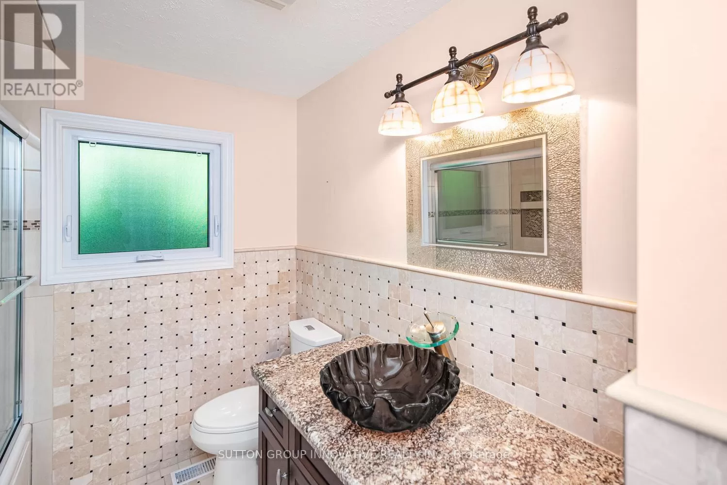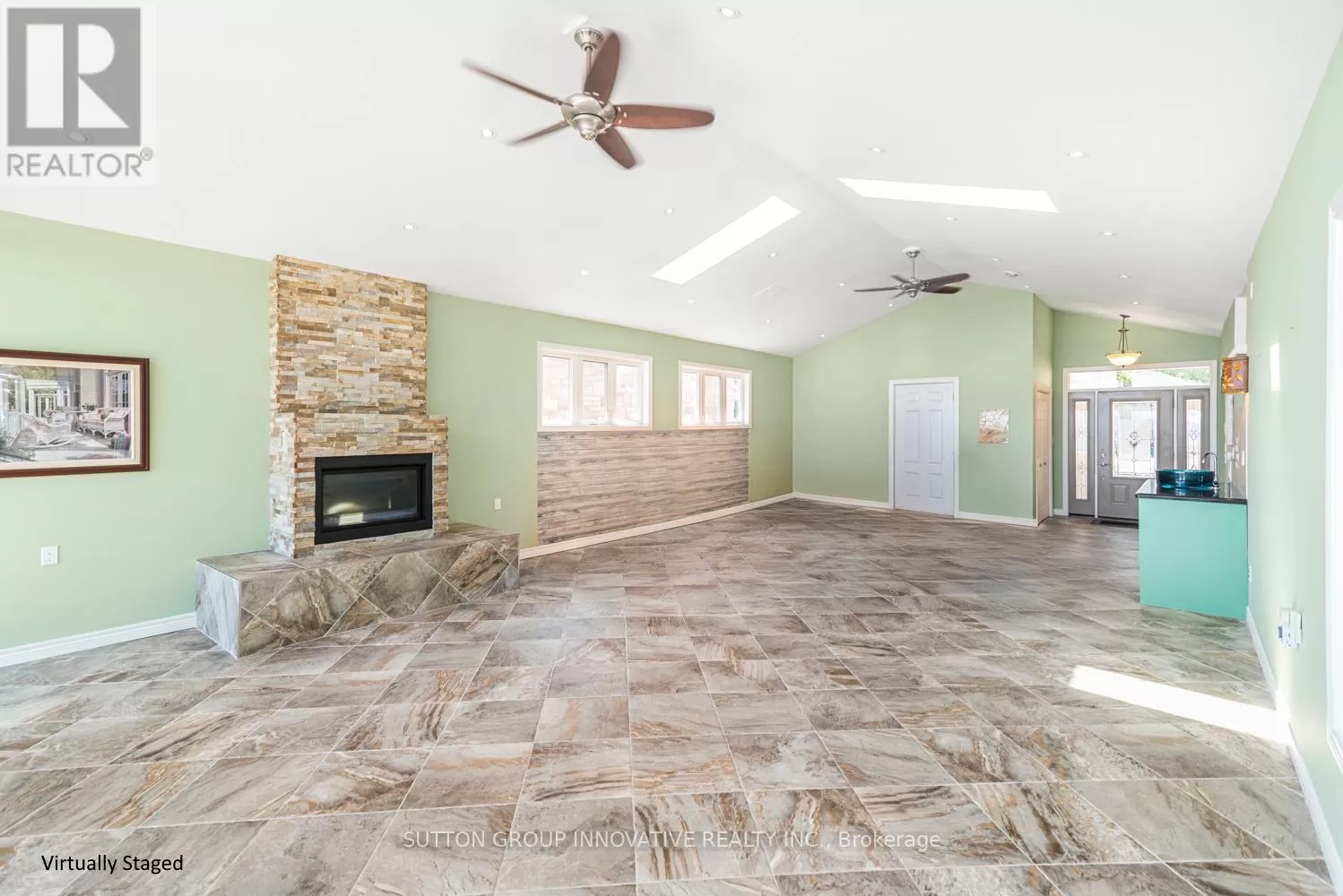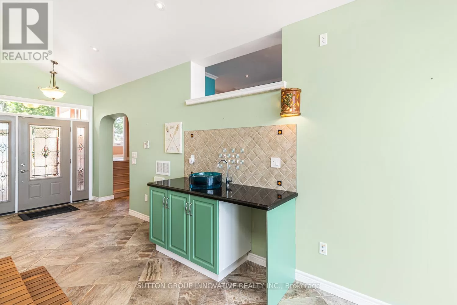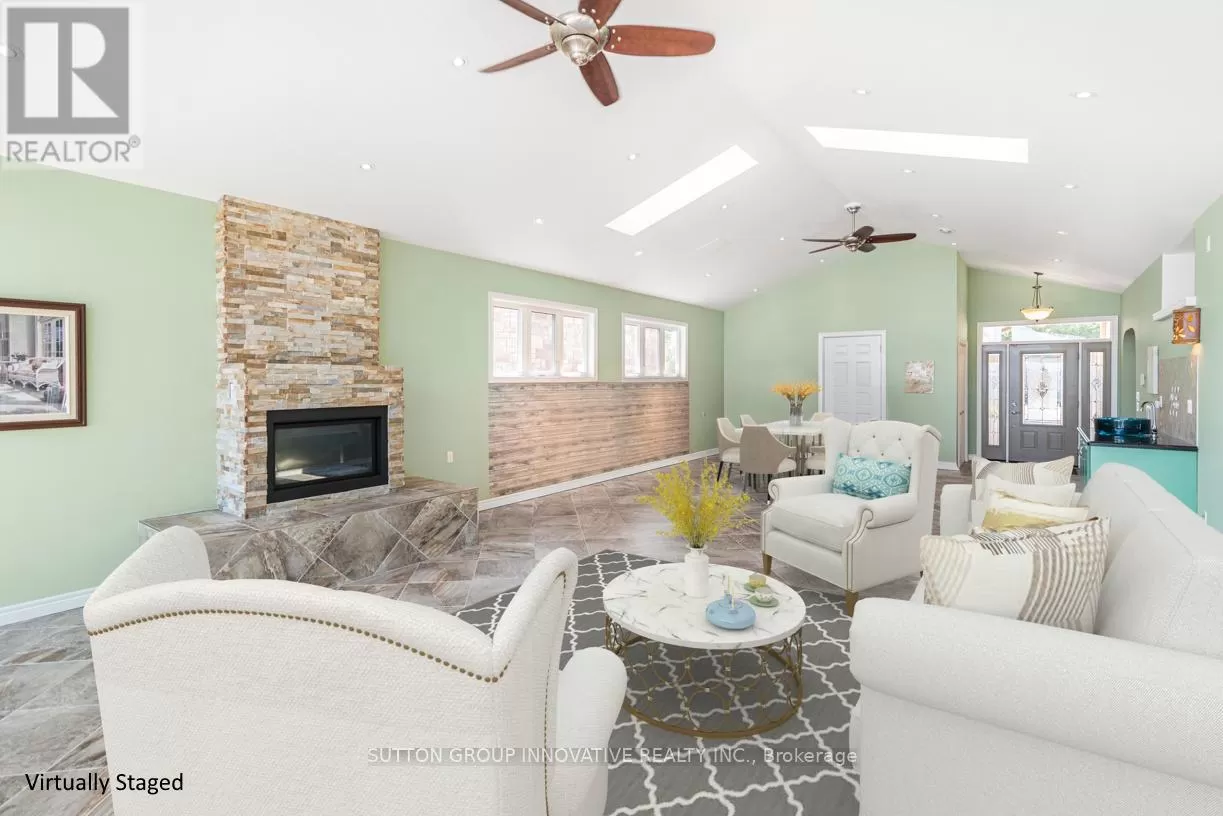 Cross Streets: Christie/Lakeview. ** Directions: QEW Niagara to Christie St to Lakeview Av to Lakeside Drive. Welcome to 38 Lakeside Drive, Grimsby a raised ranch-style home backing directly onto Lake Ontario. A 2013 addition created a spacious main-floor family room and an oversized single garage. The family room features floor-to-ceiling windows with lake views, a cathedral ceiling with 2 skylights and ceiling fans, a gas fireplace, wet bar, tile floors, and a built-in14-foot, climate-controlled Arctic swim spa for year-round use. Sliding doors open to a Flex Stone patio (2022) and the deep backyard. The upper level has 2 bedrooms, a 4-piece bathroom with heated floors, linen closet, jetted tub, and a granite counter. The living room has crown moulding, pot lights, and sliding doors to a balcony with composite decking and glass railings overlooking the backyard and lake. The updated eat-in kitchen includes cherrywood cabinets, granite counters, breakfast bar, double sink, south-facing windows, pot lights, pull-out pantry, dining area with display cabinets, and upgraded stainless steel appliances including a gas range with double ovens, built-in microwave, and dishwasher. The lower level, also renovated in 2013, includes 2 additional bedrooms, a 4-piece bathroom with heated floors and linen closet, a rec room, and a large laundry/utility/storage room with cabinetry, shelving, and a second fridge. One bedroom has a walk-up to the backyard. Additional features include:200 Amp hydro, central vacuum, irrigation system by Water World, Eufy wireless security system with 3 cameras, pot lighting at the front and rear with rear motion detector, leaf guards, oversized garage with inside entry, extra storage, automatic garage door opener with 2 remotes, and two storage sheds. A 10' x 10' sitting area with firepit overlooks the lake, and with Lake Ontario riparian rights, there is potential to add a deck or dock for more direct water access. Peace and privacy, yet close to shopping, parks, schools, and easy highway access. Swim spa can be removed by sellers if preferred. (id:27476)