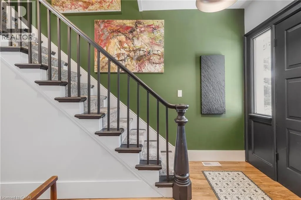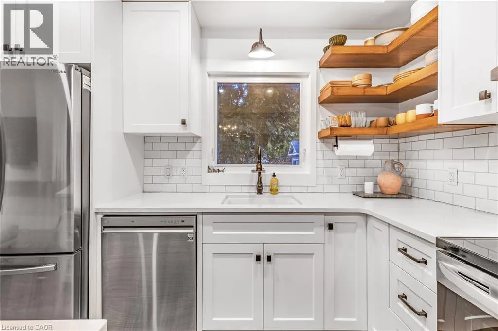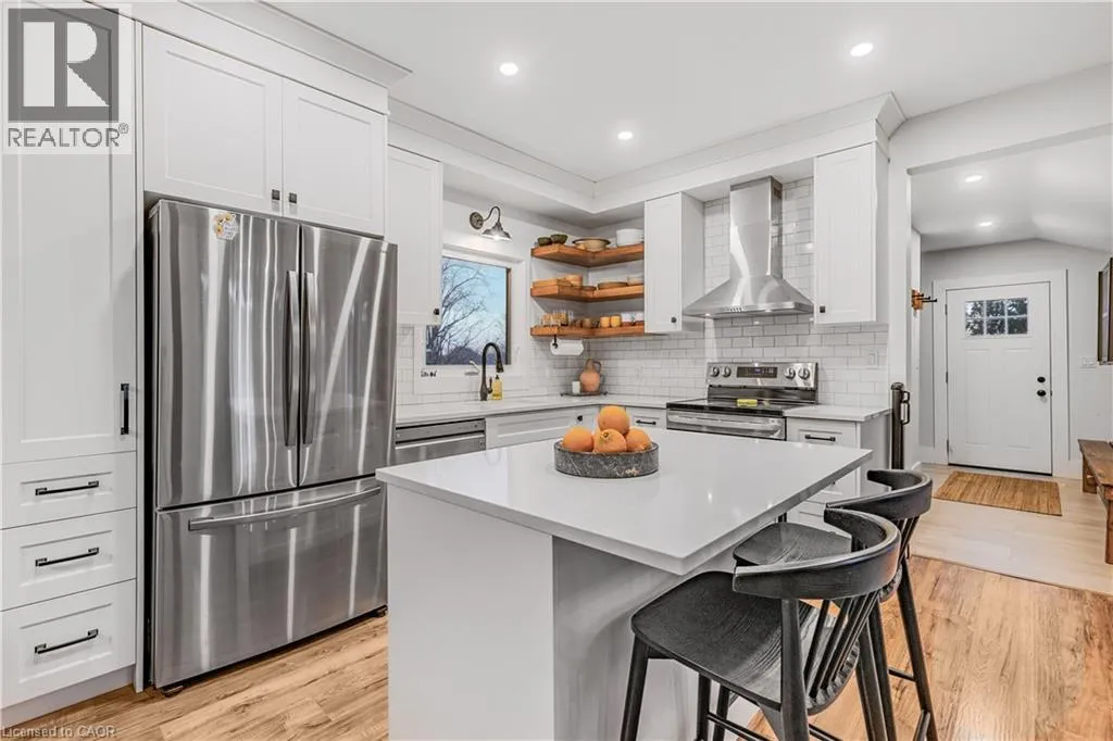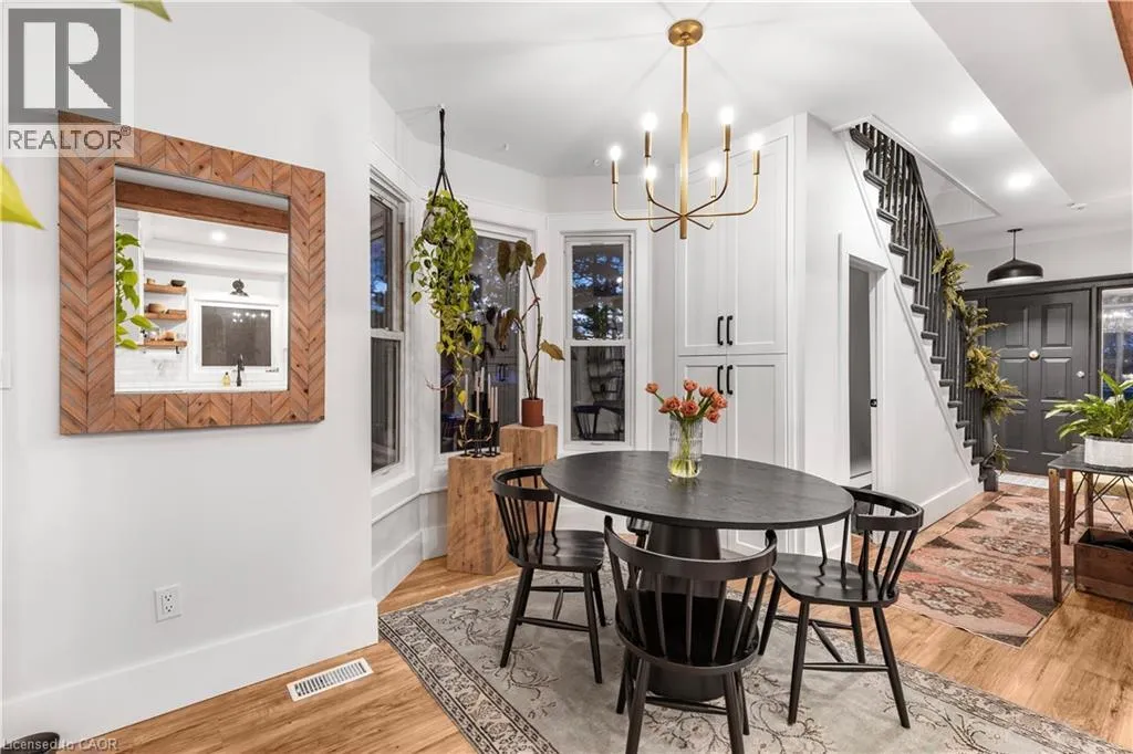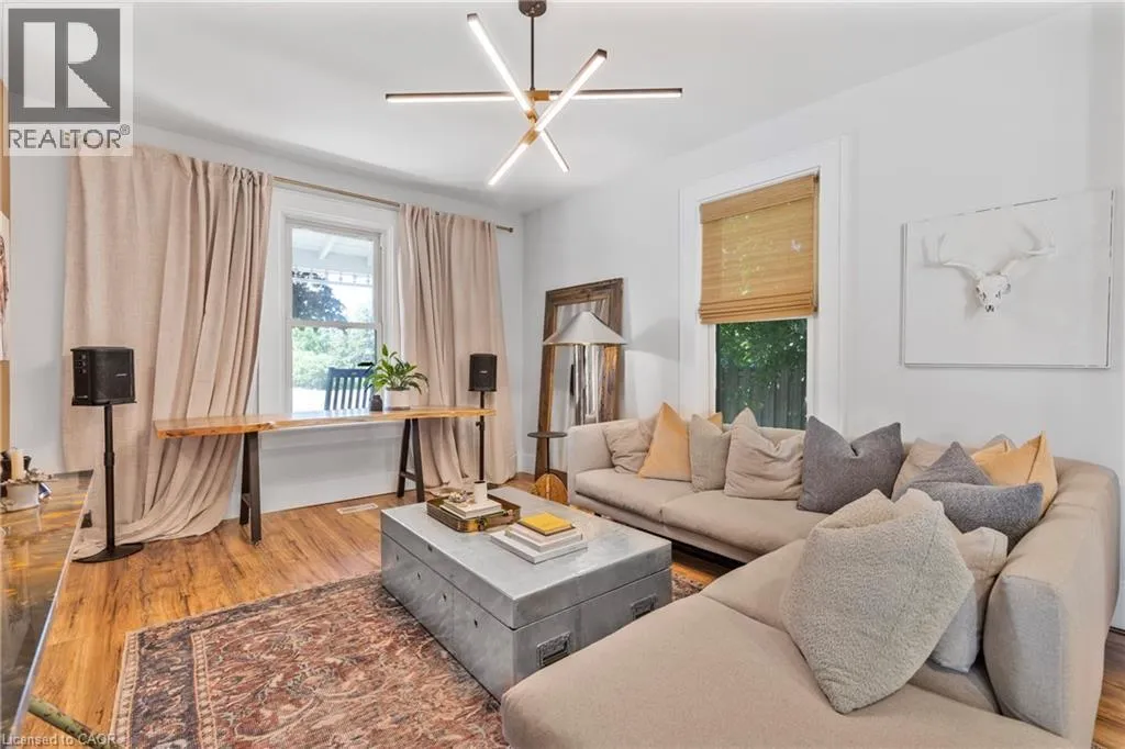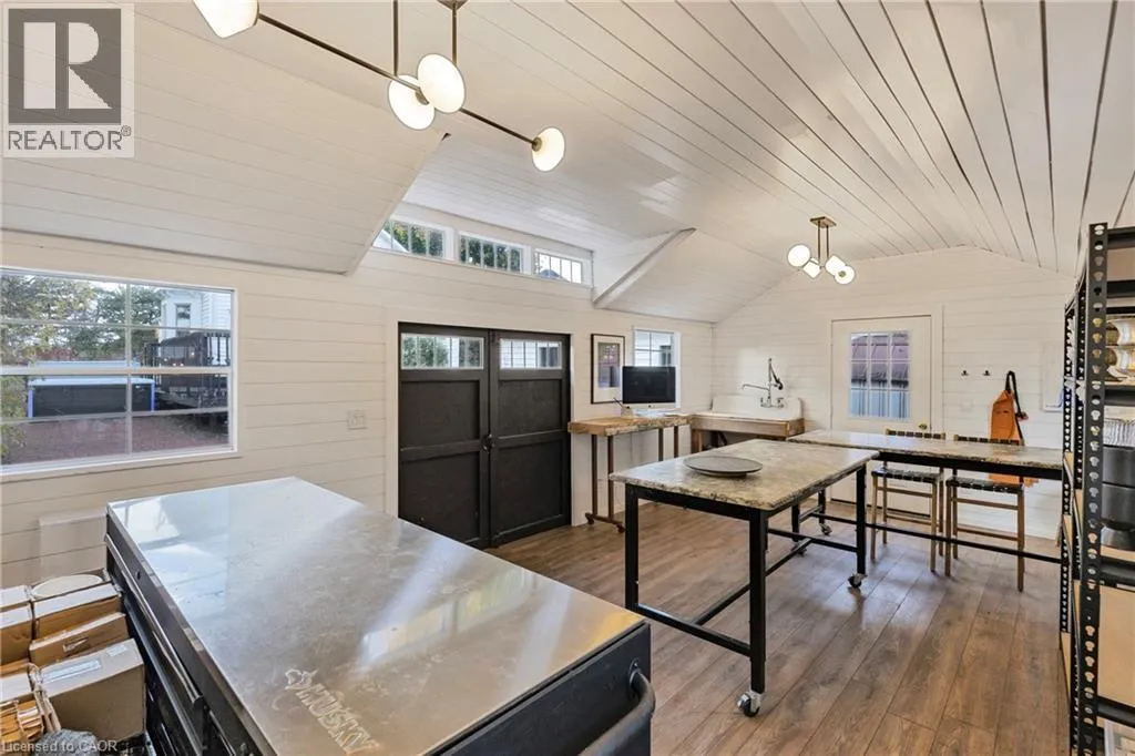 South of Highway Welcome to this beautifully updated and upgraded character home, nestled on a generous 54 x 260-foot lot. Complete with detached Garage and separate Studio space: 14x24 ft studio with 100 amp electrical service, water, and AC. Perfect for an entrepreneur, someone who works from home, or simply looking for a personal retreat. Off the cozy and covered front porch, step inside to find a warm main floor featuring an open concept living room, kitchen with Quartz countertops and island with seating, and dining area complete with a charming bay window and a walkout to the rear deck/yard and Studio. The main floor also includes a mud/laundry room and convenient 2-piece guest bathroom. Upstairs, discover two well-appointed bedrooms, including a spacious primary suite with a large walk-in closet and custom-built organizers, offering ample storage. The main 4-piece bathroom boasts Quartz countertops and glass shower door. Plenty of parking, and 2 bonus out buildings make this property something special. Situated close to Lake Ontario, the Beach, Marina, and Downtown Grimsby, this home provides convenient access to all the amenities and attractions of the area, including the picturesque wineries of the Niagara Region. With easy highway access, youâre perfectly positioned to enjoy the best of Grimsby and beyond. Make this exceptional home and studio yours for the perfect blend of character and modern living. (id:27476)