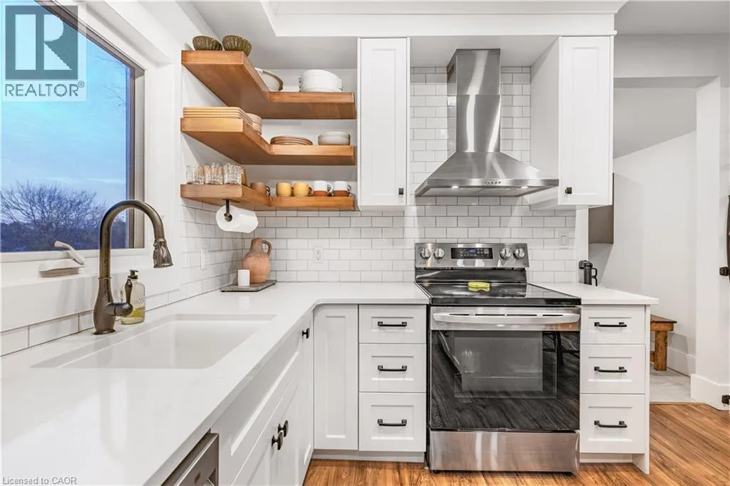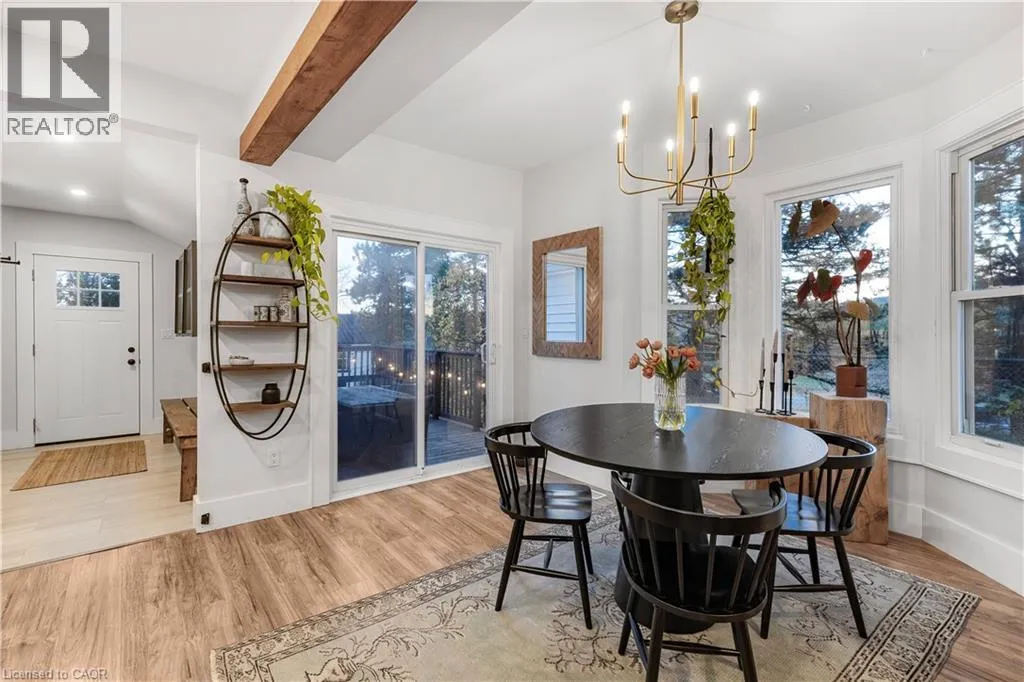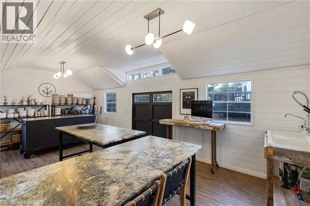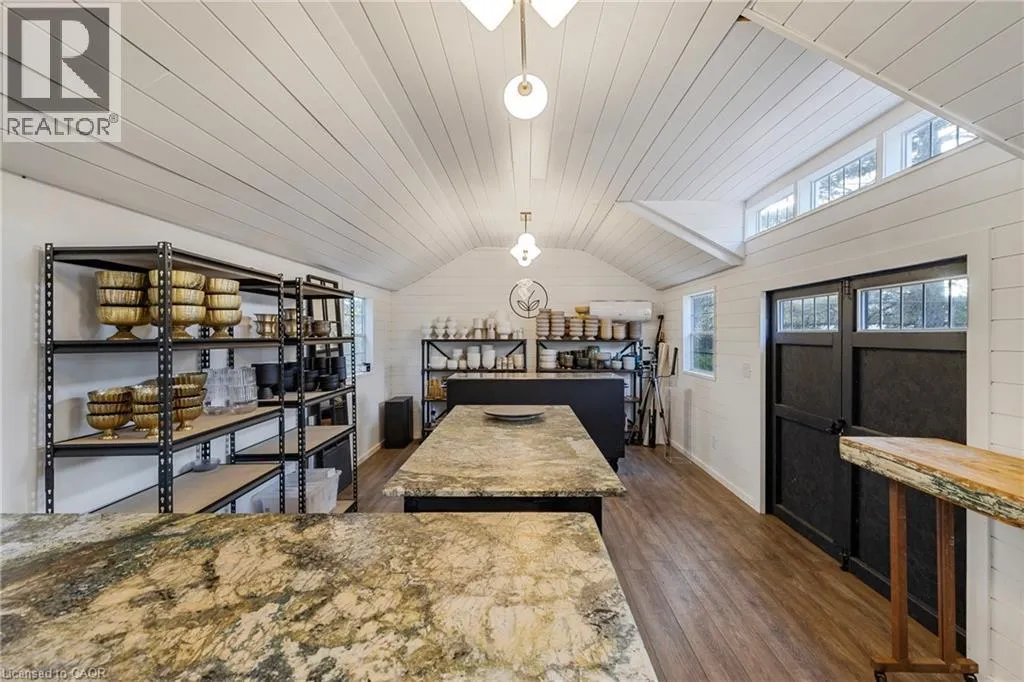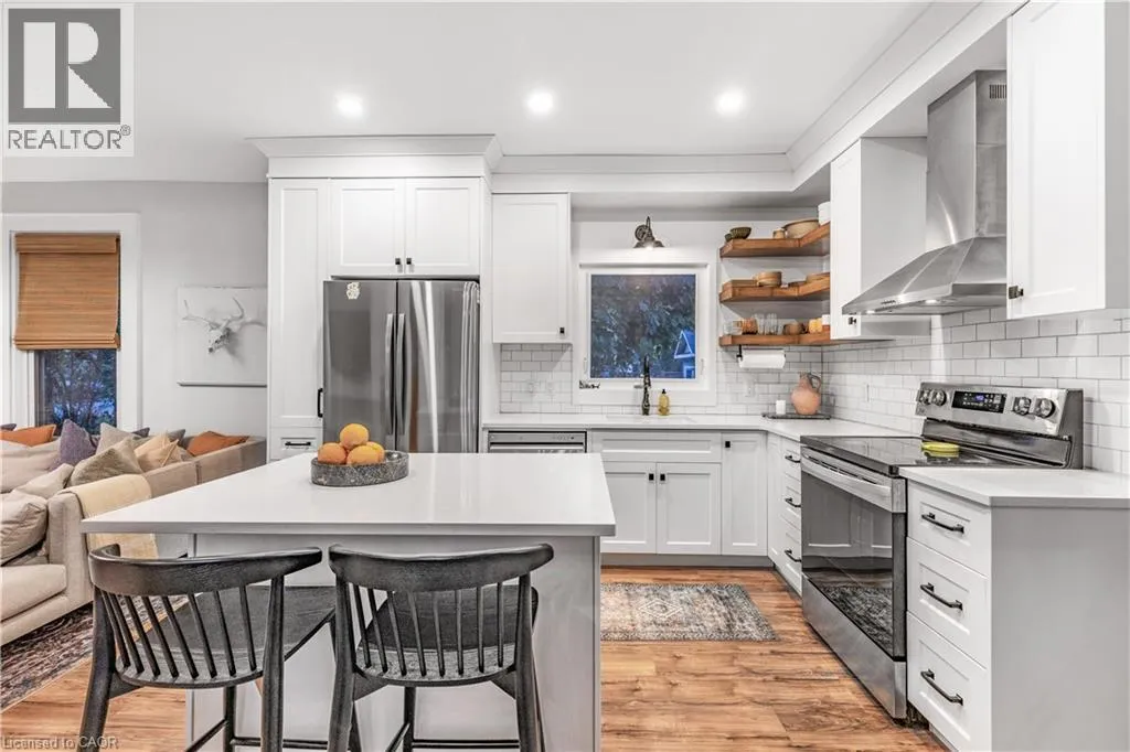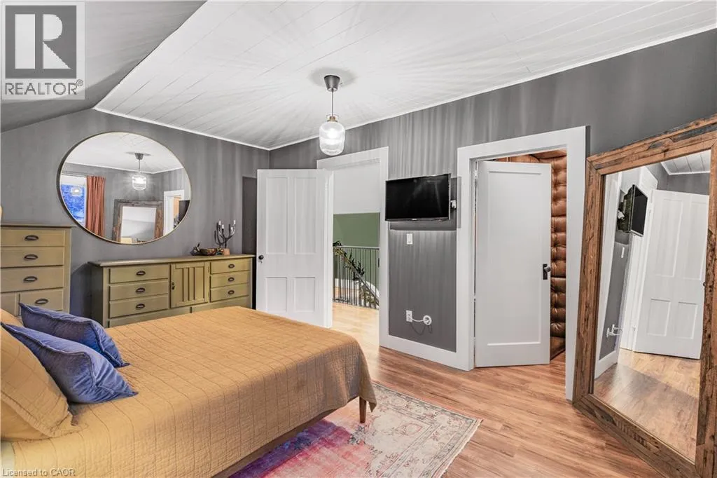 South of Highway Welcome to this beautifully updated and upgraded character home, nestled on a generous 54 x 260-foot lot. Complete with detached Garage and separate Studio space: 14x24 ft studio with 100 amp electrical service, water, and AC. Perfect for an entrepreneur, someone who works from home, or simply looking for a personal retreat. Off the cozy and covered front porch, step inside to find a warm main floor featuring an open concept living room, kitchen with Quartz countertops and island with seating, and dining area complete with a charming bay window and a walkout to the rear deck/yard and Studio. The main floor also includes a mud/laundry room and convenient 2-piece guest bathroom. Upstairs, discover two well-appointed bedrooms, including a spacious primary suite with a large walk-in closet and custom-built organizers, offering ample storage. The main 4-piece bathroom boasts Quartz countertops and glass shower door. Plenty of parking, and 2 bonus out buildings make this property something special. Situated close to Lake Ontario, the Beach, Marina, and Downtown Grimsby, this home provides convenient access to all the amenities and attractions of the area, including the picturesque wineries of the Niagara Region. With easy highway access, youâre perfectly positioned to enjoy the best of Grimsby and beyond. Make this exceptional home and studio yours for the perfect blend of character and modern living. (id:27476)