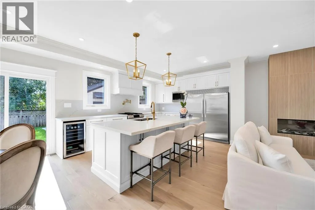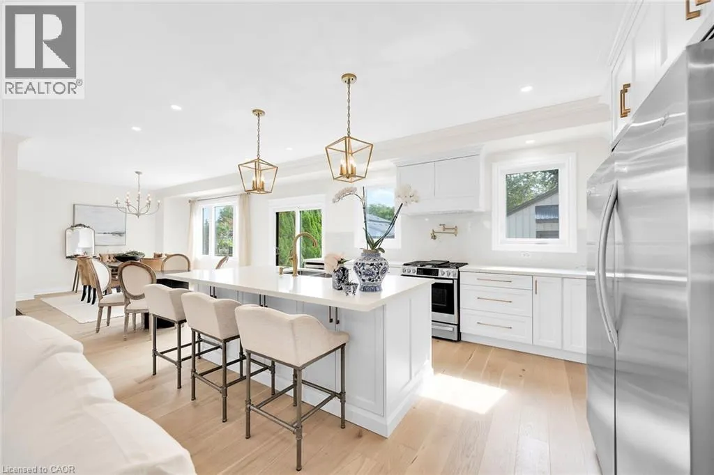 QEW To Bartlett Ave to Marr Ave LUXURIOUS, NEWLY FINISHED 4 BEDROOM HOME ON LARGE PROPERTY IN MOST DESIRABLE LAKEFRONT NEIGHBORHOOD! Only steps to waterfront trail and beach. Open concept design with high ceilings. New gourmet kitchen with abundant cabinetry, granite counters and large island open to family room and dining room. Sliding doors leading to expansive concrete patio. The primary bedroom suite has a walk-in closet and stunning 5-piece ensuite bath along with private balcony with lake views. The 2 additional bedrooms on the upper level have full ensuite baths. 4th bedroom is on main level. Open staircase to beautifully finished lower level leads to large rec room, den and additional bath. Exquisitely renovated top to bottom in 2025. OTHER FEATURES INCLUDE: all new appliances, new engineered hardwood floors, new 4 and half baths, new fireplace, new furnace, new central air, new plumbing and electrical. New oversized windows to bring in the light. Long, concrete double driveway and large workshop/garage. Only 5 minutes to wineries, fine dining, short stroll to waterfront park and schools. Come to see this elegant home, you wonât be disappointed! Some photos are virtually staged. (id:27476)