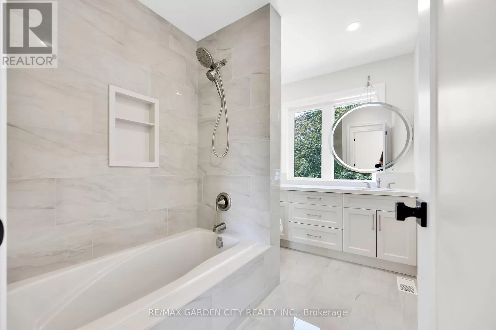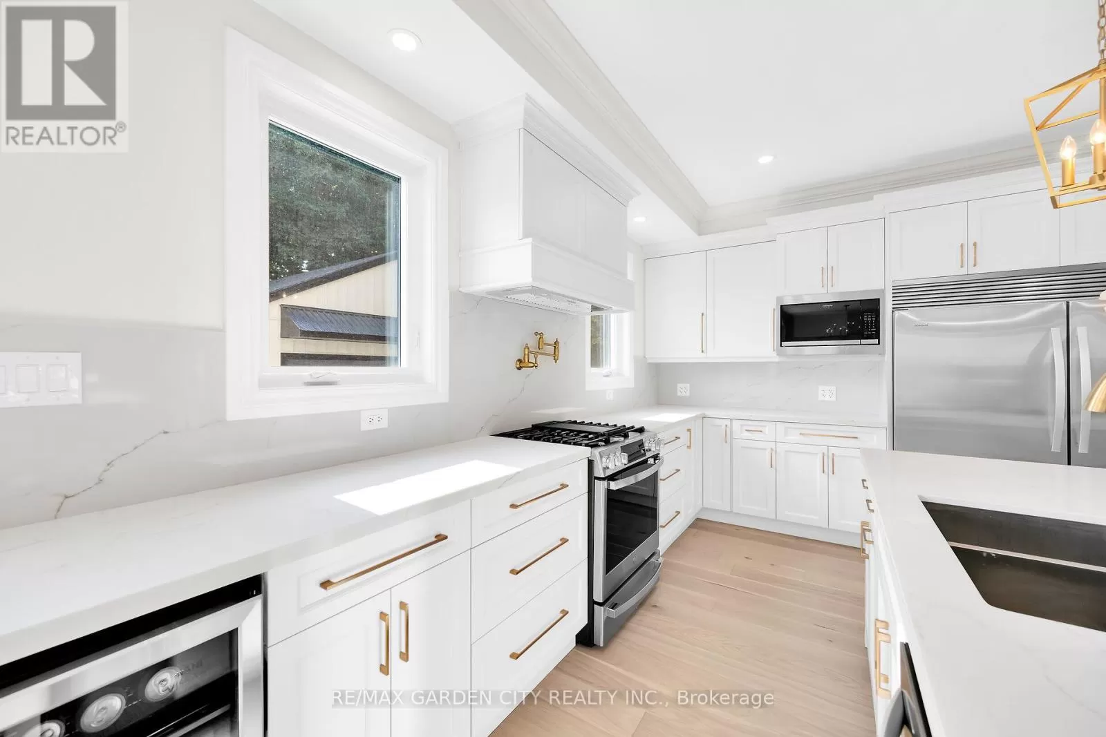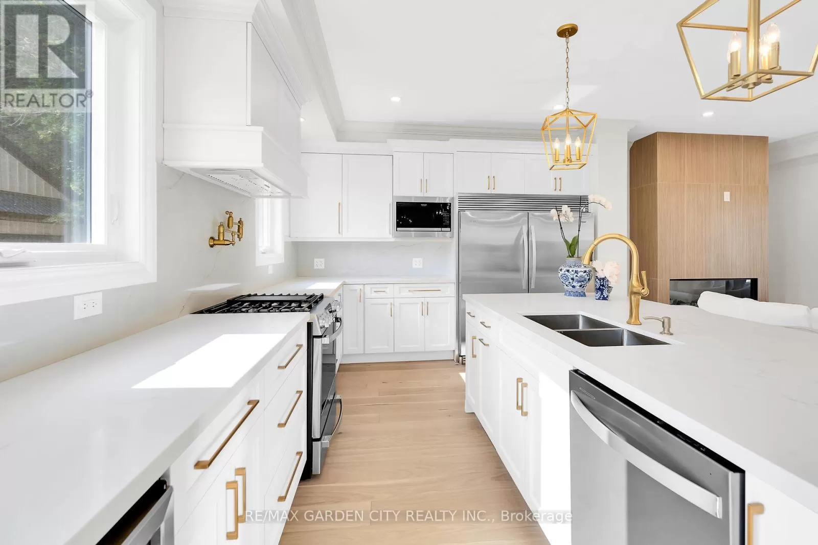 Cross Streets: Tupper Blvd & Marr Ave. ** Directions: QEW To Bartlett Ave to Marr Ave. LUXURIOUS, NEWLY FINISHED 4 BEDROOM HOME ON LARGE PROPERTY IN MOST DESIRABLE LAKEFRONT NEIGHBORHOOD! Only steps to waterfront trail and beach. Open concept design with high ceilings. New gourmet kitchen with abundant cabinetry, granite counters and large island open to family room and dining room. Sliding doors leading to expansive concrete patio. The primary bedroom suite has a walk-in closet and stunning 5-piece ensuite bath along with private balcony with lake views. The 2 additional bedrooms on the upper level have full ensuite baths. 4th bedroom is on main level. Open staircase to beautifully finished lower level leads to large rec room, den and additional bath. Exquisitely renovated top to bottom in 2025. OTHER FEATURES INCLUDE: all new appliances, new engineered hardwood floors, new 4 and half baths, new fireplace, new furnace, new central air, new plumbing and electrical. New oversized windows to bring in the light. Long, concrete double driveway and large workshop/garage. Only 5 minutes to wineries, fine dining, short stroll to waterfront park and schools. Come to see this elegant home, you wont be disappointed! Some photos are virtually staged. Zoning as per GeoWarehouse. (id:27476)