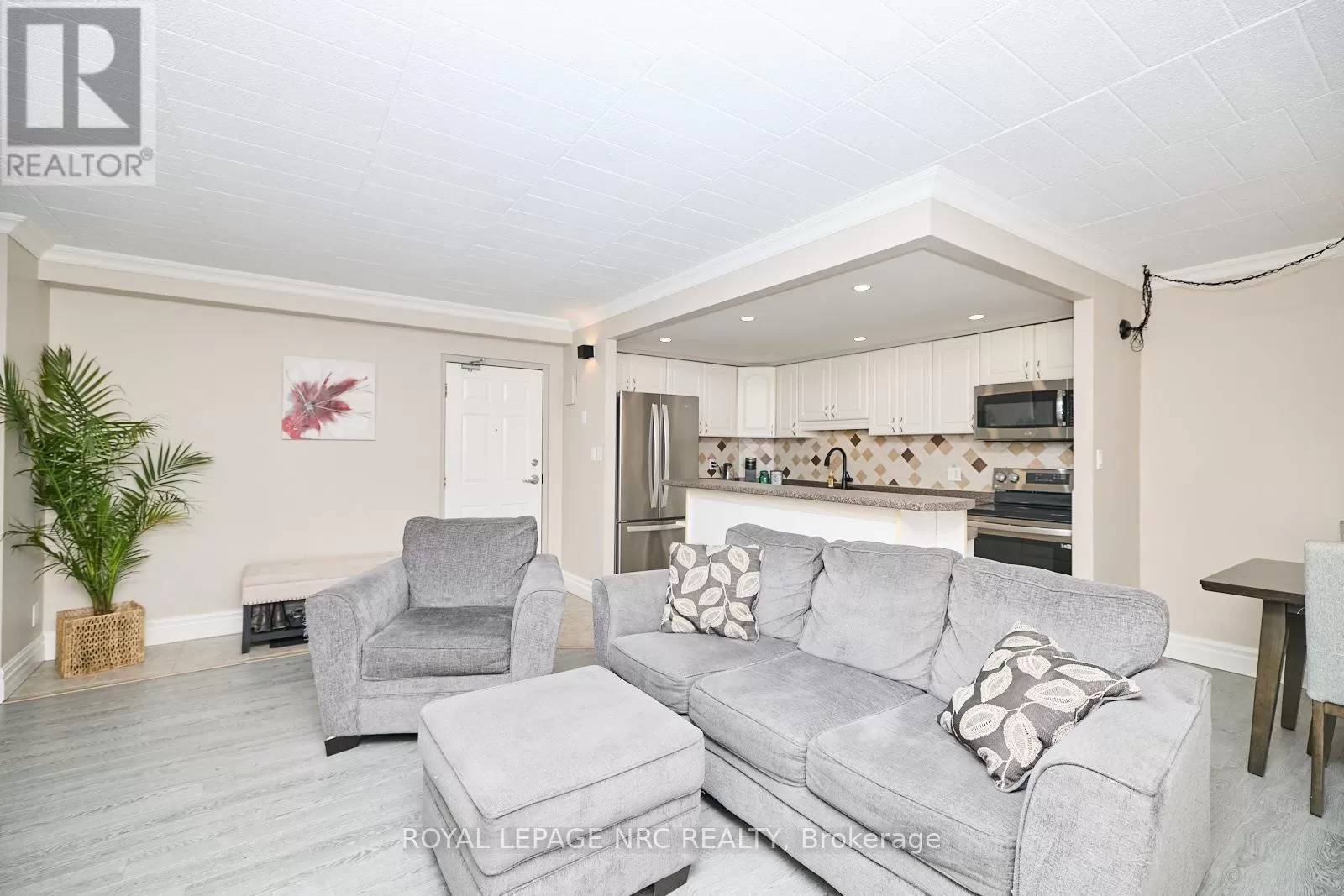 Cross Streets: Ontario St. ** Directions: QEW to Ontario St & left of John St. Discover the perfect blend of comfort and convenience in this charming 2-bedroom, 1-bathroom main floor condo, offering the perfect blend of style and convenience. This home features open-concept, laminate throughout, in-suite laundry and the kitchen features a spacious island and a bright eating area, ideal for entertaining or everyday living. Patio doors lead to a lovely terrace, perfect for morning coffee or evening relaxation. With two parking spots conveniently located right outside the unit, you'll enjoy seamless access. The condo fees include heat, hydro, water, internet, cable & parking. This quiet, smoke-free, pet-free building is just minutes from the QEW and all major amenities. Don't miss this exceptional opportunity. (id:27476)