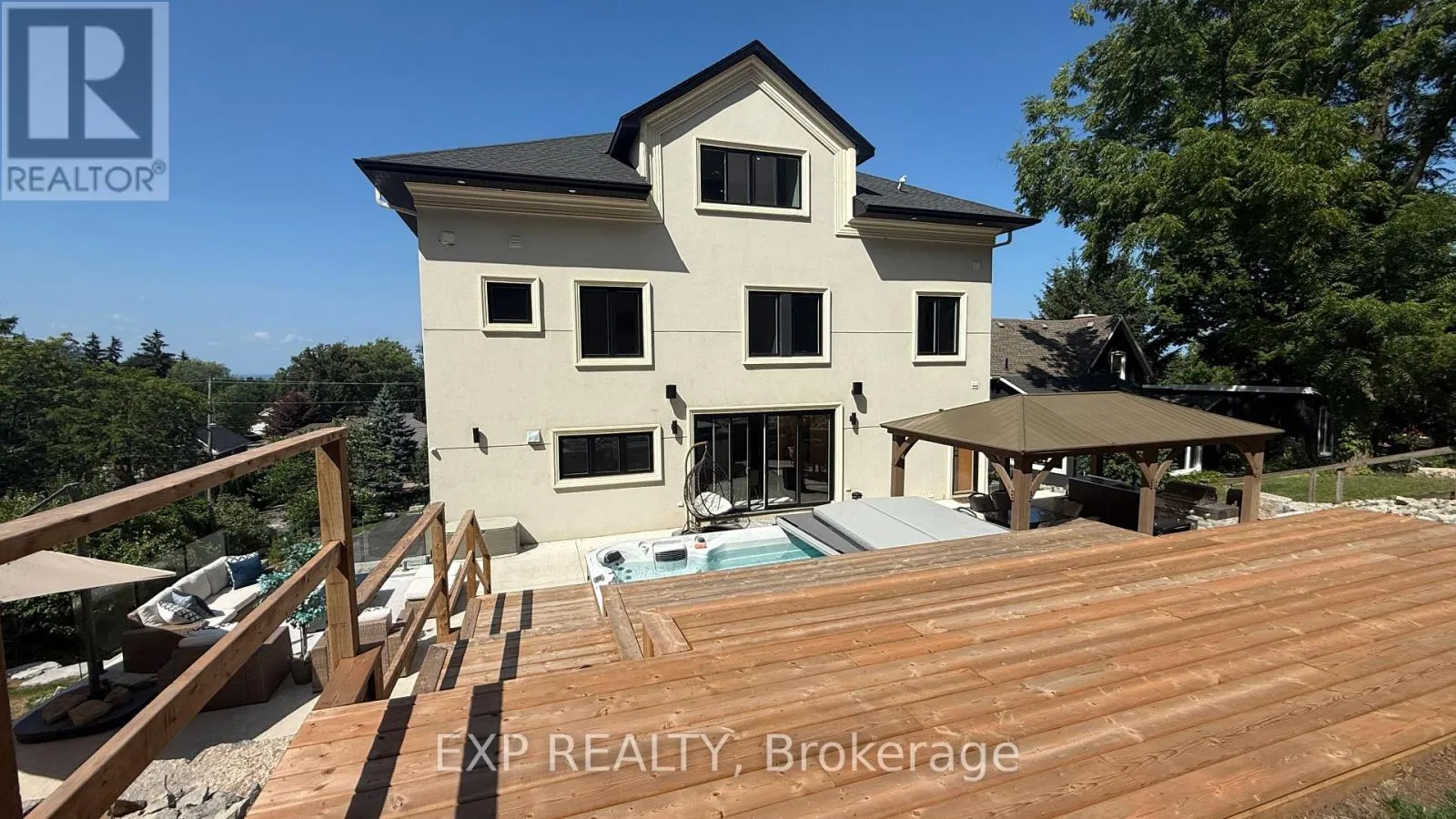 Cross Streets: Main St W & Kerman Ave. ** Directions: https://share.google/kT3cogNfBrSaQs86D. Luxury Escarpment Living with Lake Views Modern Architecture, Elevator & Swimming Spa. Welcome to this stunning custom-built home nestled on the Grimsby Escarpment, just steps from downtown. With breathtaking lake and ravine views from every level, this modern multi-level home features floor-to-ceiling windows, a private elevator, and an open-concept layout filled with natural light.The gourmet kitchen boasts quartz countertops and a large island, perfect for entertaining. All bedrooms feature private ensuites, and the primary suite offers a walkout to a lakeview balcony. Enjoy peaceful mornings in your private backyard backing onto nature.Truly one of a kindluxury, design, and location all in one. (id:27476)