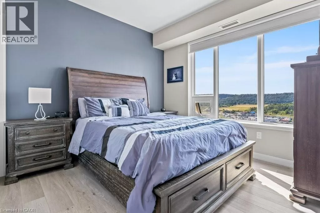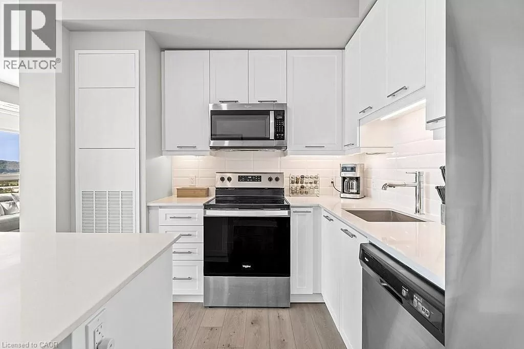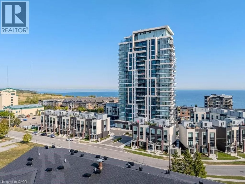 Casablanca Exit Winston Rd. LOVE THE LAKESIDE LIVING! Feel the vibrant Grimsby-On-The-Lake lifestyle as you enjoy the fresh breezes. Breathtaking views of the lake, Niagara Escarpment and picturesque sunsets! Steps to the lake, trails, many shops & restaurants with Hwy access right off the road. Rare corner unit offers 2 balconies, facing south and west. Floor to ceiling windows to let that sunshine pour in. 2 Bedrooms & 2 Bathrooms with nearly 1,000sq ft of living space. Gleaming floors and counters, modern finishes and many updates throughout. Be amazed as you step into the open kitchen and living room, seeing blue skies and blue waters. Master bedroom offers a private ensuite as the 2nd bedroom is spacious enough for your larger furniture. Stackable laundry in unit, 1 Parking & 1 Locker space. Stylish building that offers so much: 24hr concierge, stunning rooftop patio/BBQ lounge and party room, fitness and yoga rooms & dog spa. You'll fall in love with YOUR next home! (id:27476)