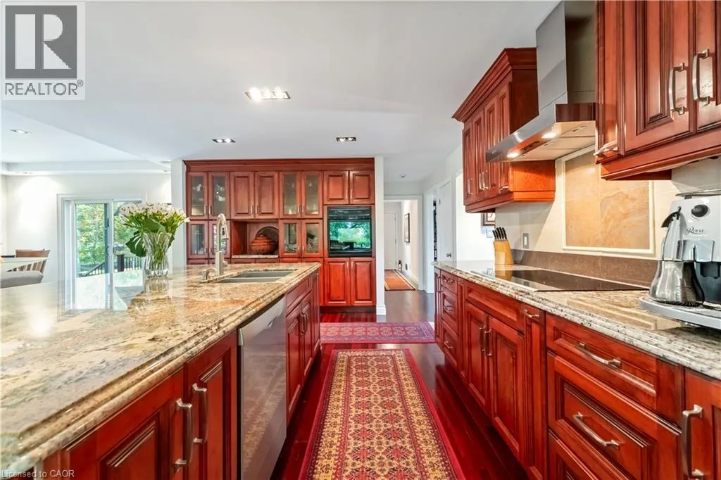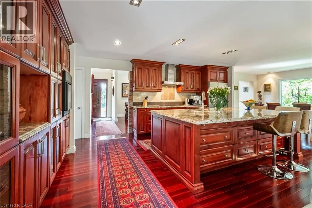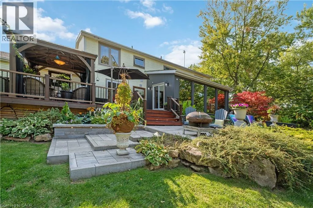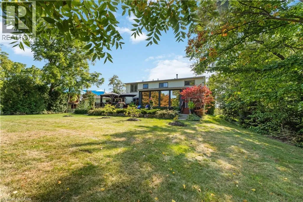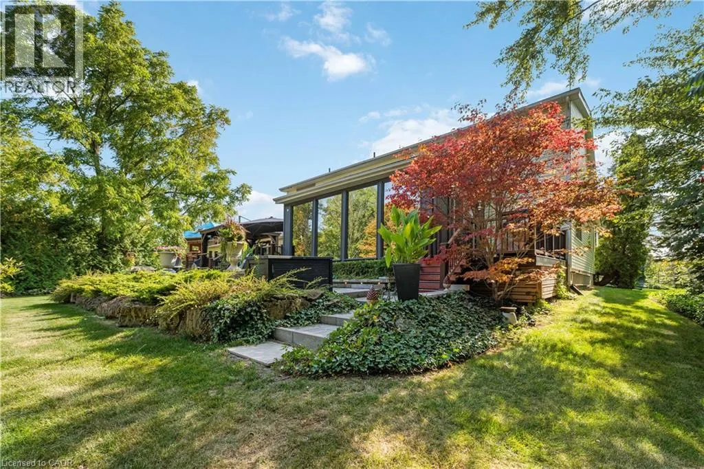 Ridge Road East and Thirty Road Luxury Living on the Niagara Escarpment - over 1 Acre with Creek & Seasonal lake view and waterfall Nestled in the heart of Niagara's Escarpment, this exceptional residence offers more than 2,500 sq. ft. of elegantly upgraded living space on a private, park-like setting of over one acre. The property is enhanced by the natural beauty of 30 Miles Creek meandering through the grounds and a picturesque seasonal waterfall, creating a tranquil retreat just minutes from the QEW, town amenities, and award-winning wineries such as Peninsula Ridge. Inside, refined details and upscale finishes set the tone for sophisticated living. The chef's kitchen features professional-grade appliances, granite counter-tops, a grand island, and custom maple cabinetryâperfect for both entertaining and family gatherings. The panoramic family room windows frame sweeping views of the ravine, lush greenery, and adjacent Bruce Trail conservation lands, bringing nature indoors. The home includes 3 spacious bedrooms and 3 full bathrooms, highlighted by a stunning primary ensuite with an oversized picture window, modern soaker tub, waterfall shower, and double vanity. A wine cellar, 2 built in speakers, heat pump, fireplace, and independent water system with purification add comfort and luxury. Outdoor living is equally impressive with two expansive decks, one overlooking the ravine and creek, plus a stone observation patio and rock garden with a charming pathway leading to the falls. The professionally landscaped grounds provide both privacy and natural beauty, making this an ideal haven for nature enthusiasts and wine lovers alike. Whether envisioned as a distinguished private residence or a boutique B&B/RB&B, this property offers a rare opportunity to enjoy the very best of Niagara livingâserenity and sophistication. Luxury Certified. (id:27476)