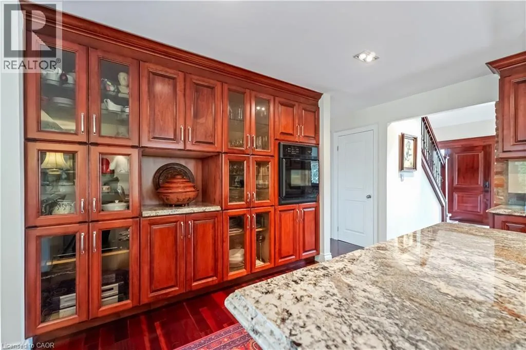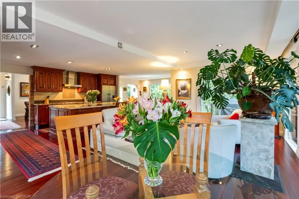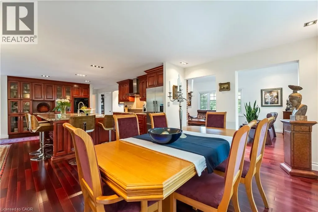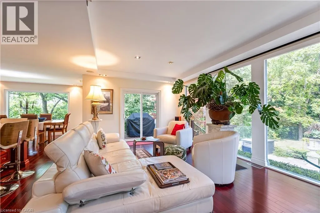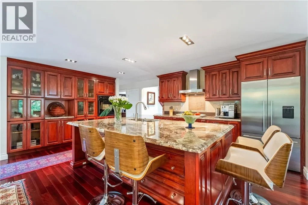 Ridge Road East and Thirty Road Luxury Living on the Niagara Escarpment - over 1 Acre with Creek & Seasonal lake view and waterfall Nestled in the heart of Niagara's Escarpment, this exceptional residence offers more than 2,500 sq. ft. of elegantly upgraded living space on a private, park-like setting of over one acre. The property is enhanced by the natural beauty of 30 Miles Creek meandering through the grounds and a picturesque seasonal waterfall, creating a tranquil retreat just minutes from the QEW, town amenities, and award-winning wineries such as Peninsula Ridge. Inside, refined details and upscale finishes set the tone for sophisticated living. The chef's kitchen features professional-grade appliances, granite counter-tops, a grand island, and custom maple cabinetryâperfect for both entertaining and family gatherings. The panoramic family room windows frame sweeping views of the ravine, lush greenery, and adjacent Bruce Trail conservation lands, bringing nature indoors. The home includes 3 spacious bedrooms and 3 full bathrooms, highlighted by a stunning primary ensuite with an oversized picture window, modern soaker tub, waterfall shower, and double vanity. A wine cellar, 2 built in speakers, heat pump, fireplace, and independent water system with purification add comfort and luxury. Outdoor living is equally impressive with two expansive decks, one overlooking the ravine and creek, plus a stone observation patio and rock garden with a charming pathway leading to the falls. The professionally landscaped grounds provide both privacy and natural beauty, making this an ideal haven for nature enthusiasts and wine lovers alike. Whether envisioned as a distinguished private residence or a boutique B&B/RB&B, this property offers a rare opportunity to enjoy the very best of Niagara livingâserenity and sophistication. Luxury Certified. (id:27476)